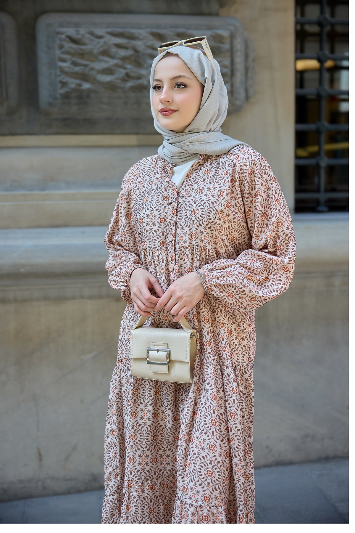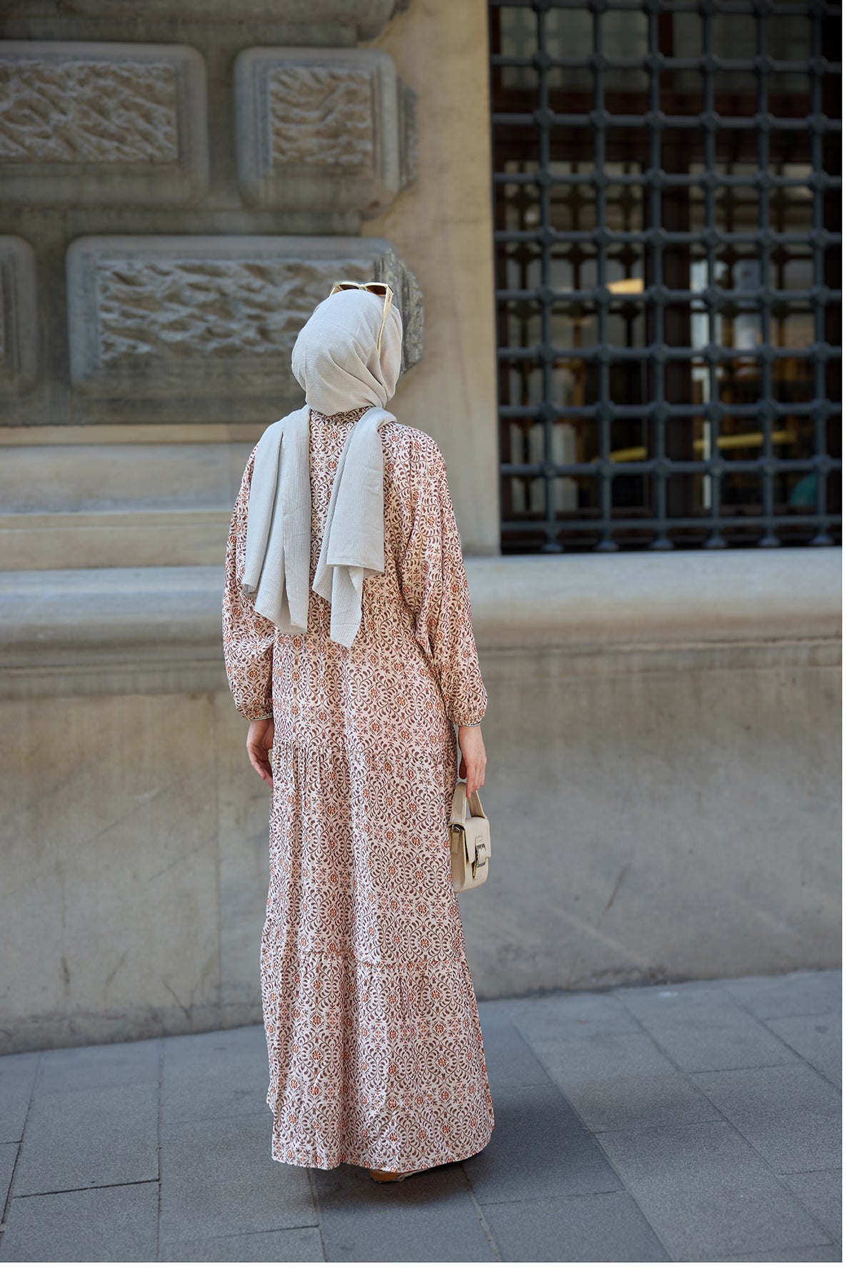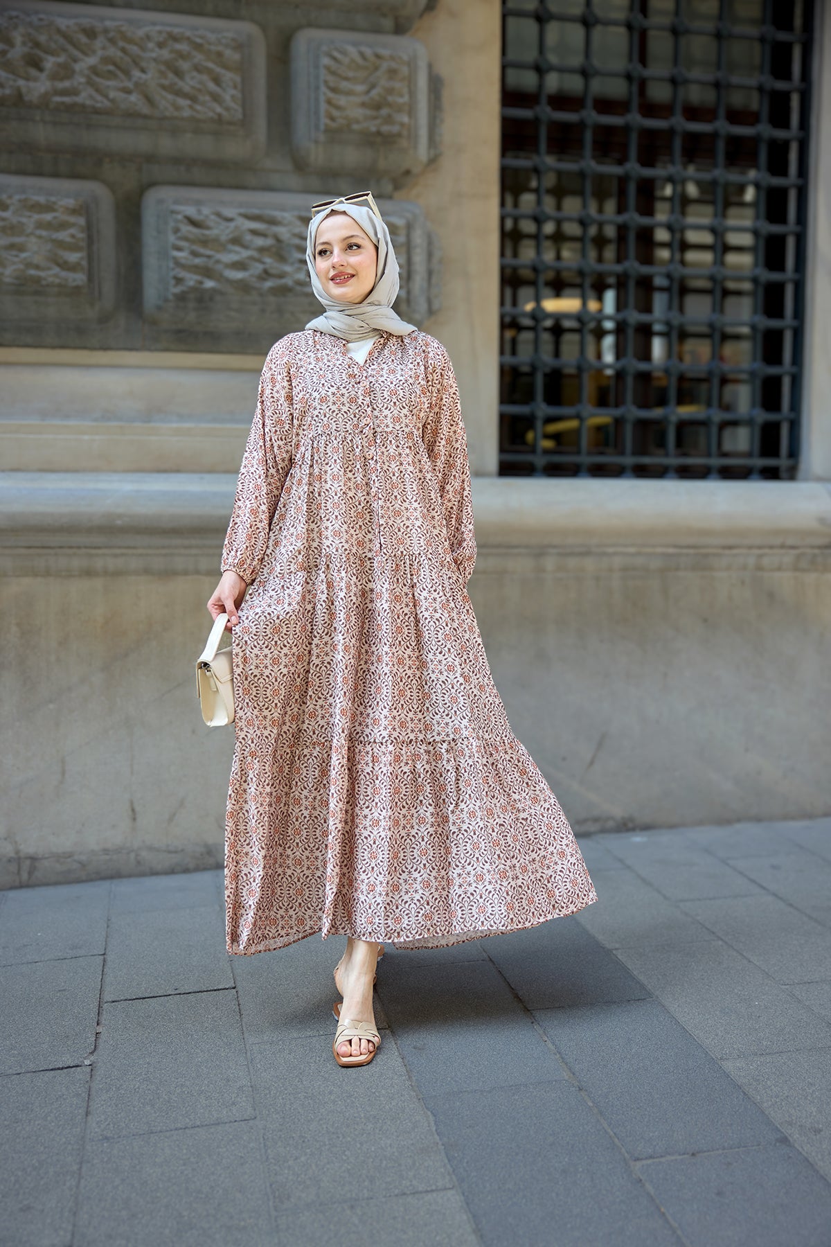 Geometric Motif Patterned Dress Light Brown