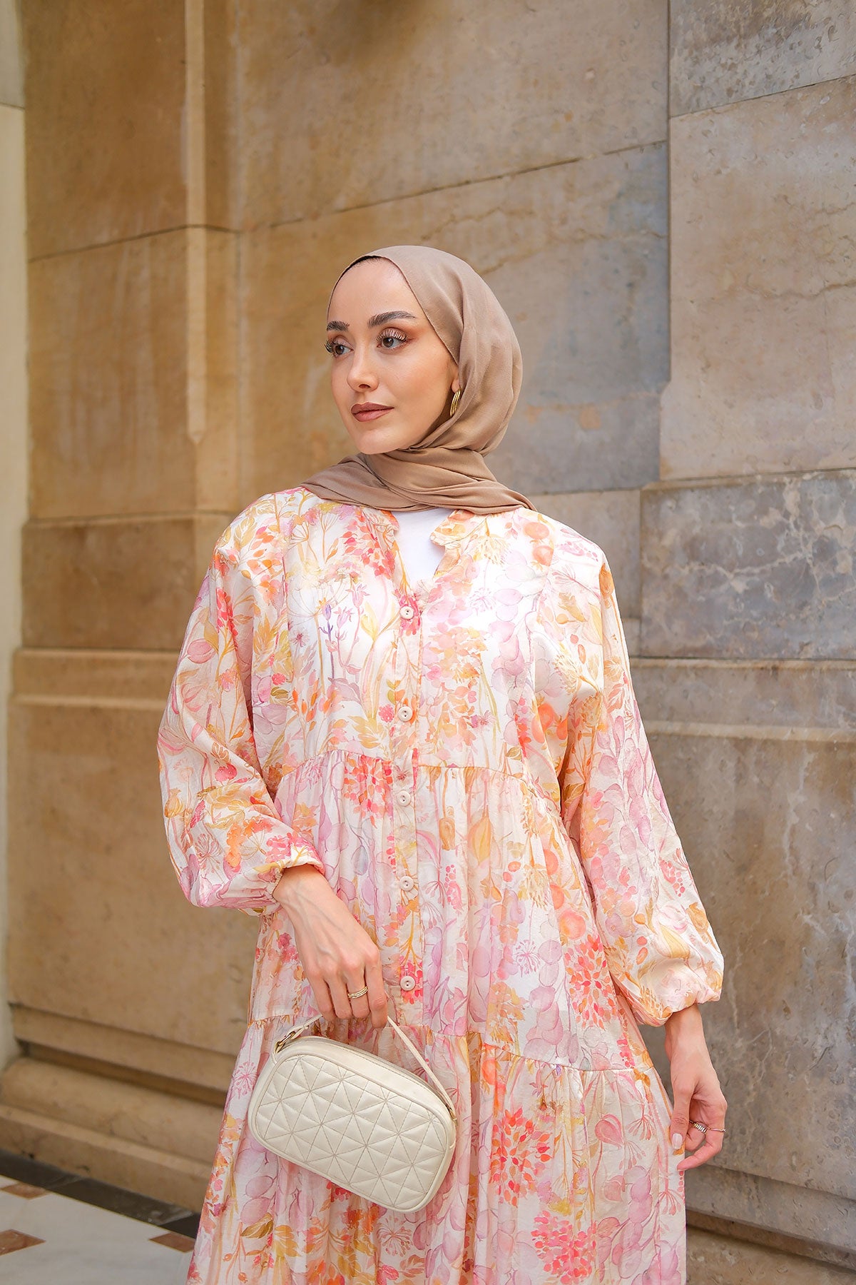Watercolor Flower Patterned Dress Powder