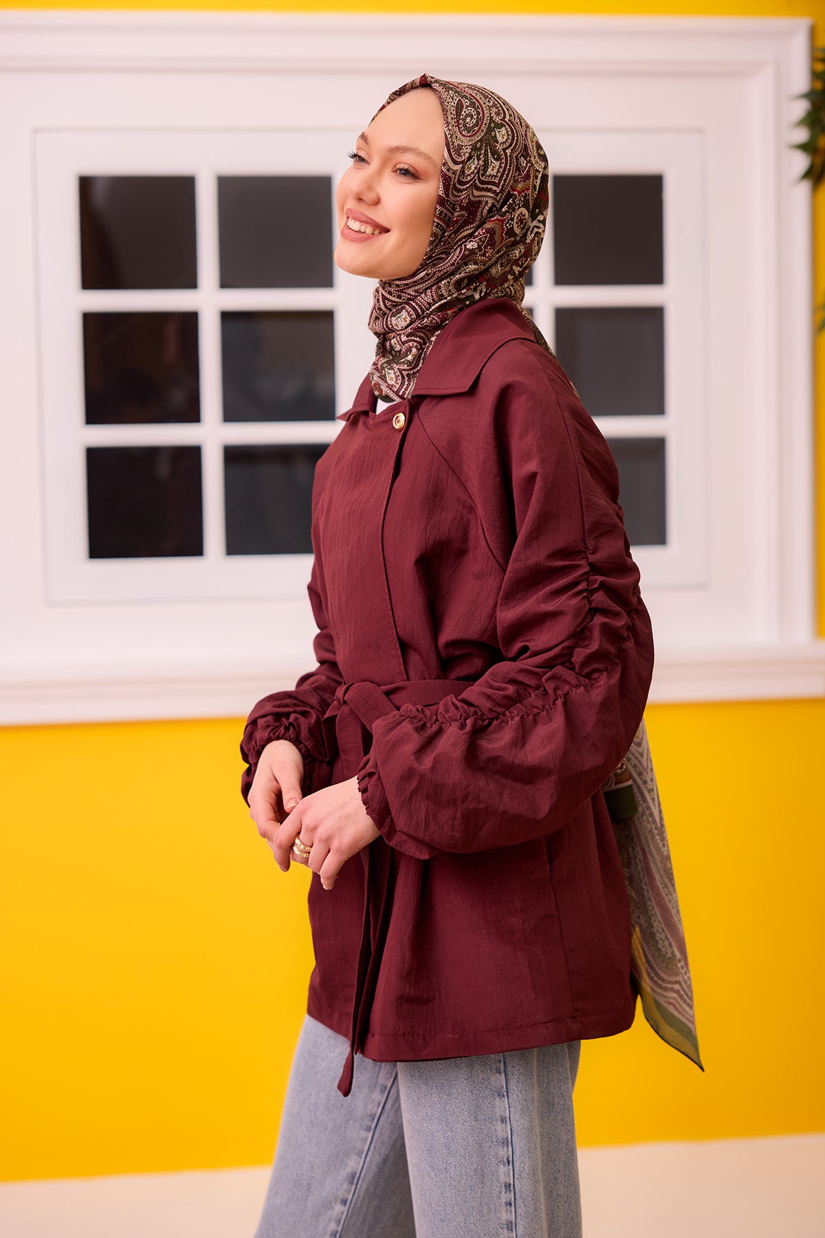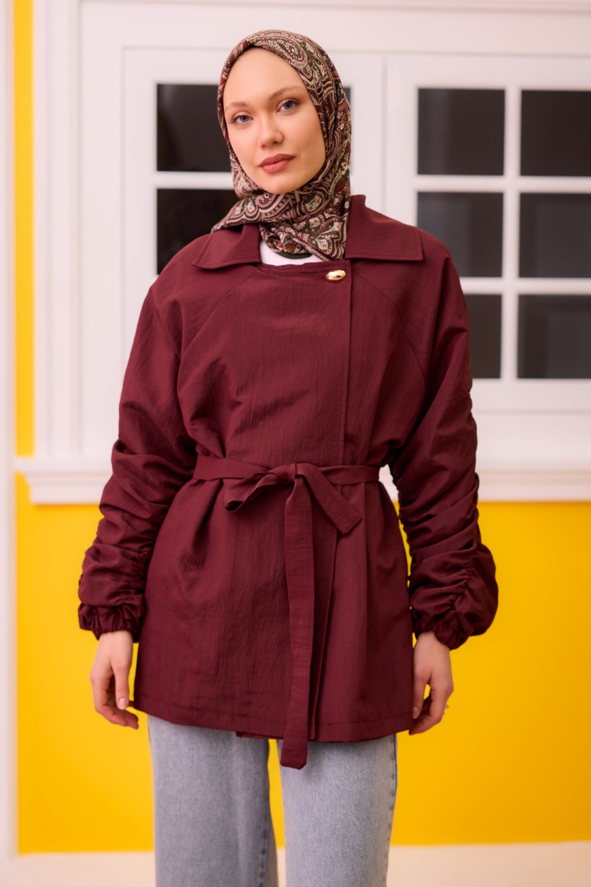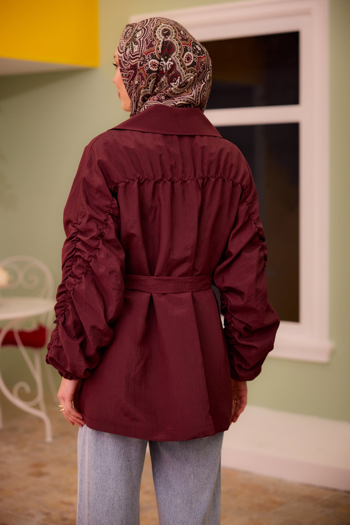 Burgundy Jacket with Gathered Martha Sleeves and Back