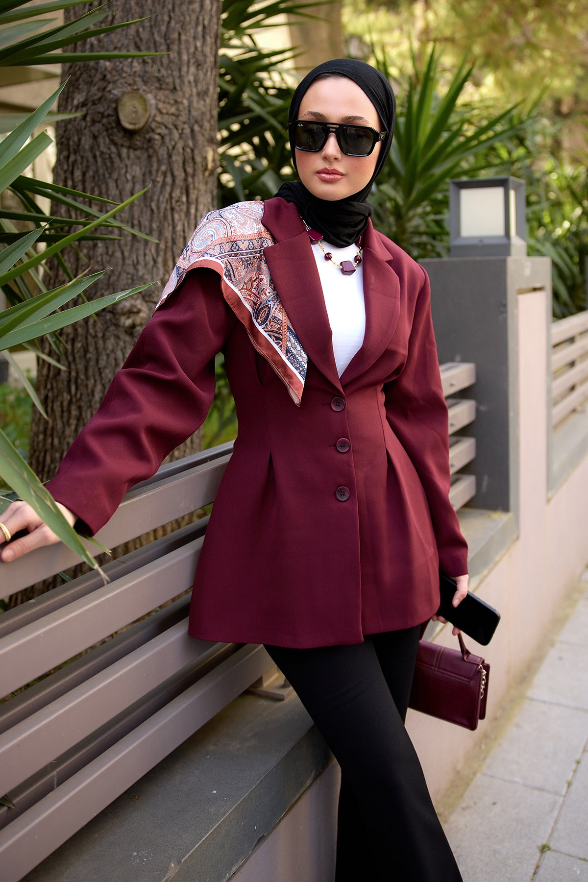 Front Dart Detail Double-Breasted Jacket Burgundy