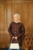 Quilted Pattern Jacket with Gold Button Detail - Brown