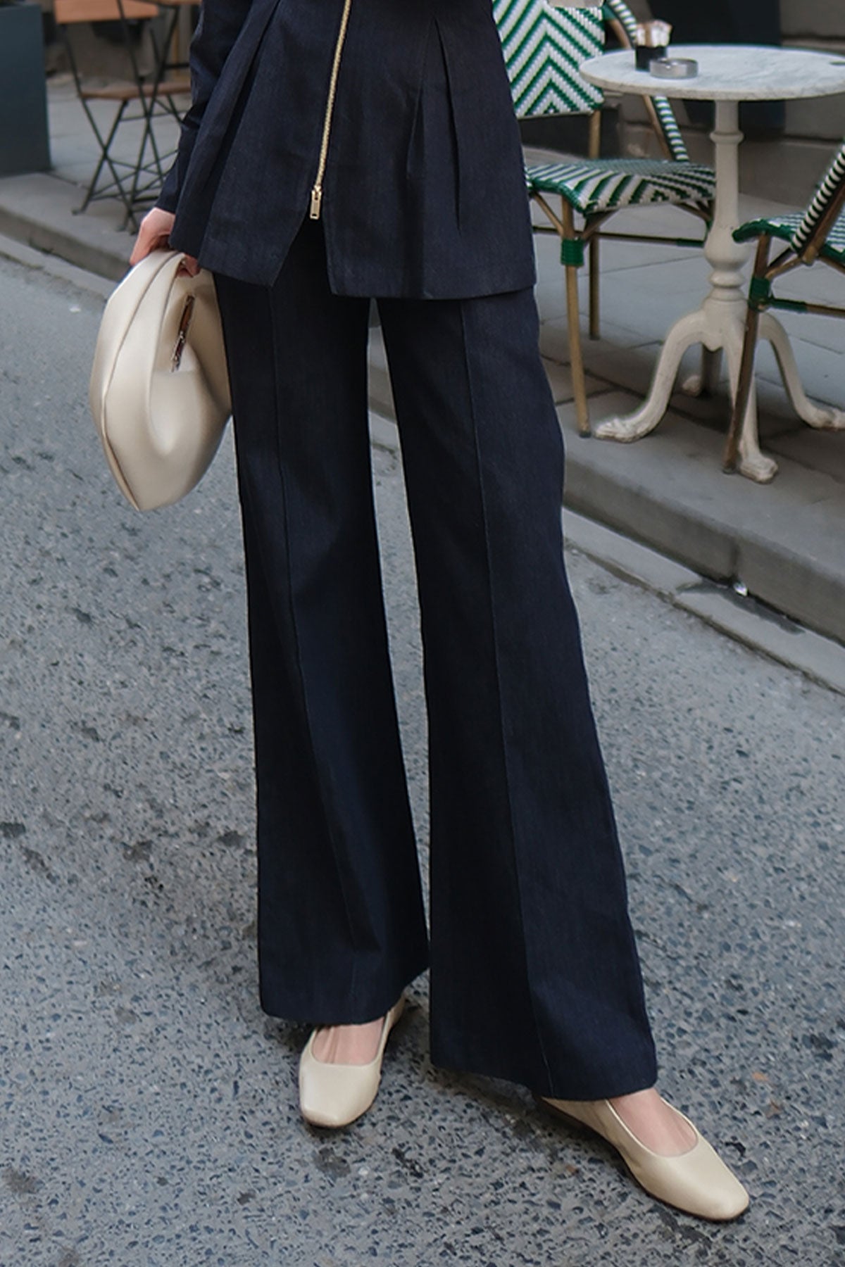 Dark Blue Wide-Leg Elastic-Waist Jean Pants