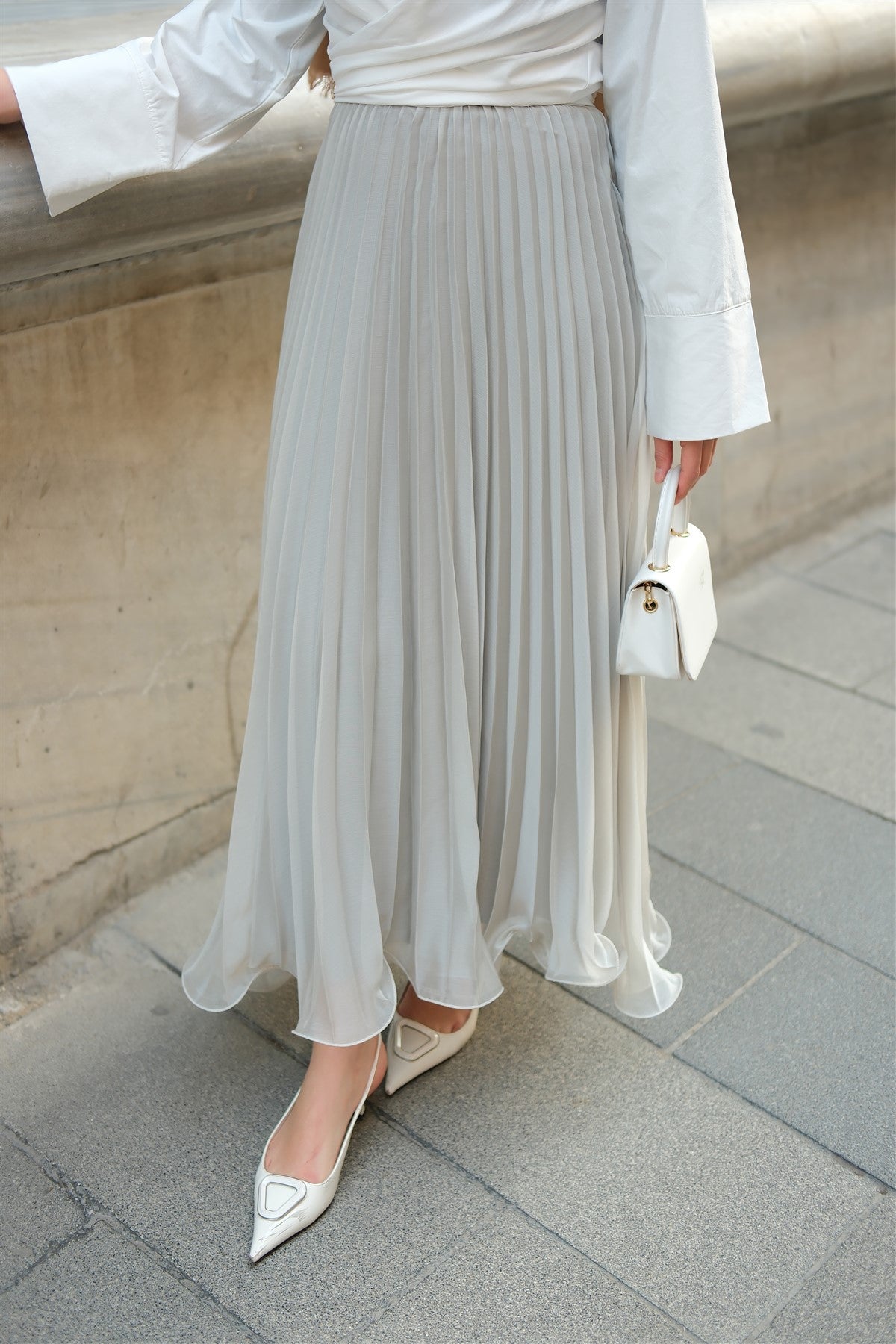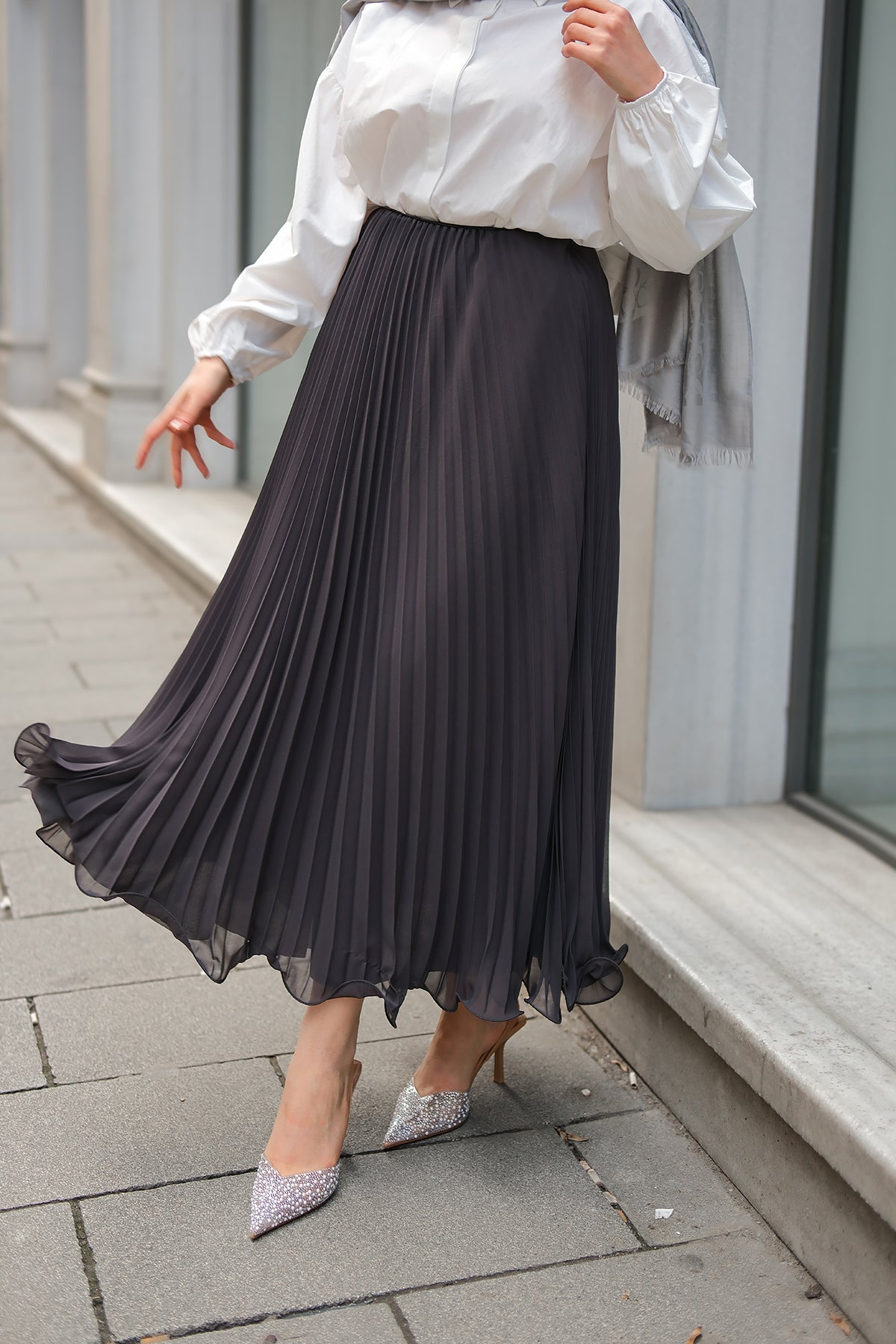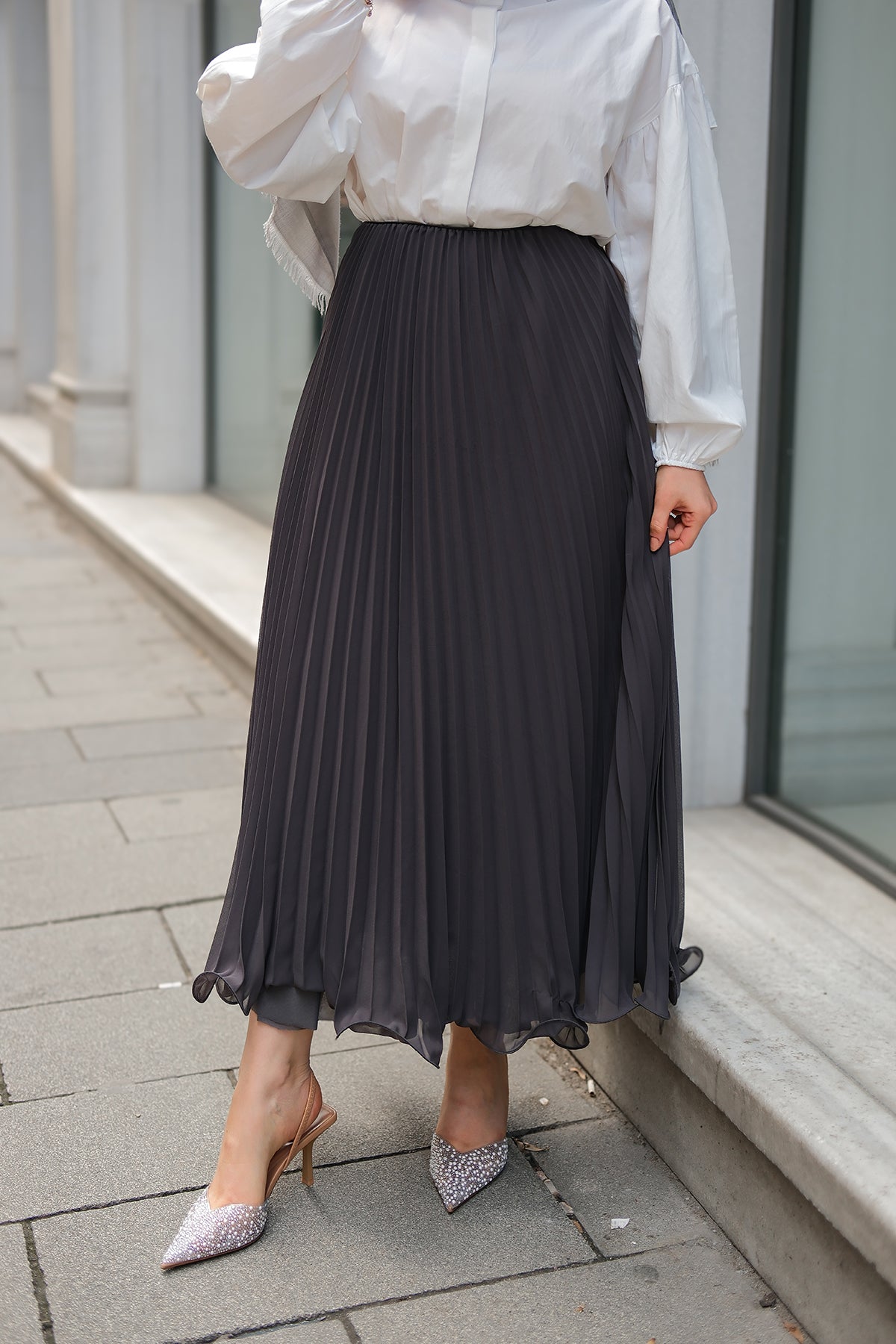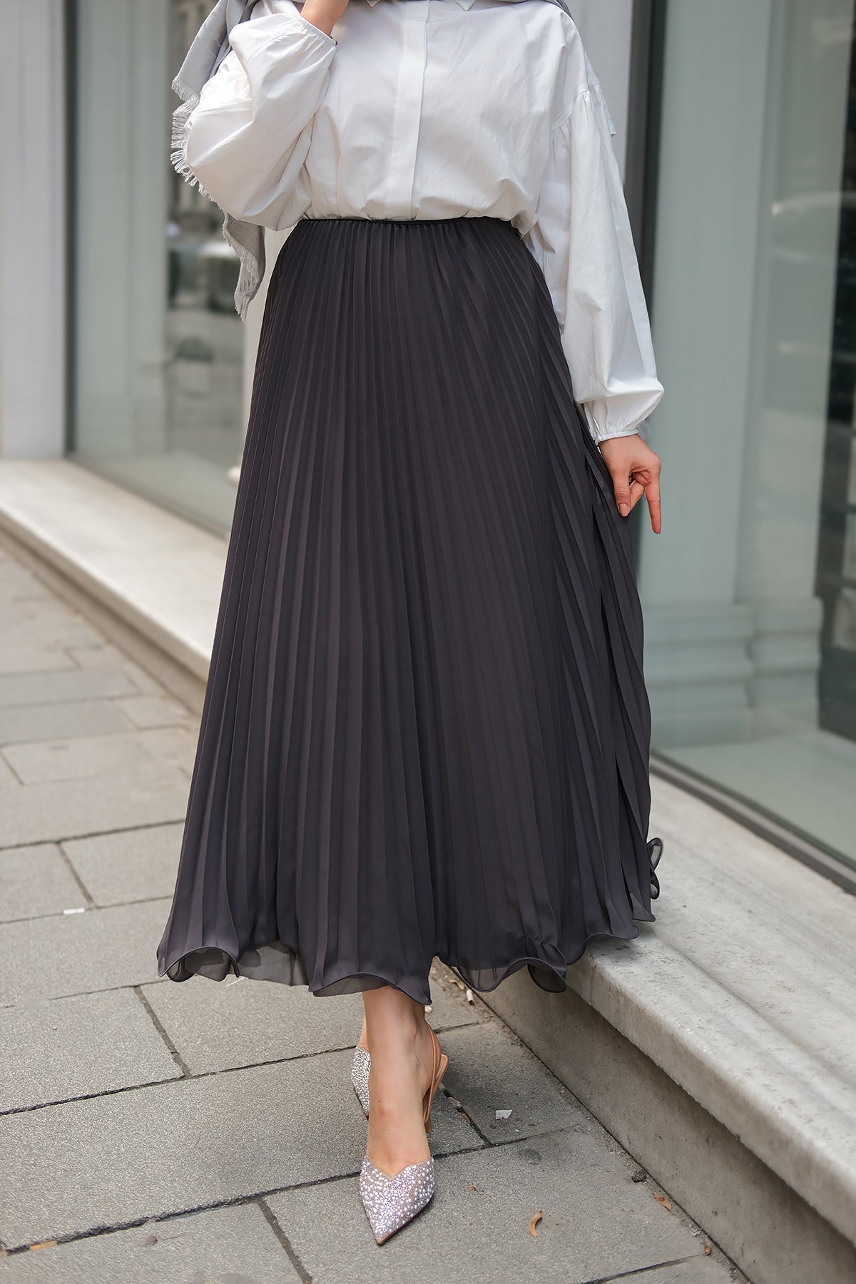 Elastic Waist Pleated Skirt Anthracite