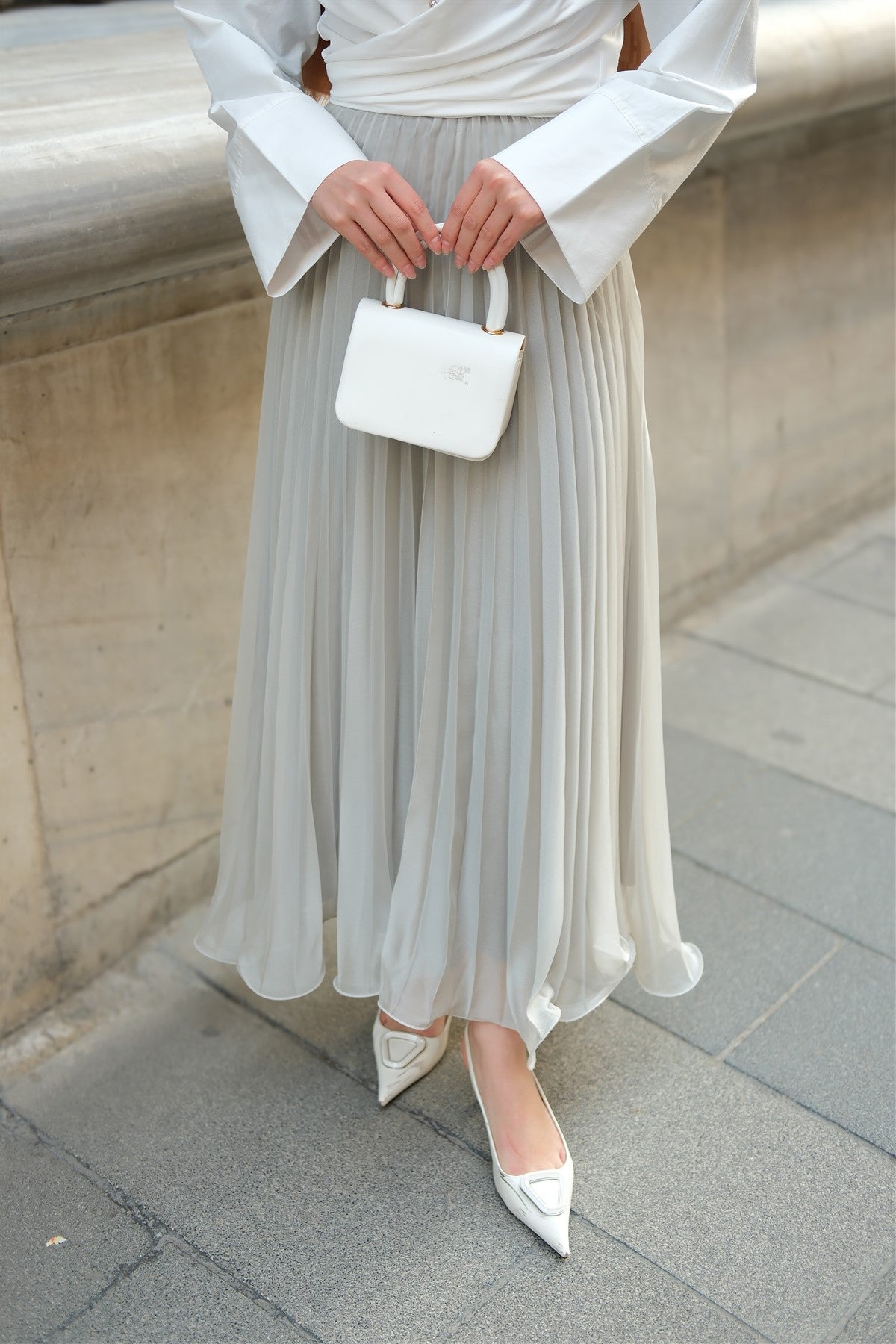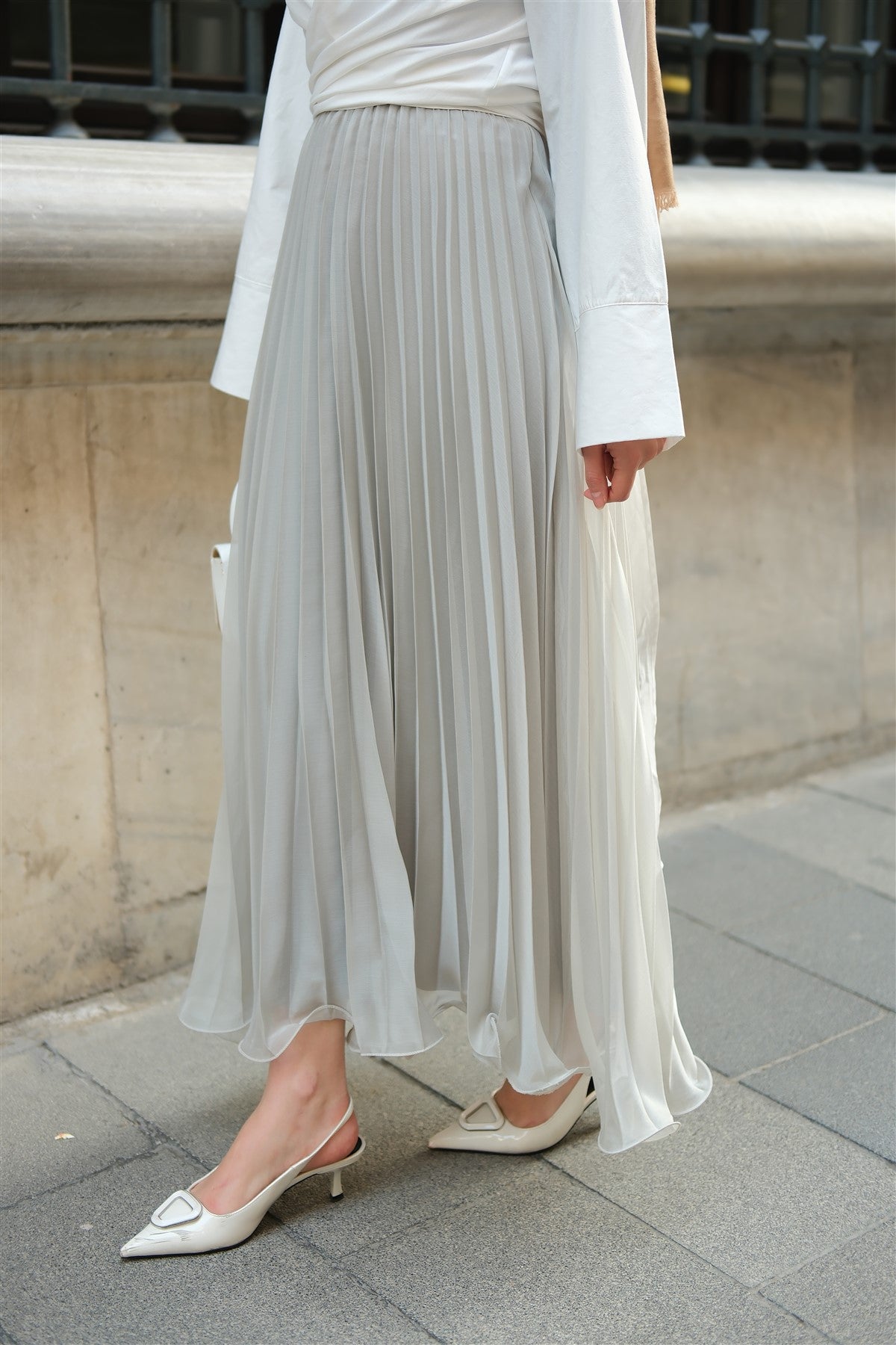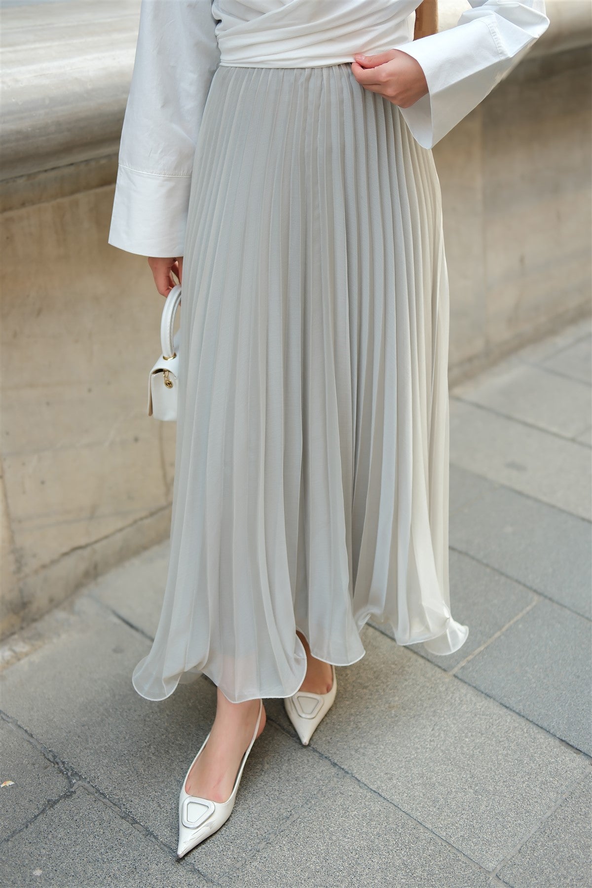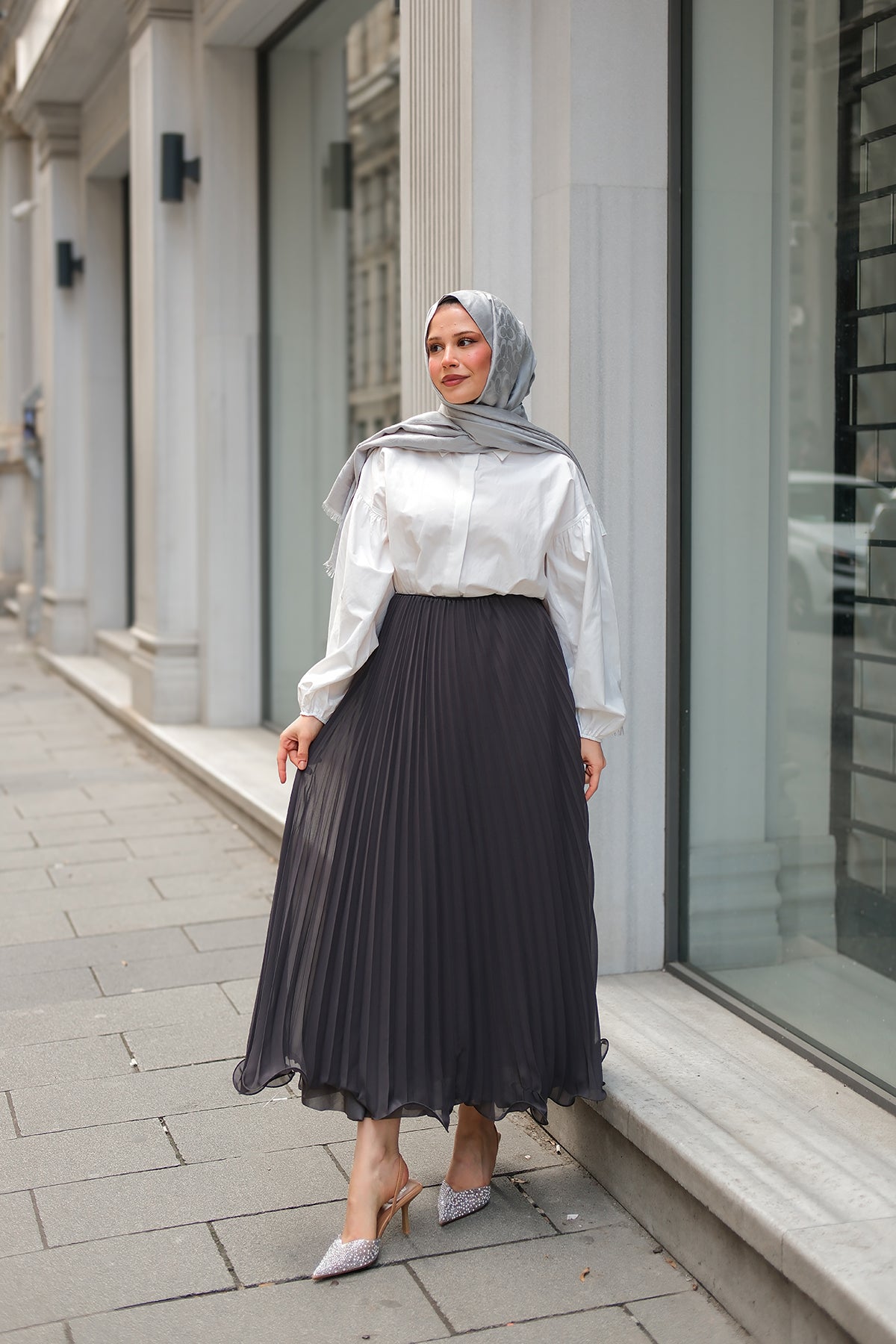 Elastic Waist Pleated Skirt Anthracite
