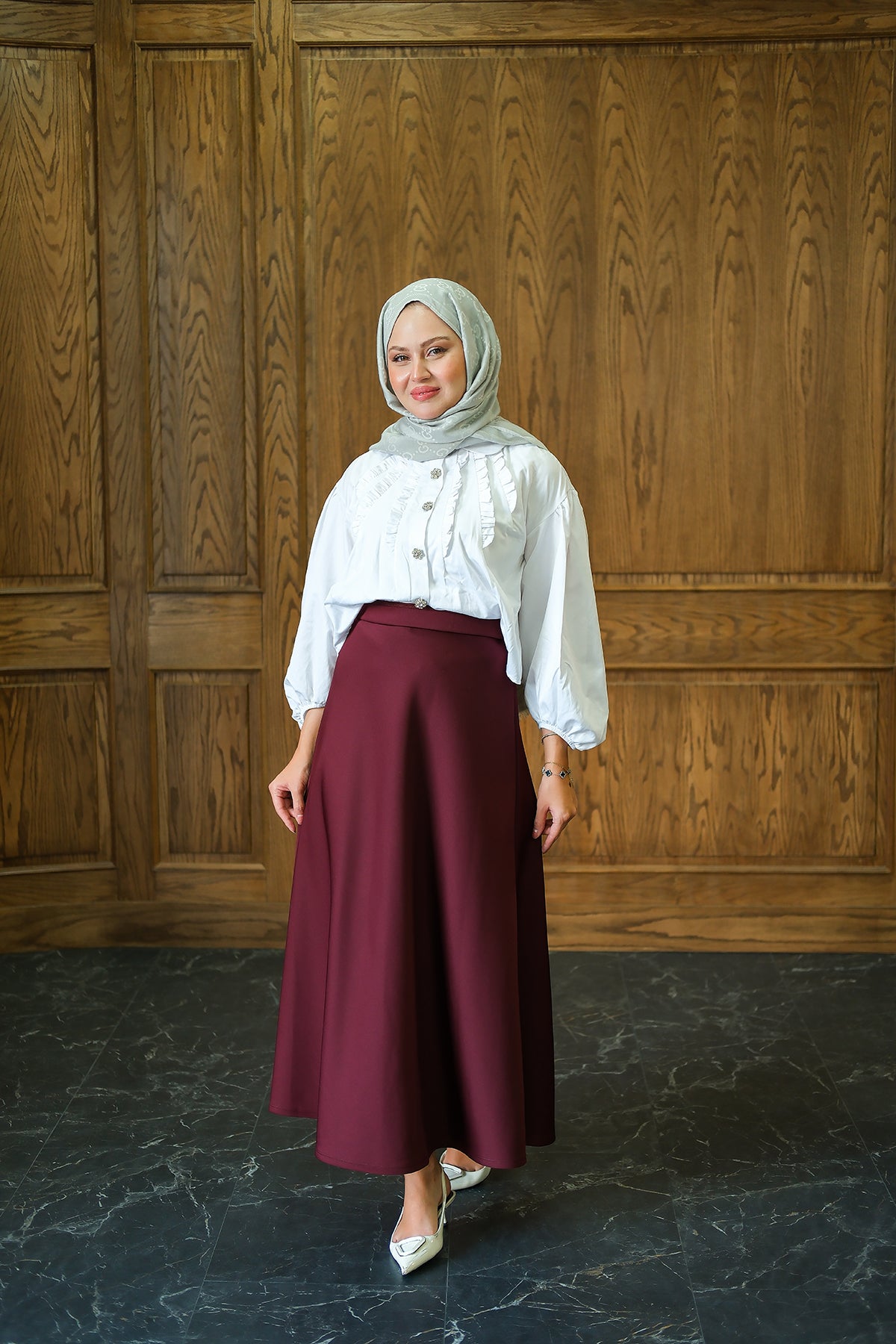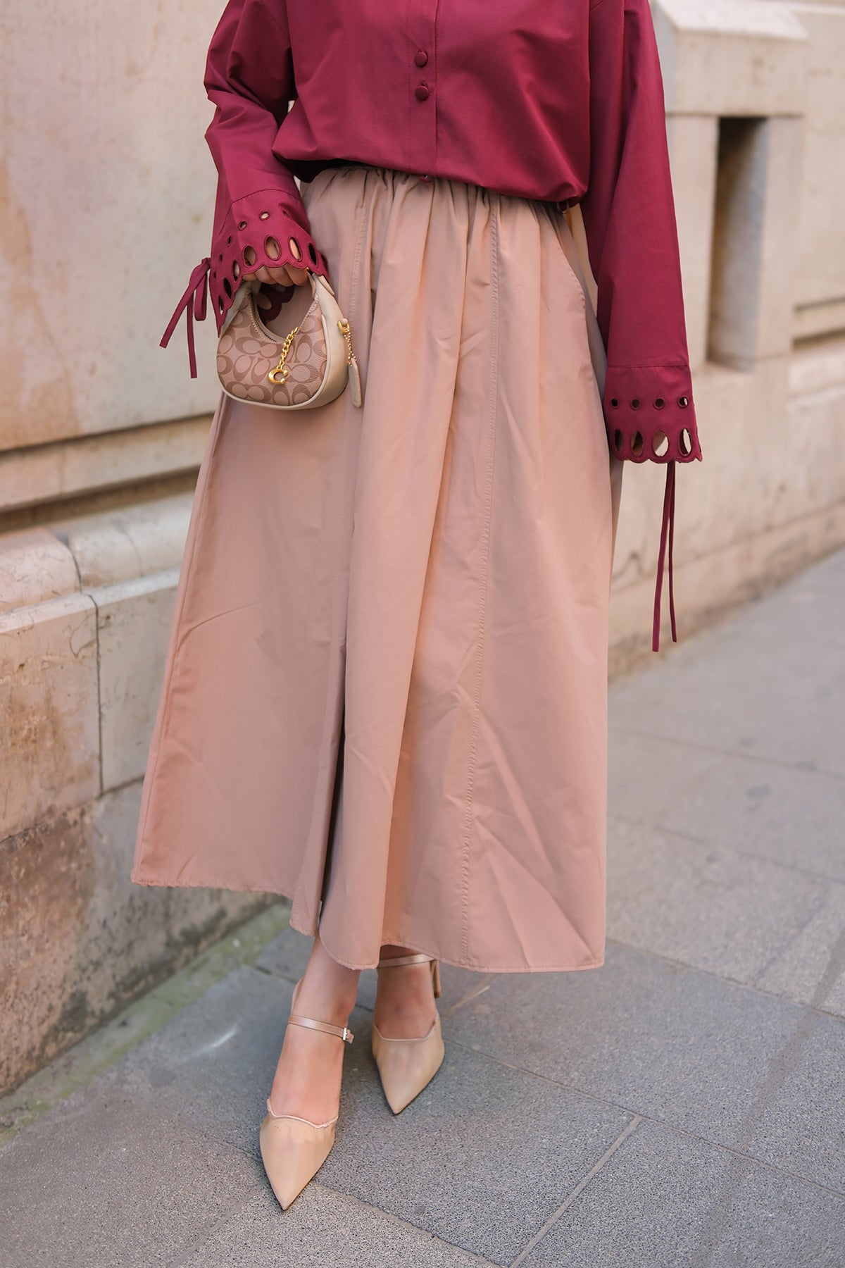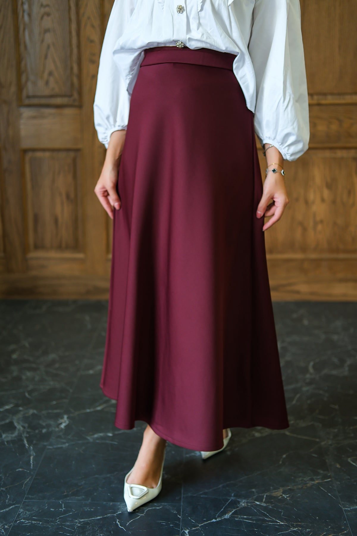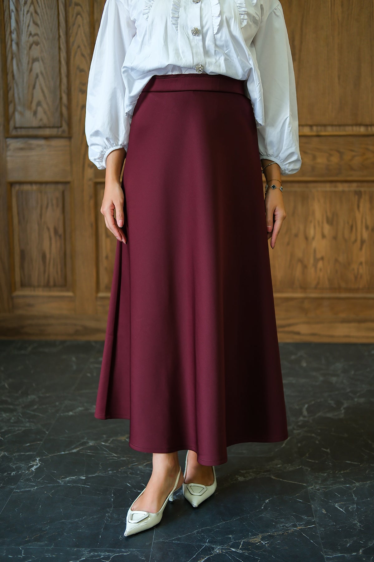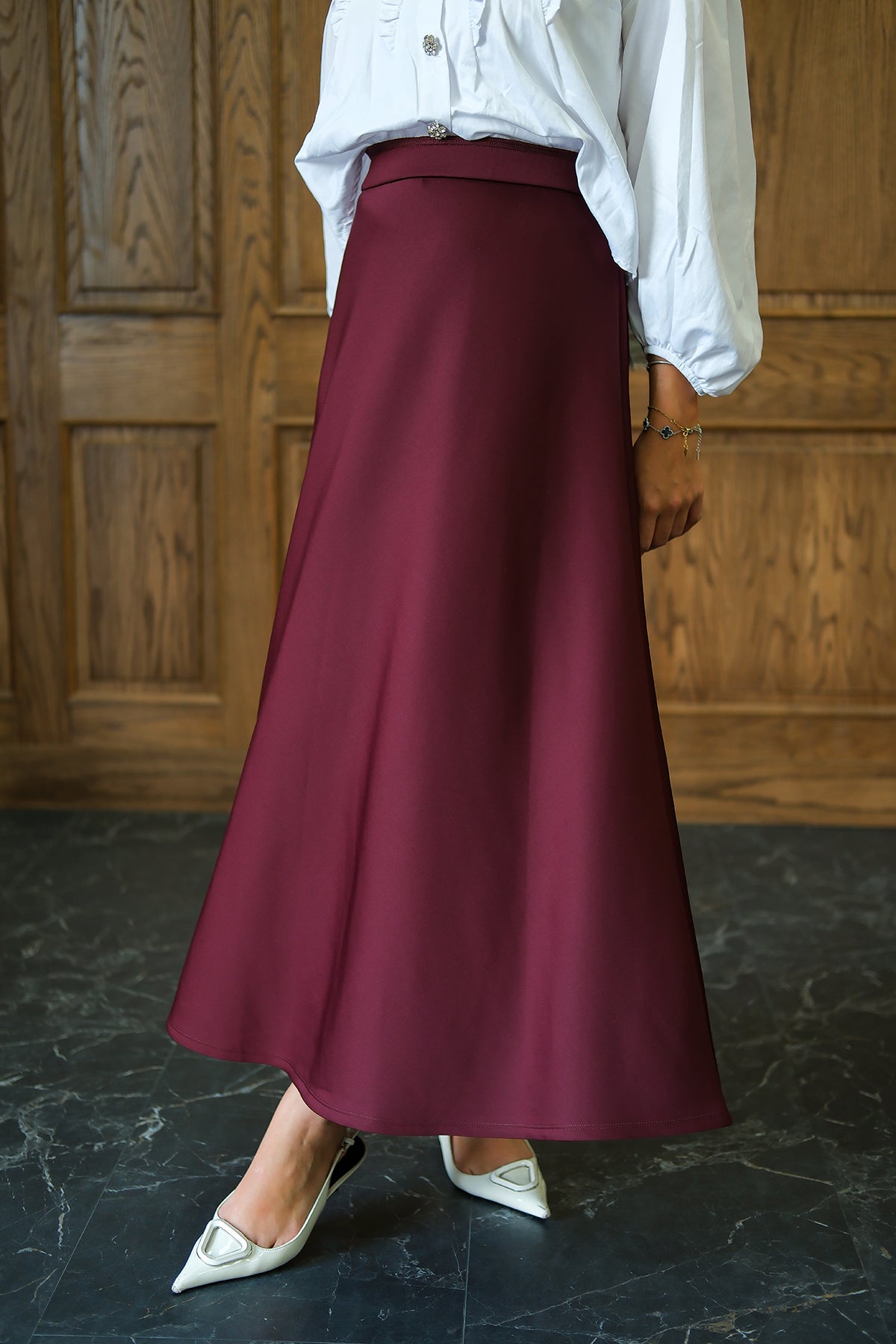 Paneled Cupro Skirt – Burgundy