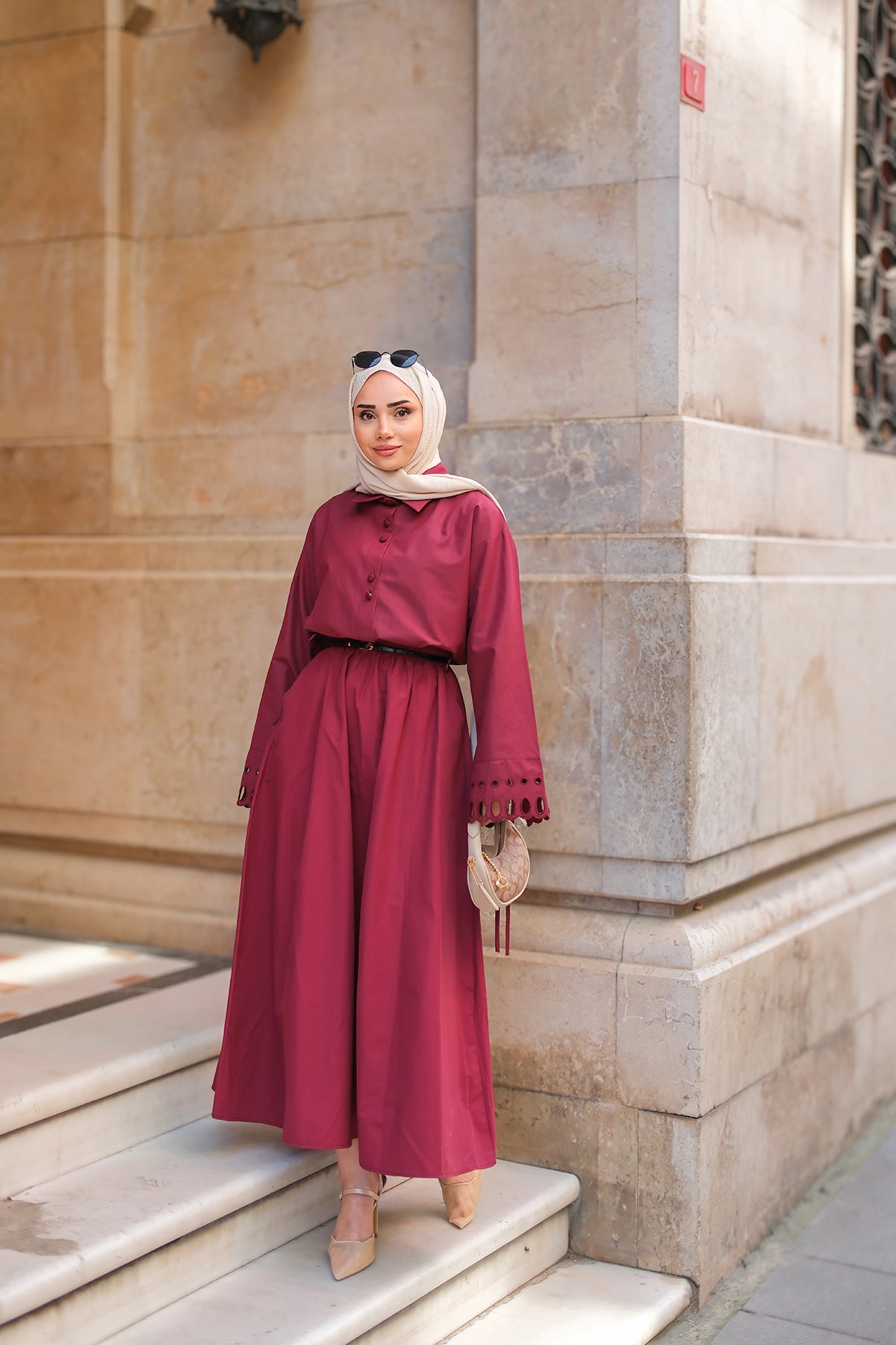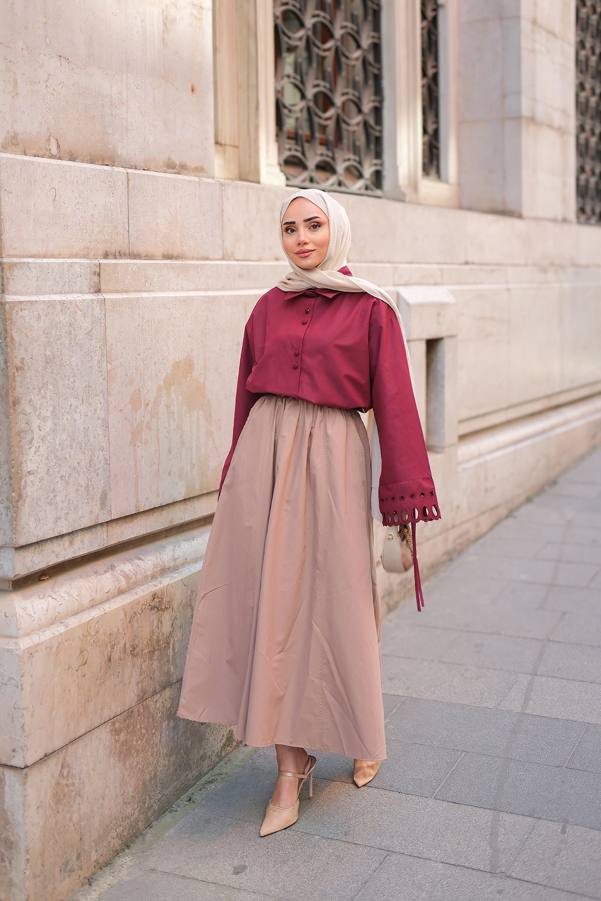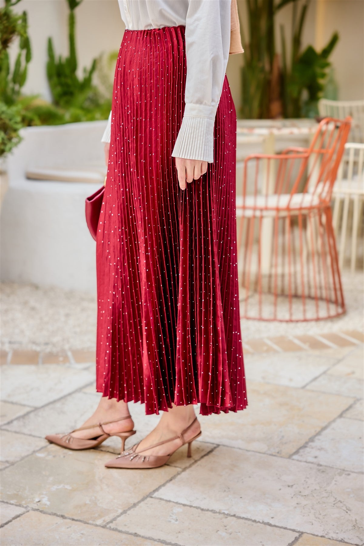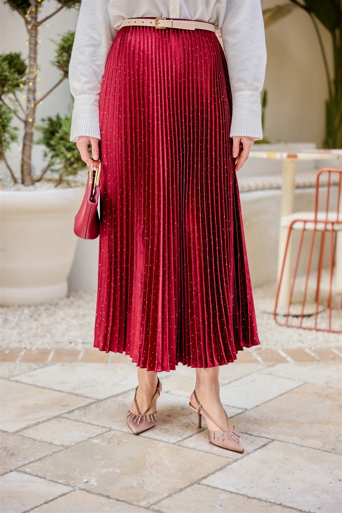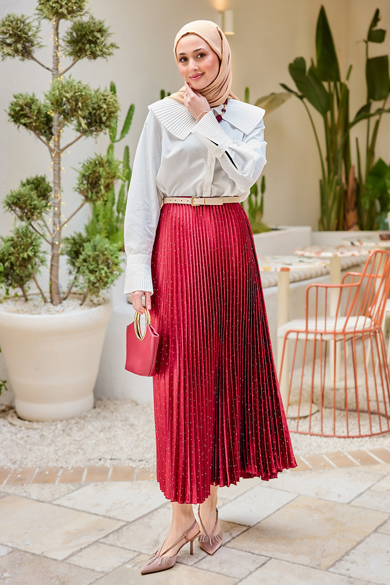 Embellished Crushed-Texture Skirt - Burgundy