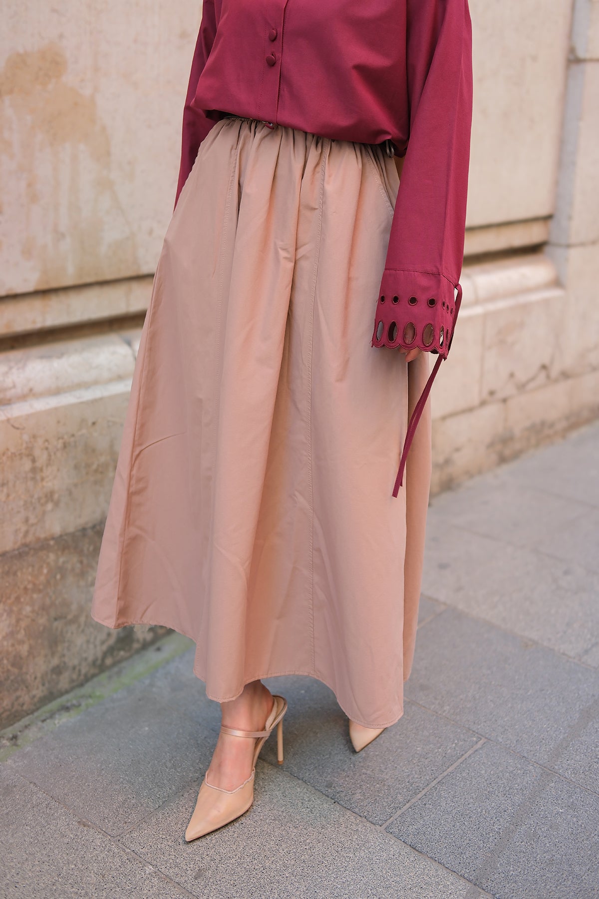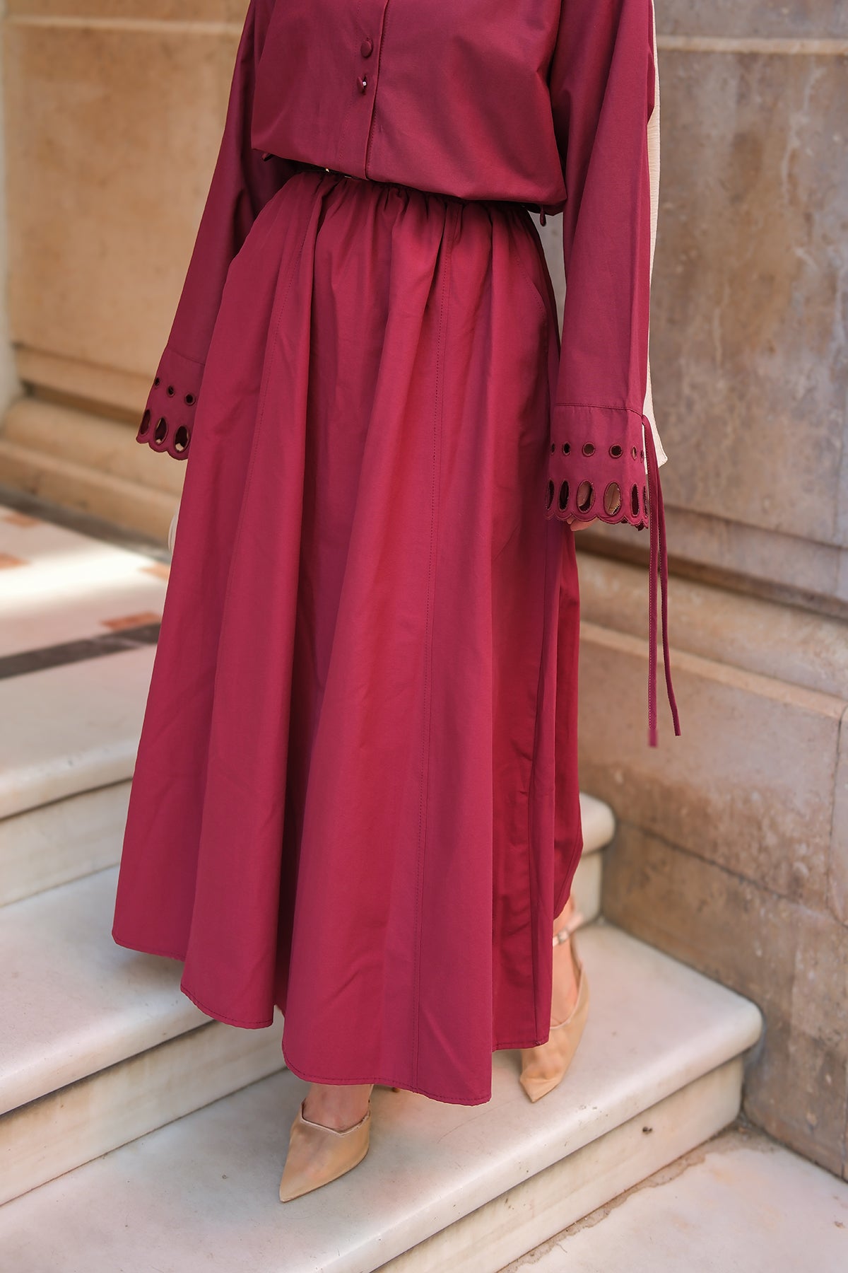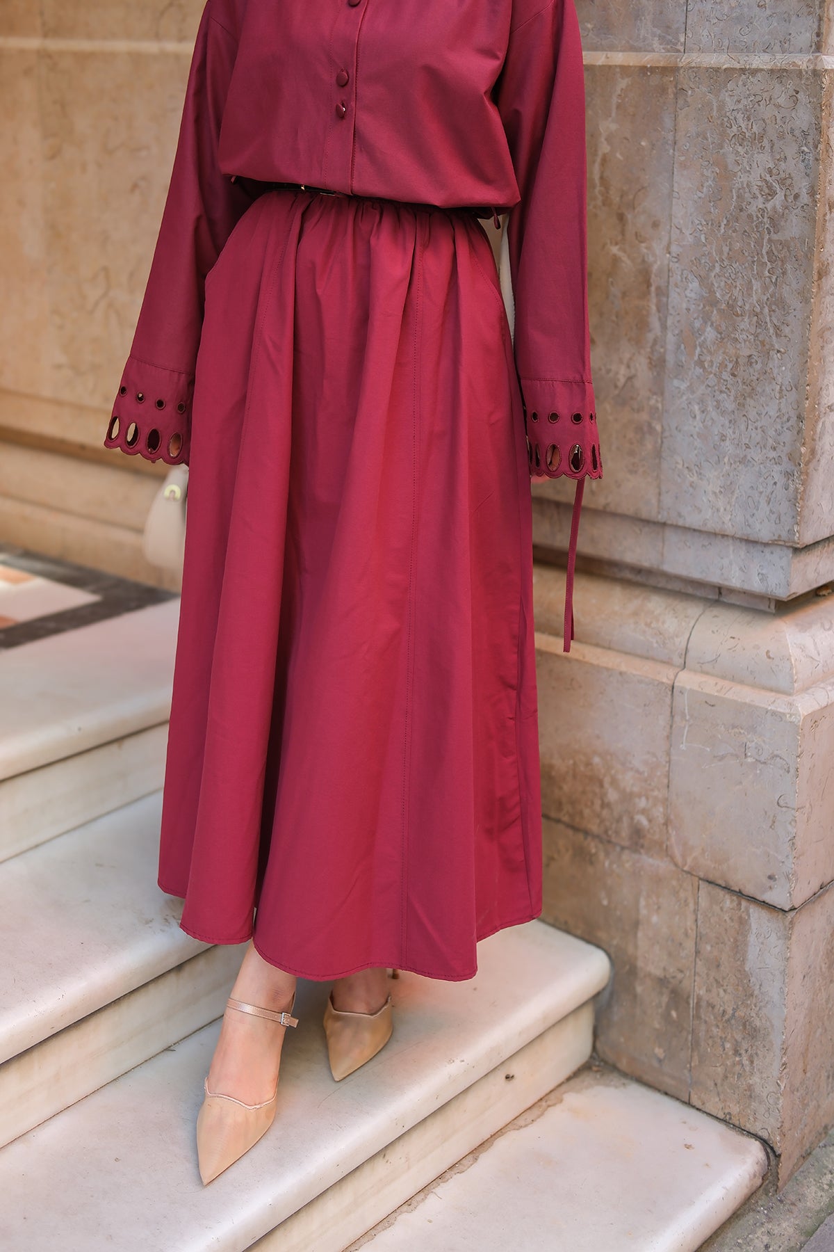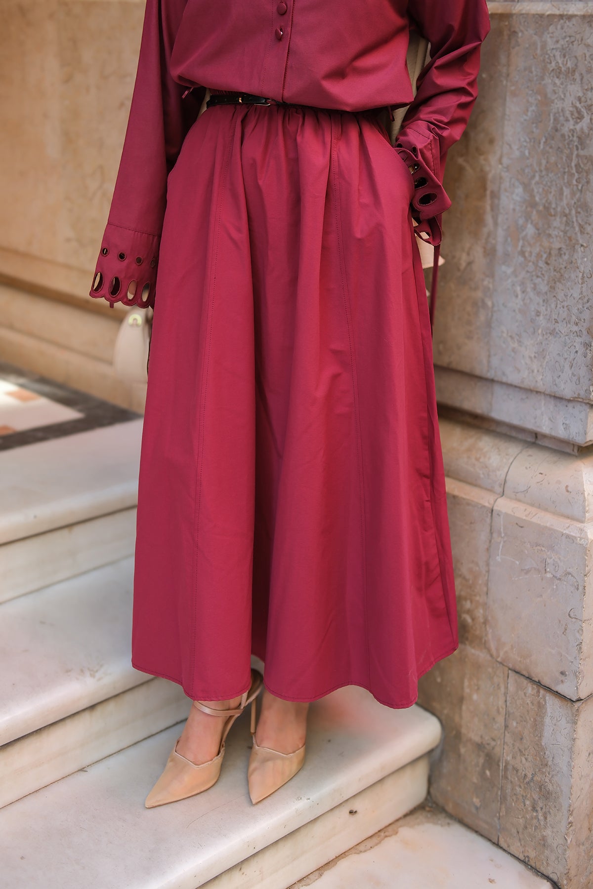 Elastic Waist Skirt - Burgundy