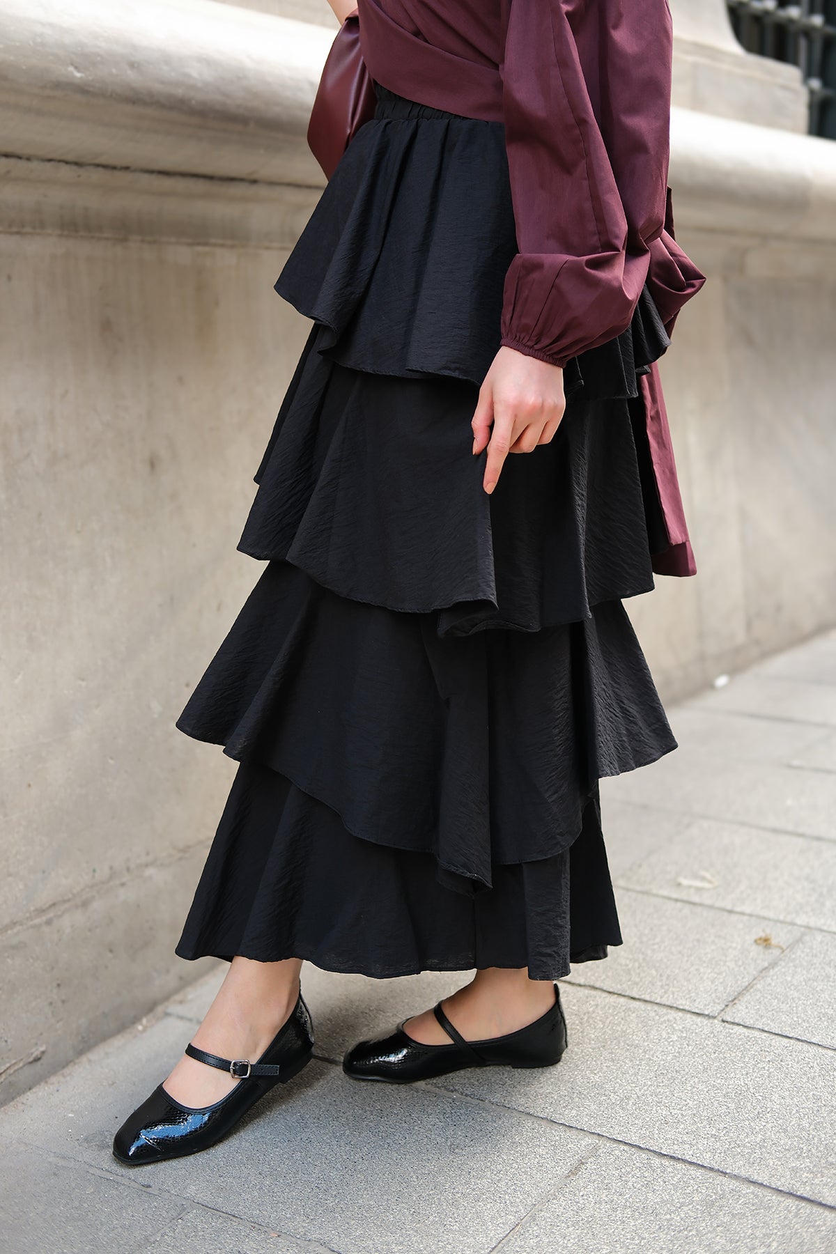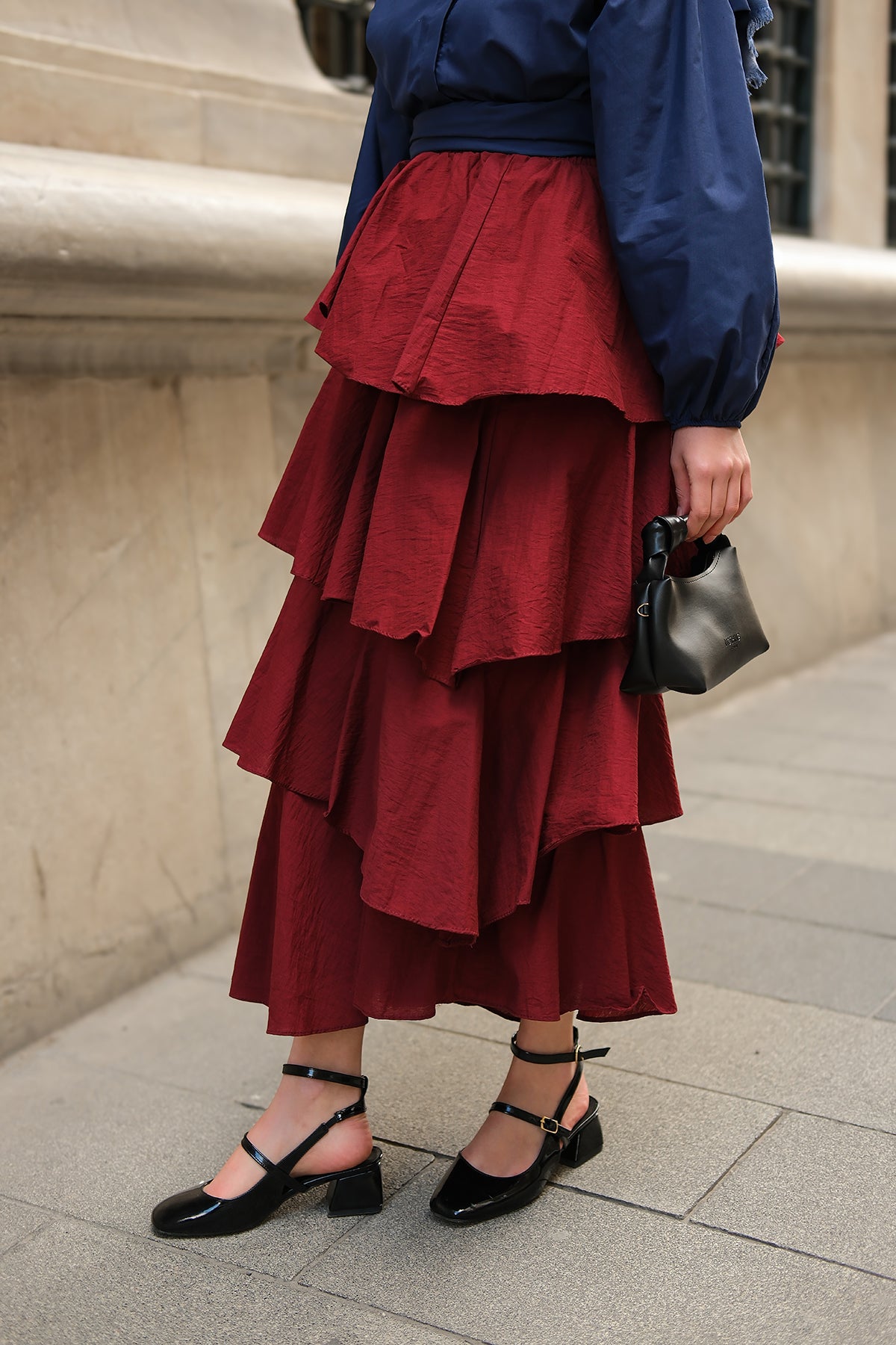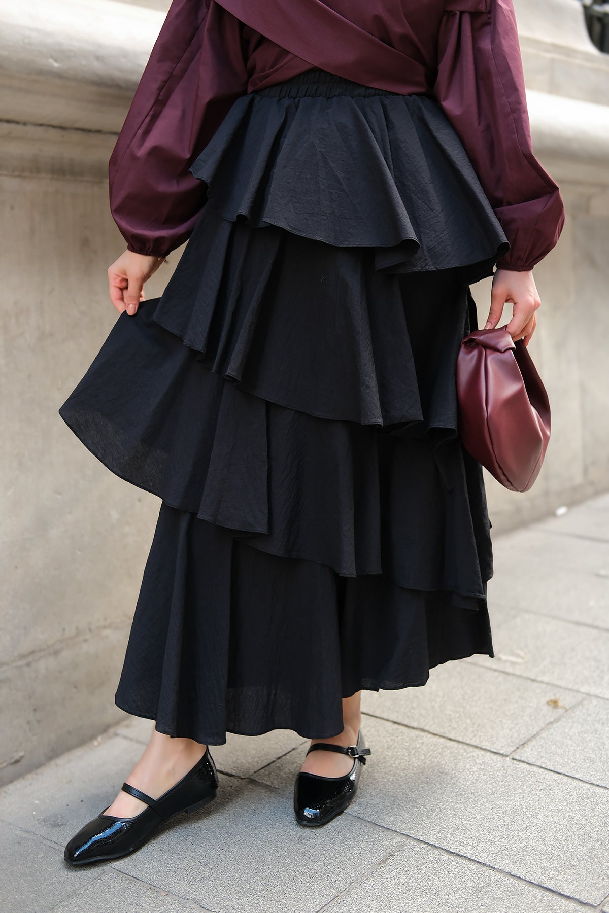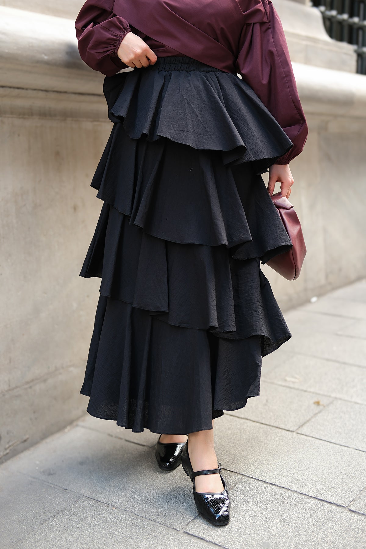 Layered Flounced Skirt - Burgundy