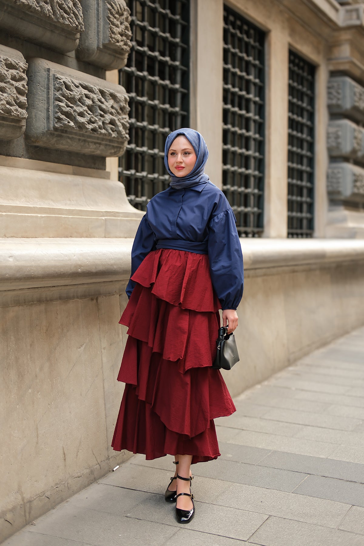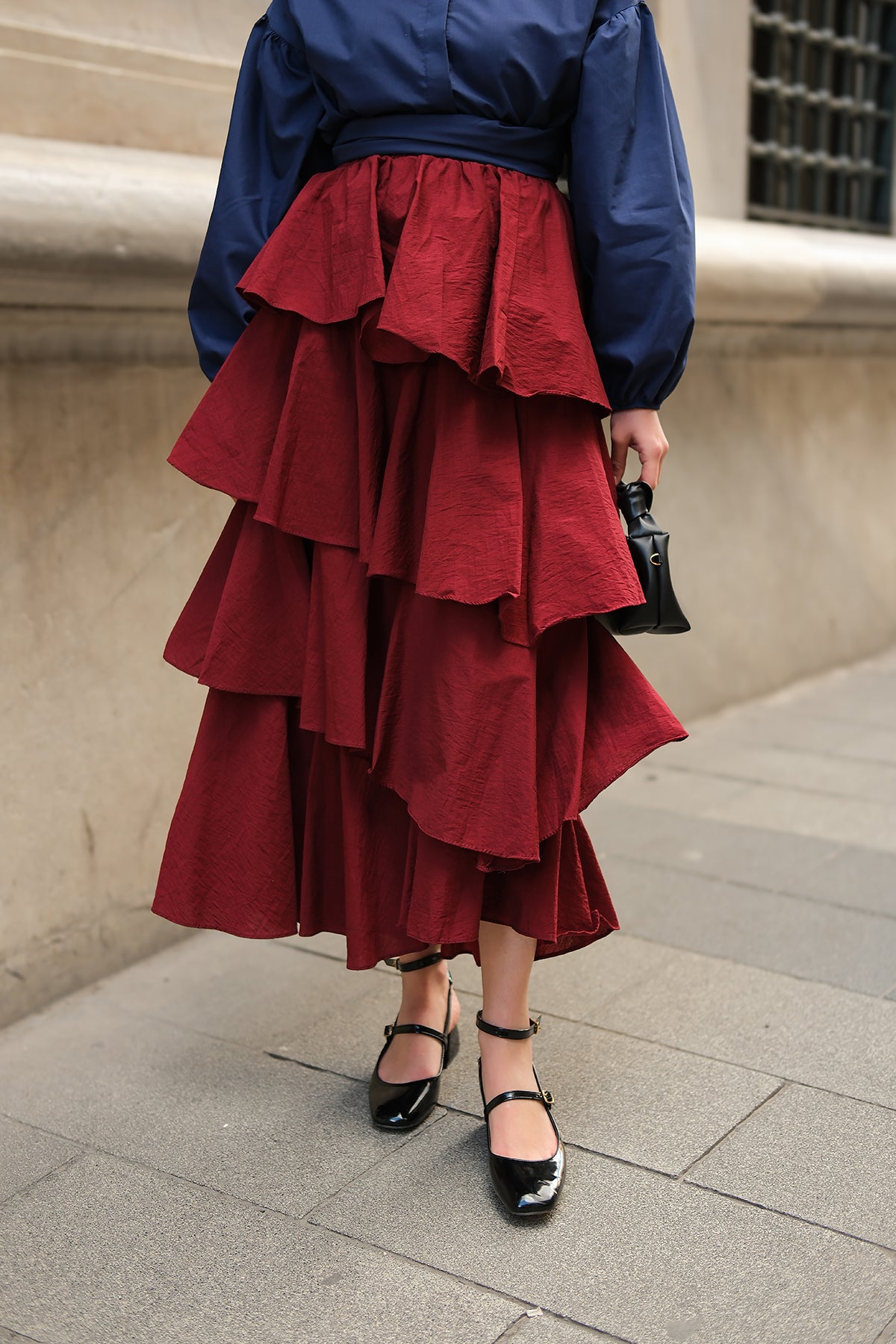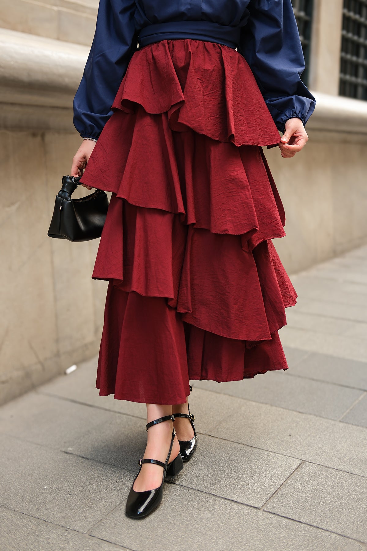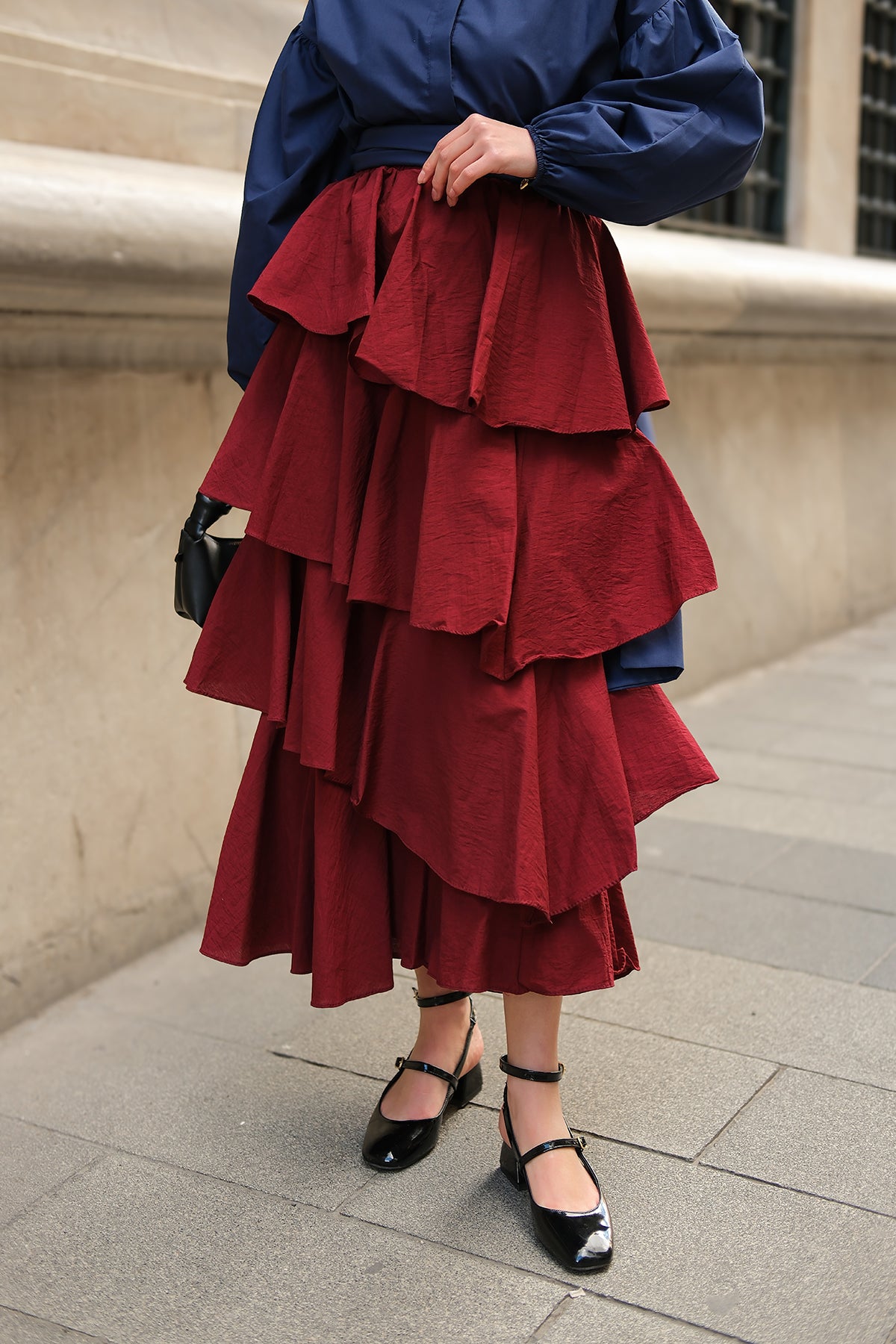 Layered Flounced Skirt - Burgundy
