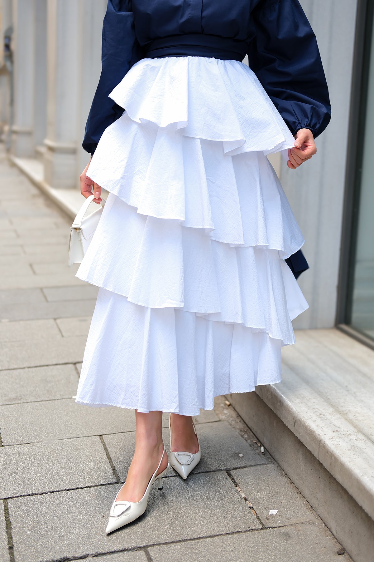 Layered Frills Skirt Navy Blue