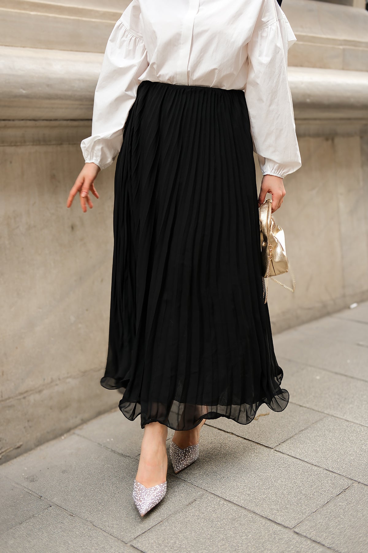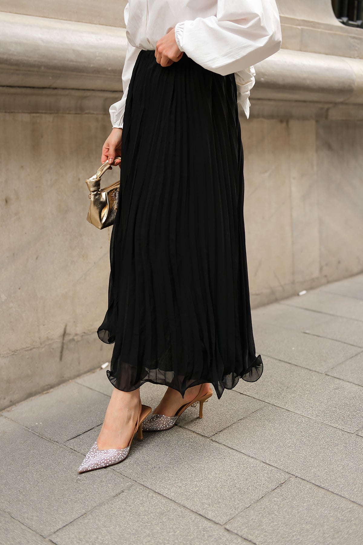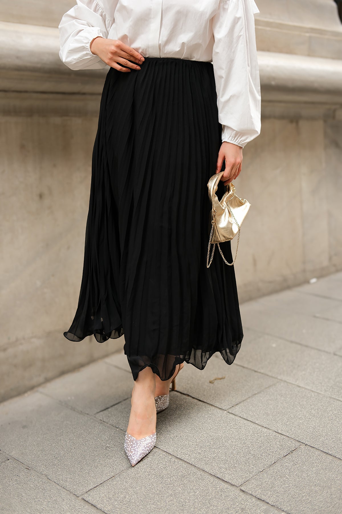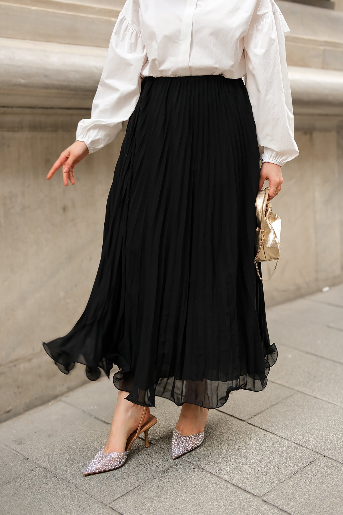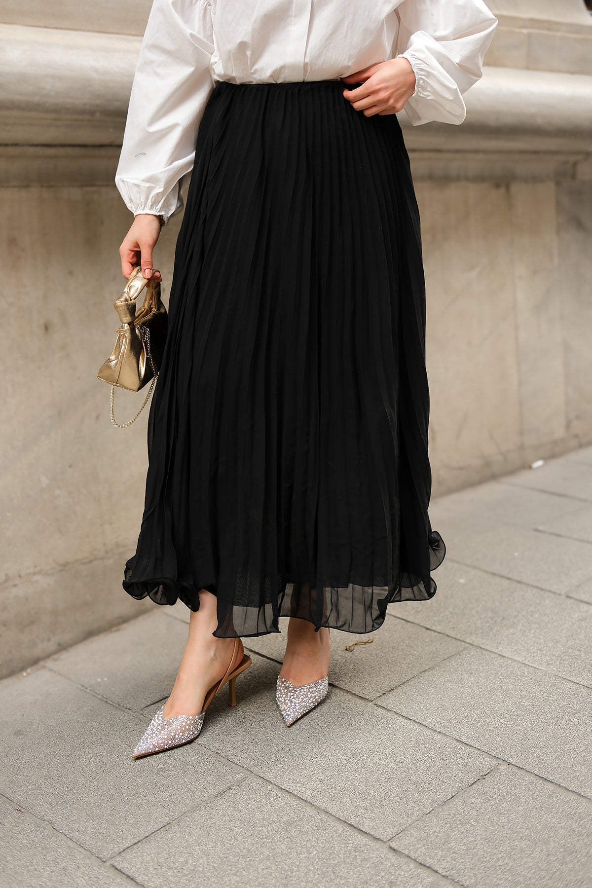 Elastic Waist Pleated Skirt Black