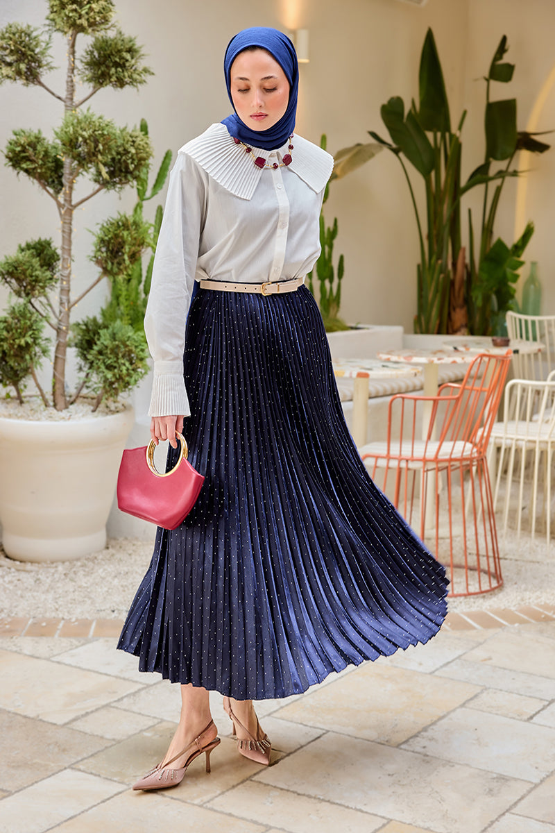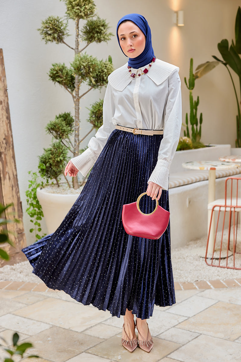 Stone Embellished Crushed Skirt Navy Blue