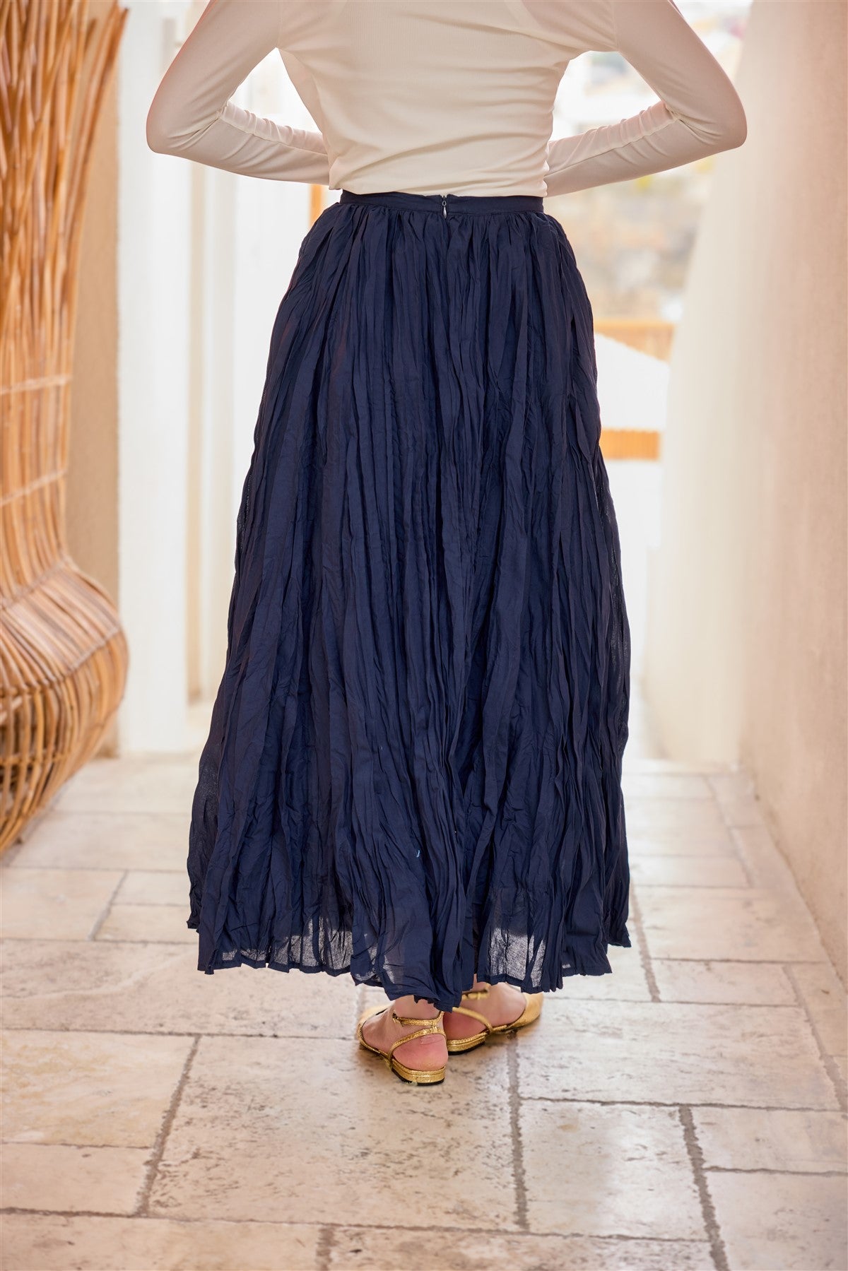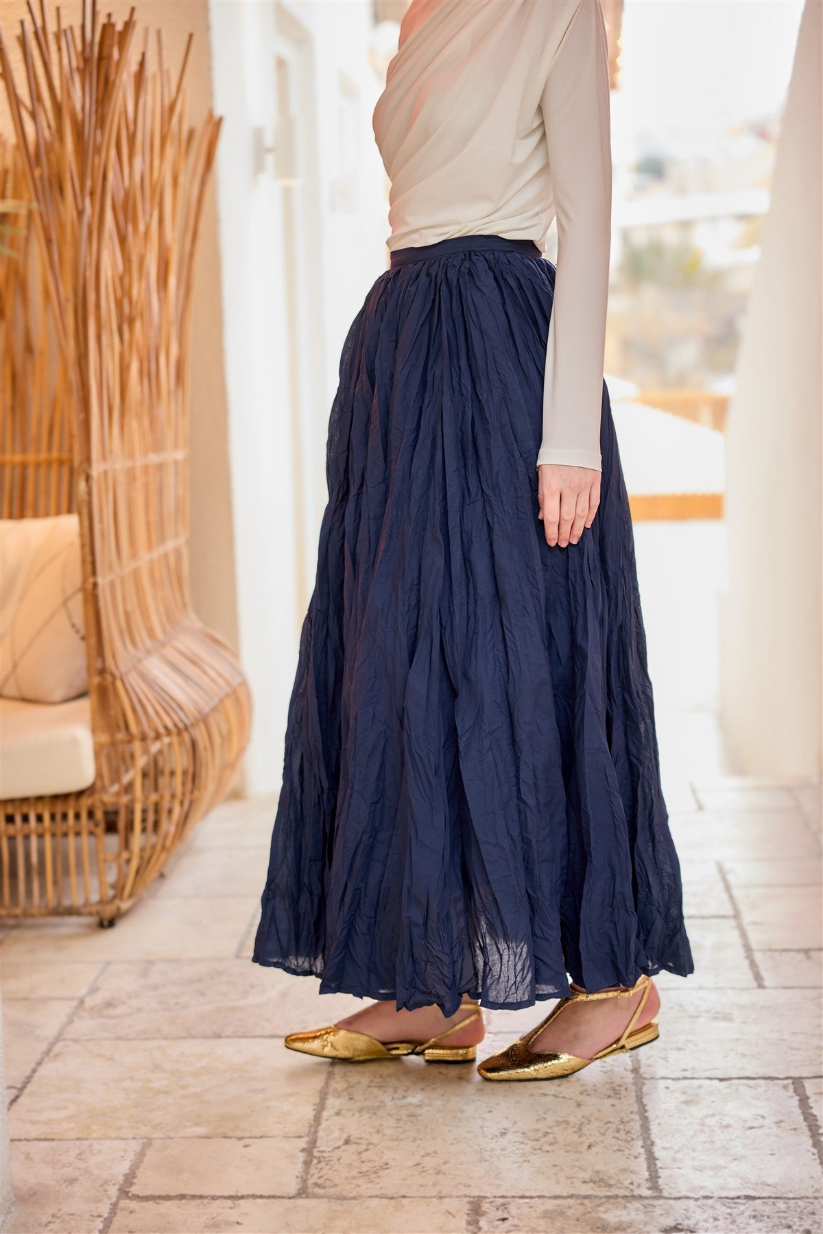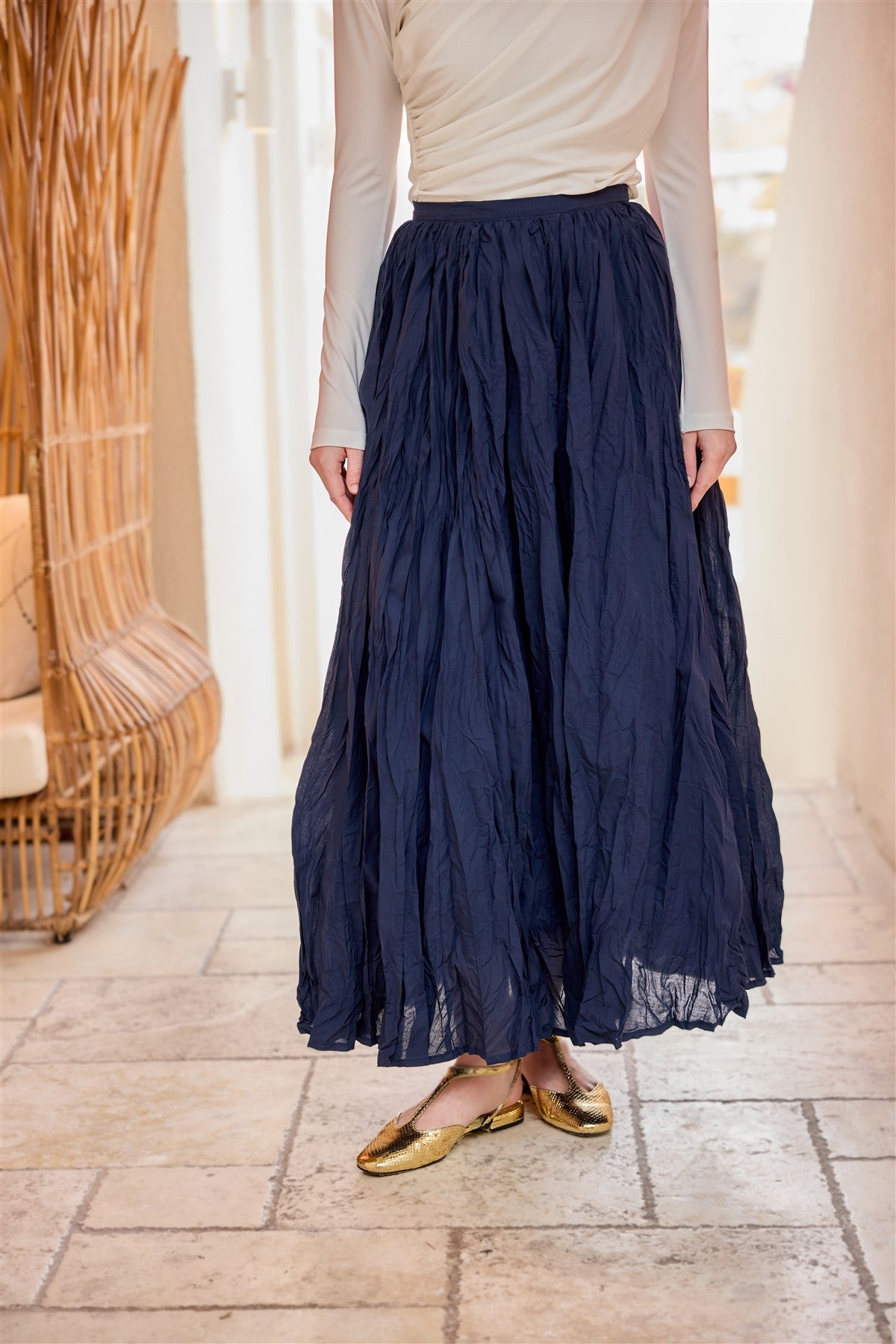 Wrinkled Flared Skirt - Indigo Blue