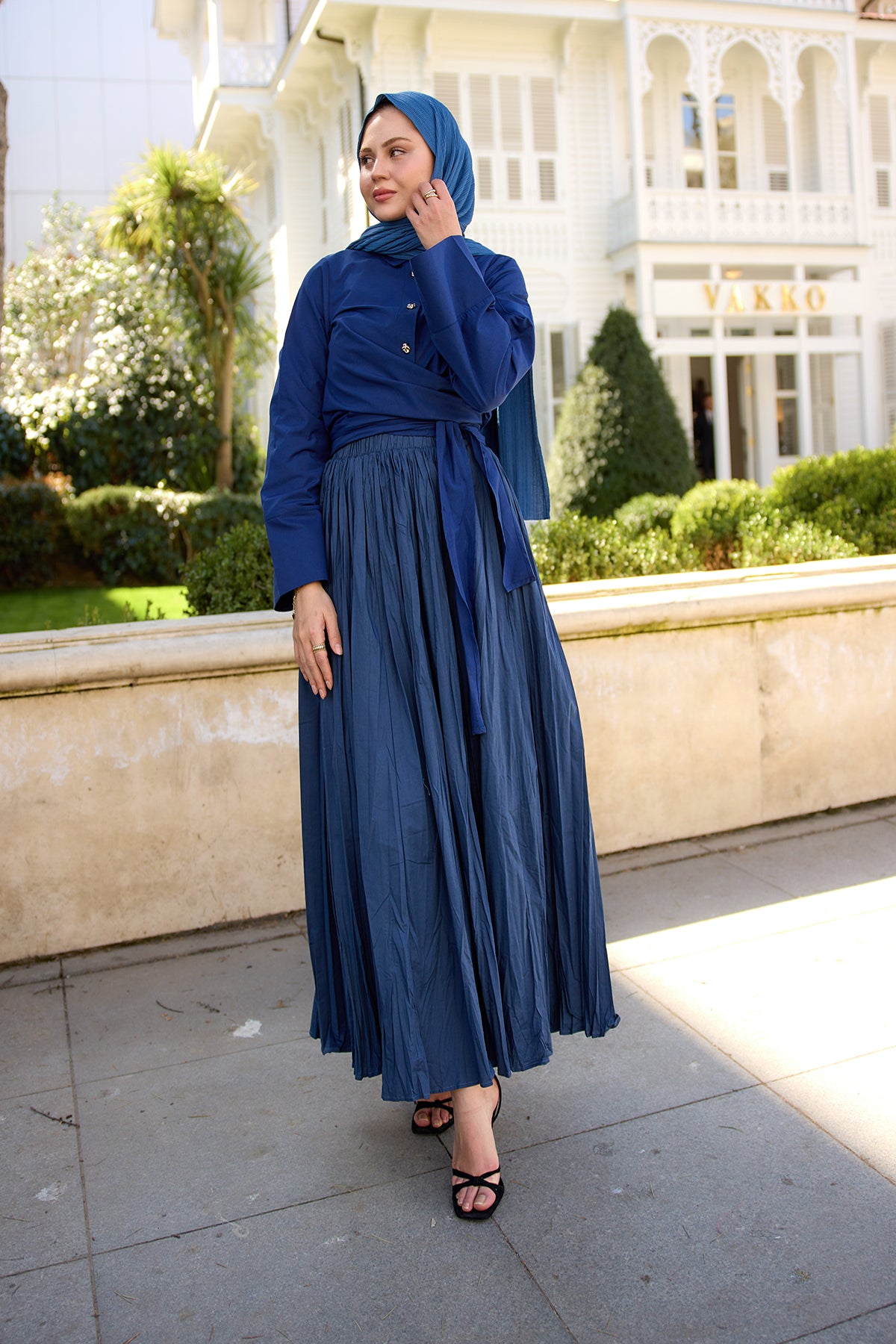 Elastic Waist Crushed Skirt Indigo Blue
