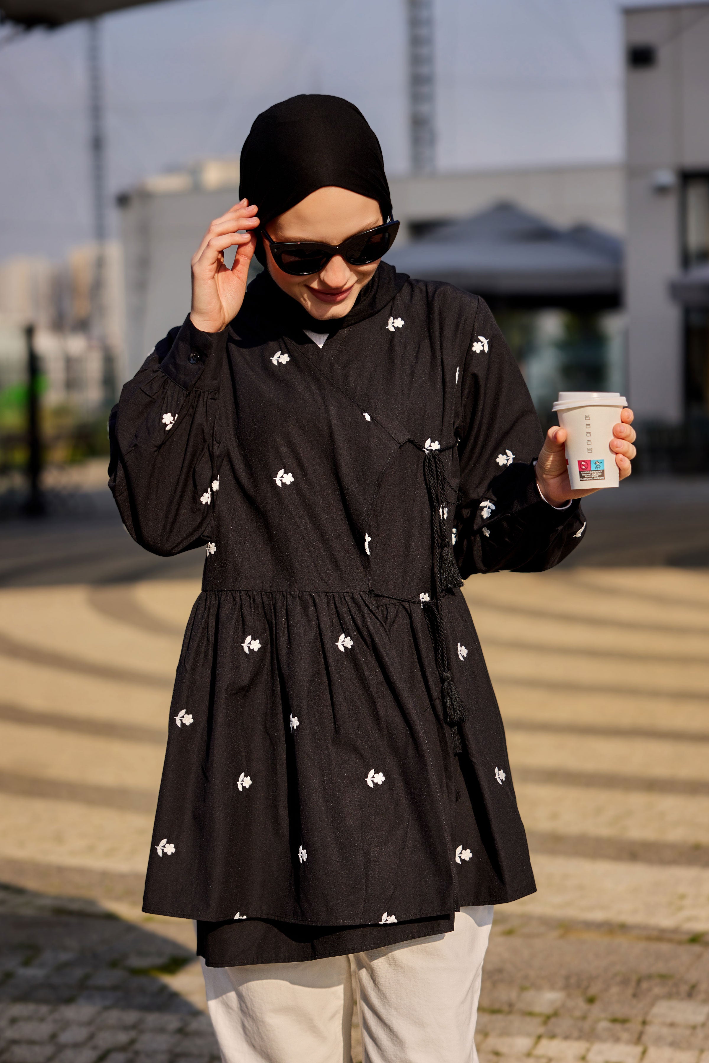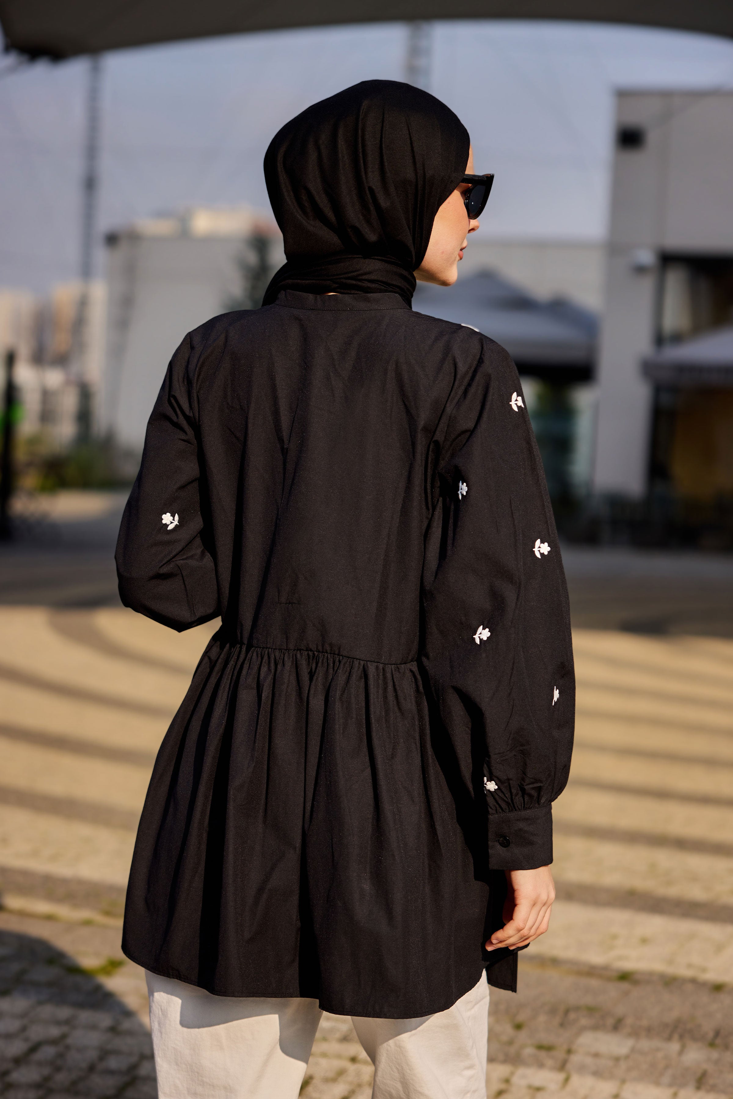 Black Tunic with Embroidered Side Tie