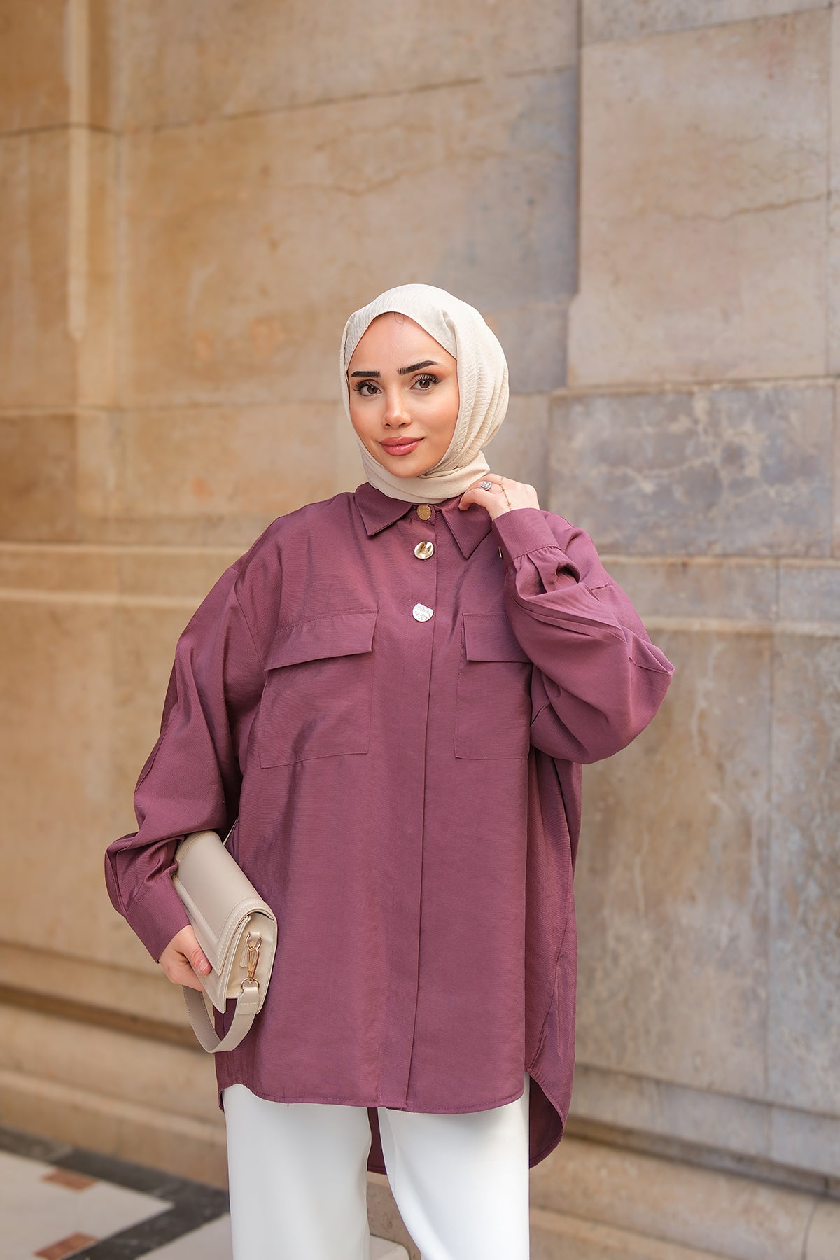 Cargo Pocket Oversize Shirt Rosewood