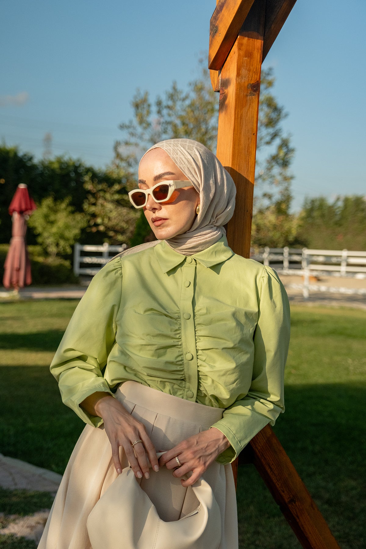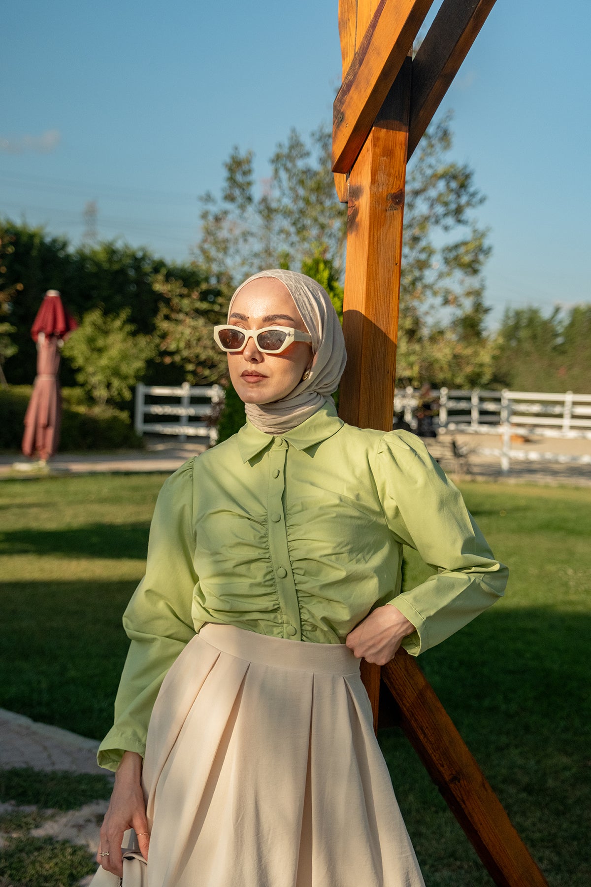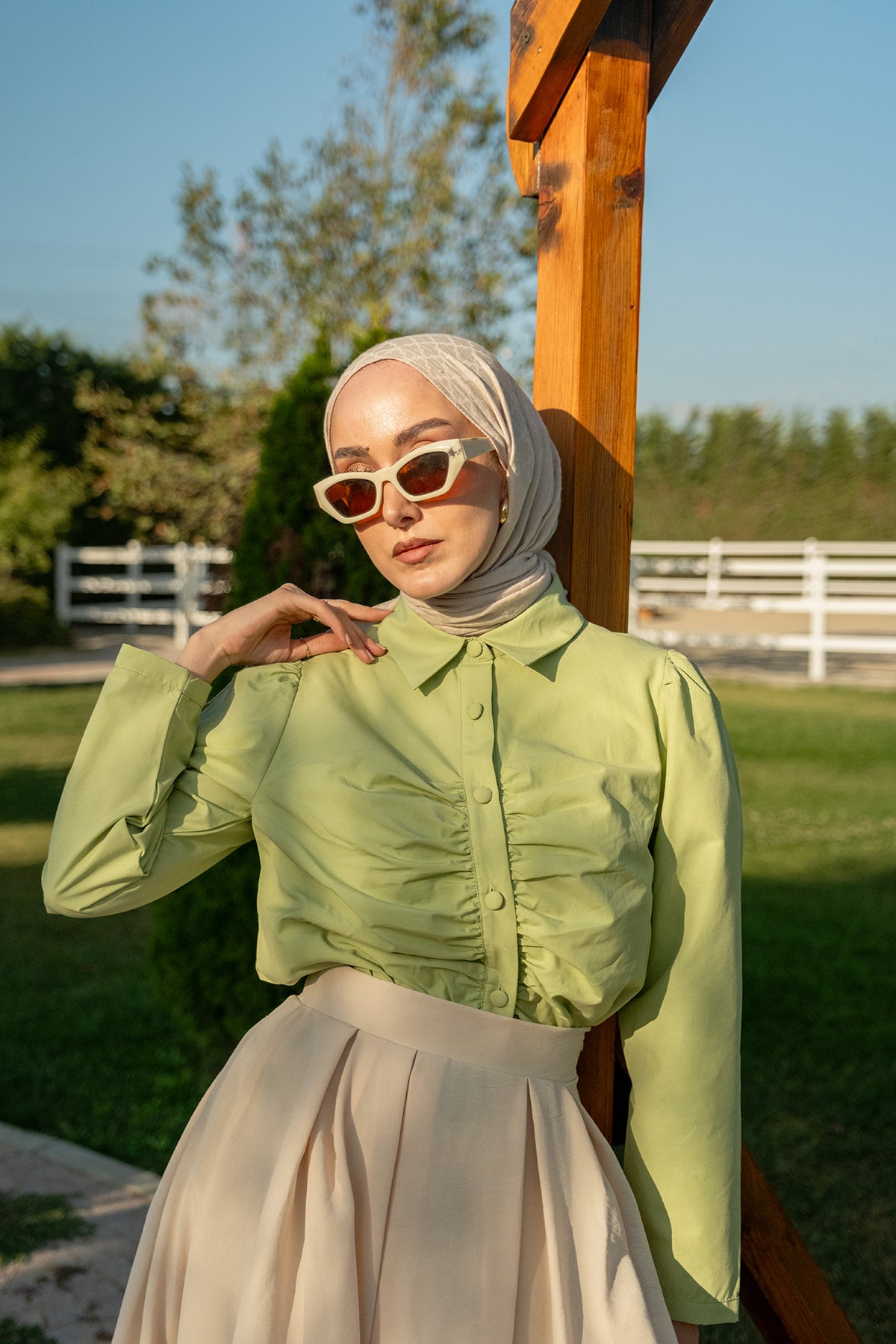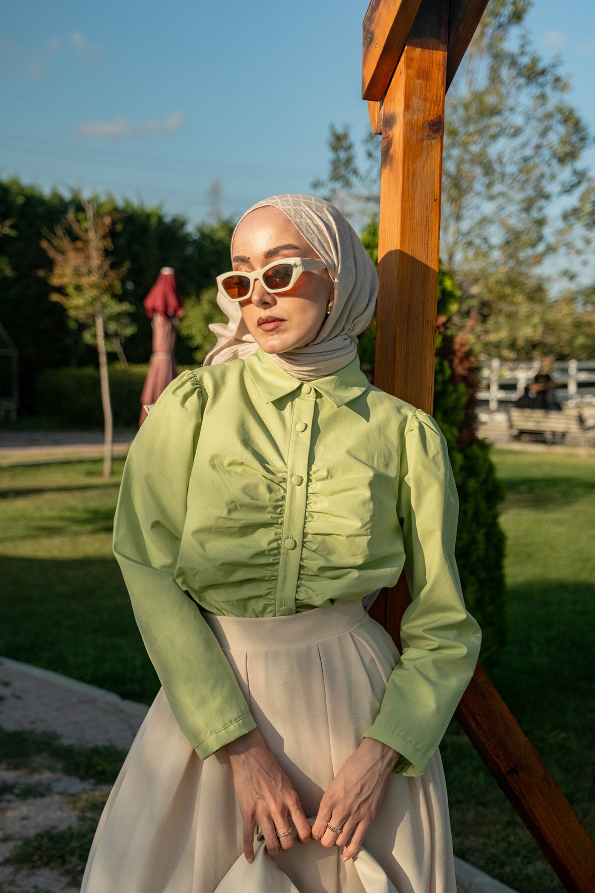 Gathered Detail Poplin Shirt – Green