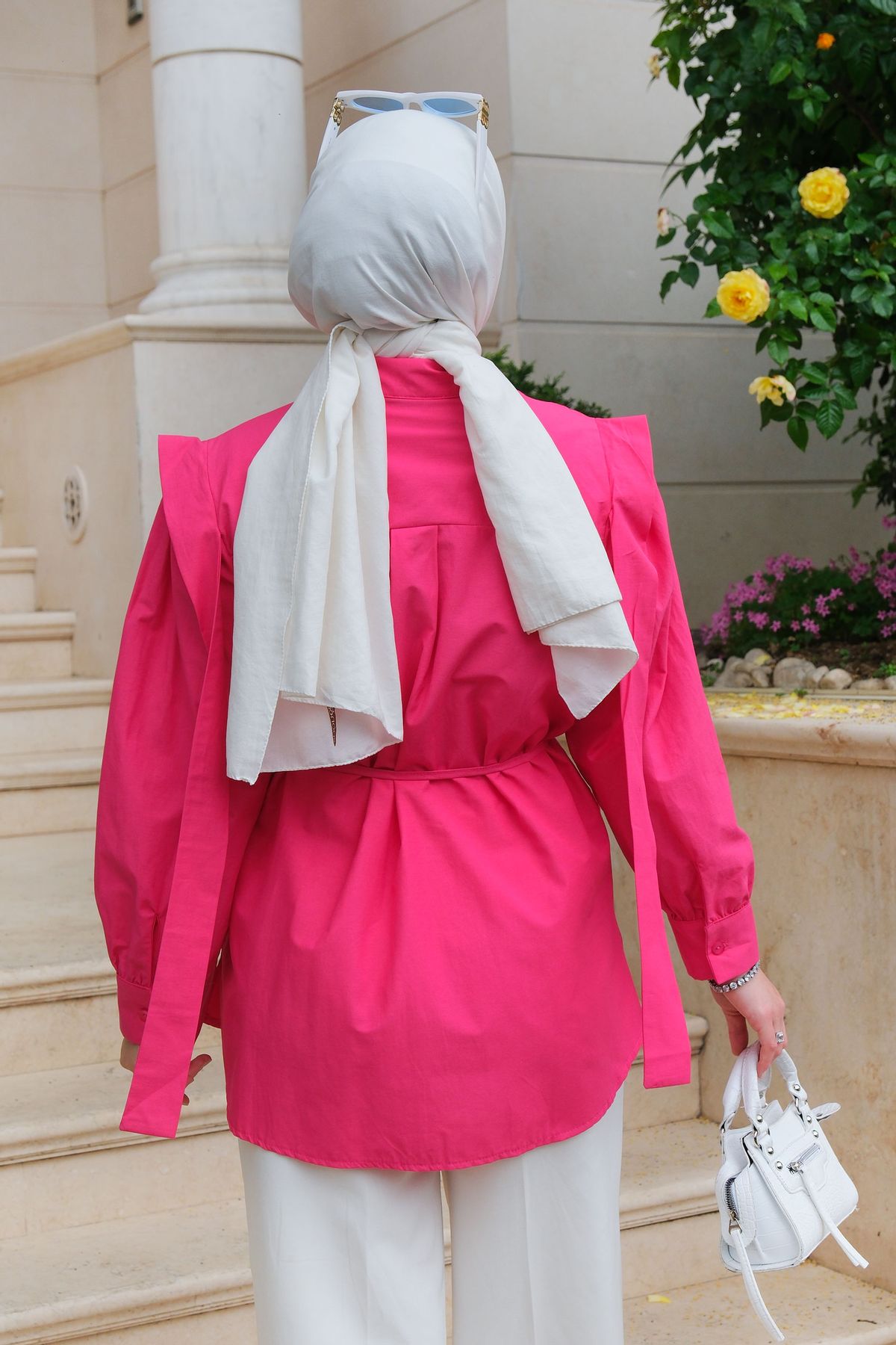 Pleated Detailed Shirt with Hidden Button Front Fuchsia
