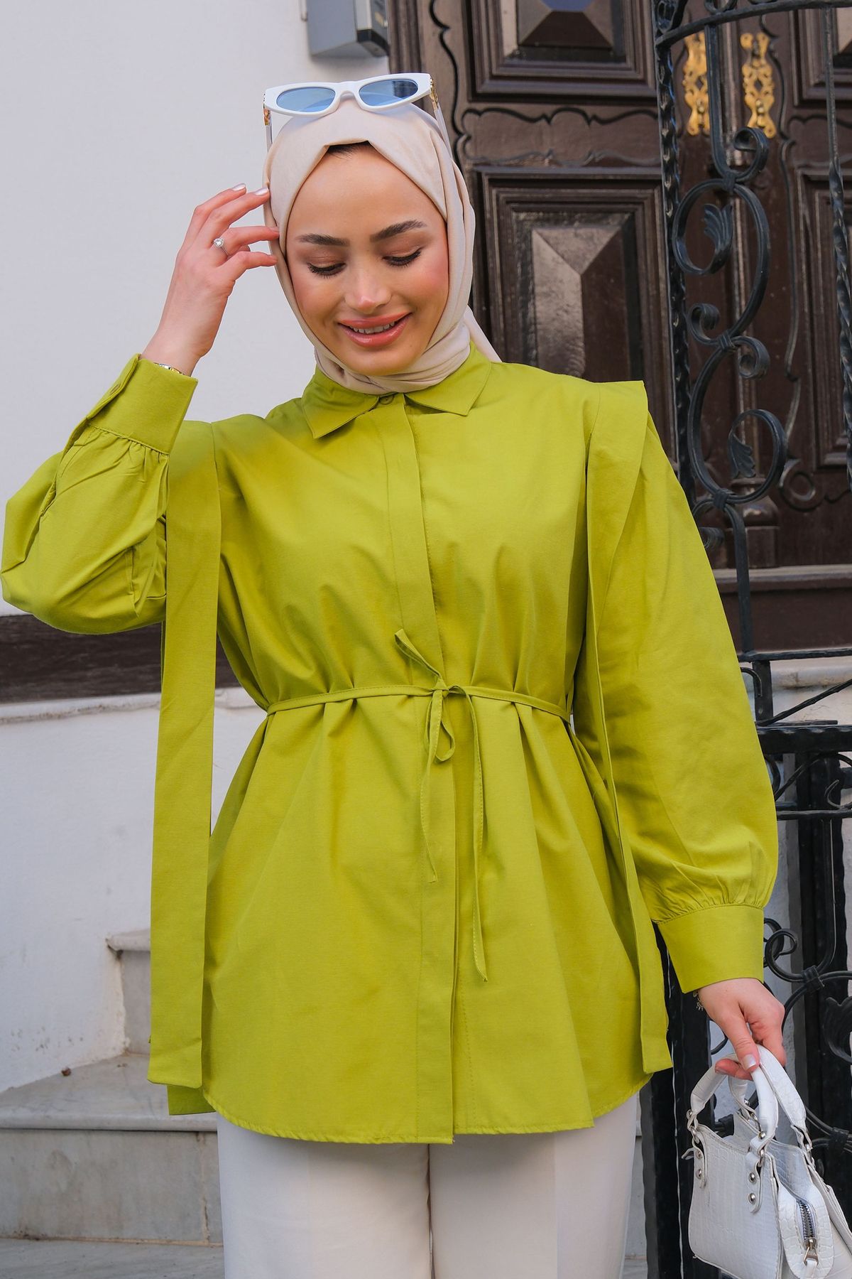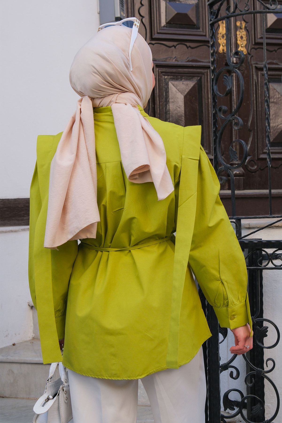 Pleated Detailed Shirt with Hidden Button Front Oil Green