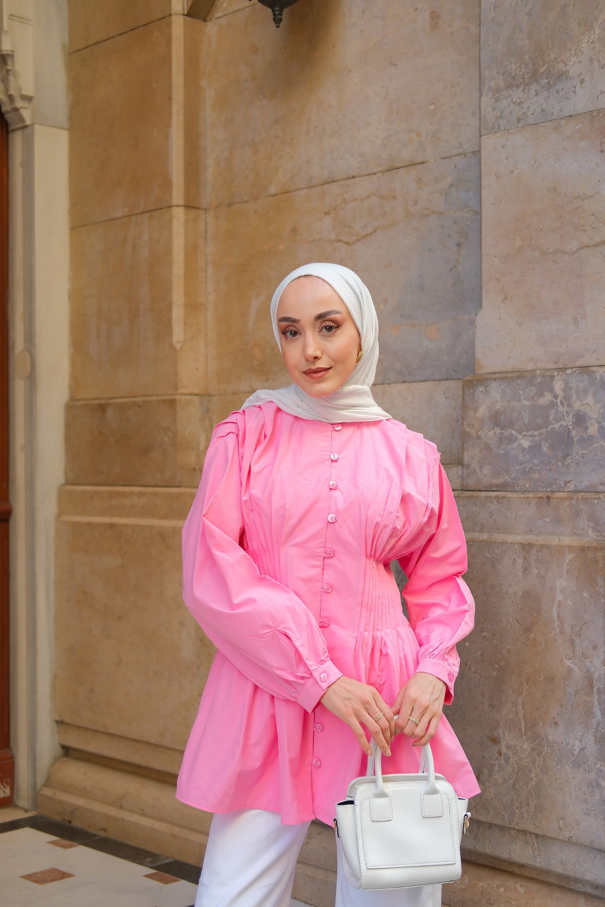 Poplin Shirt with Ribbed Waist – Pink