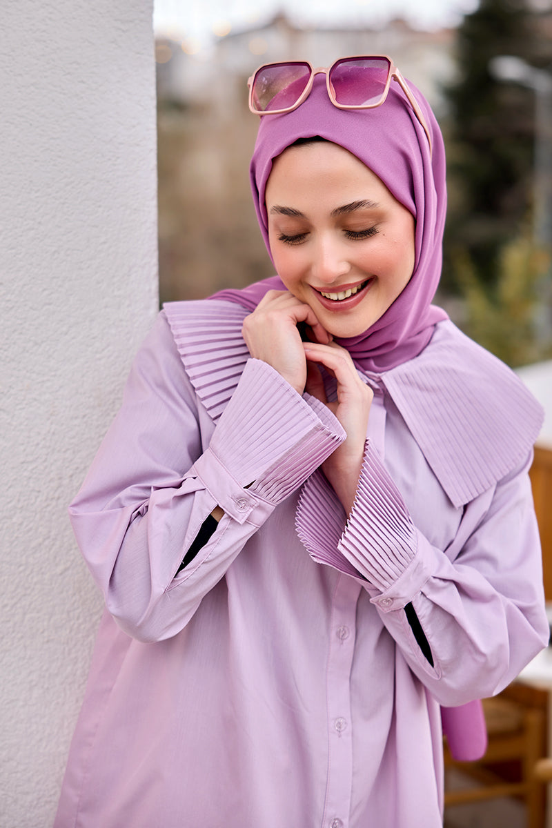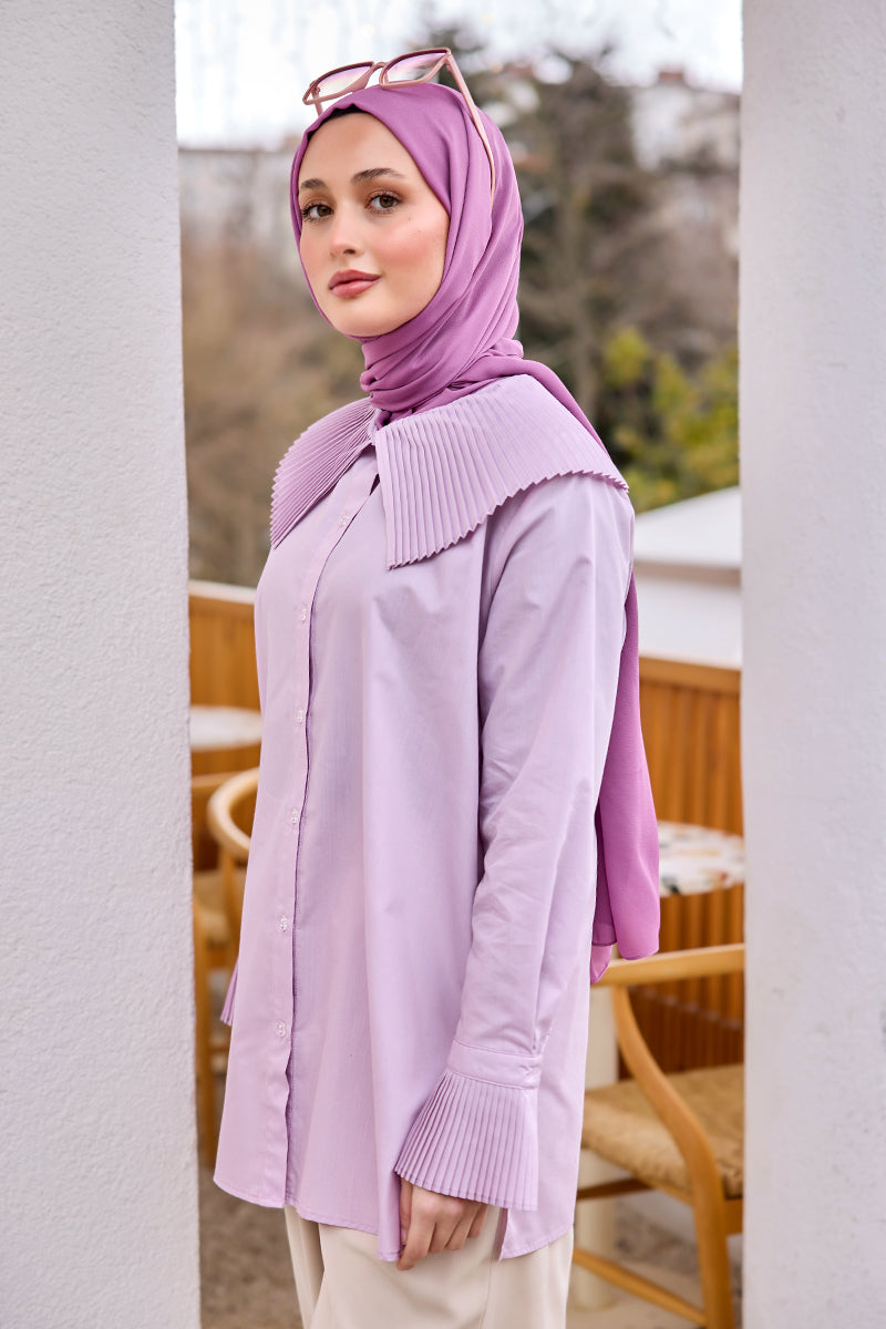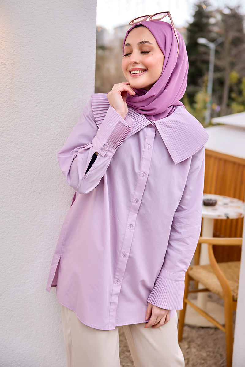 Shirt With Pleated Sleeve Details - Lilac Shirt.