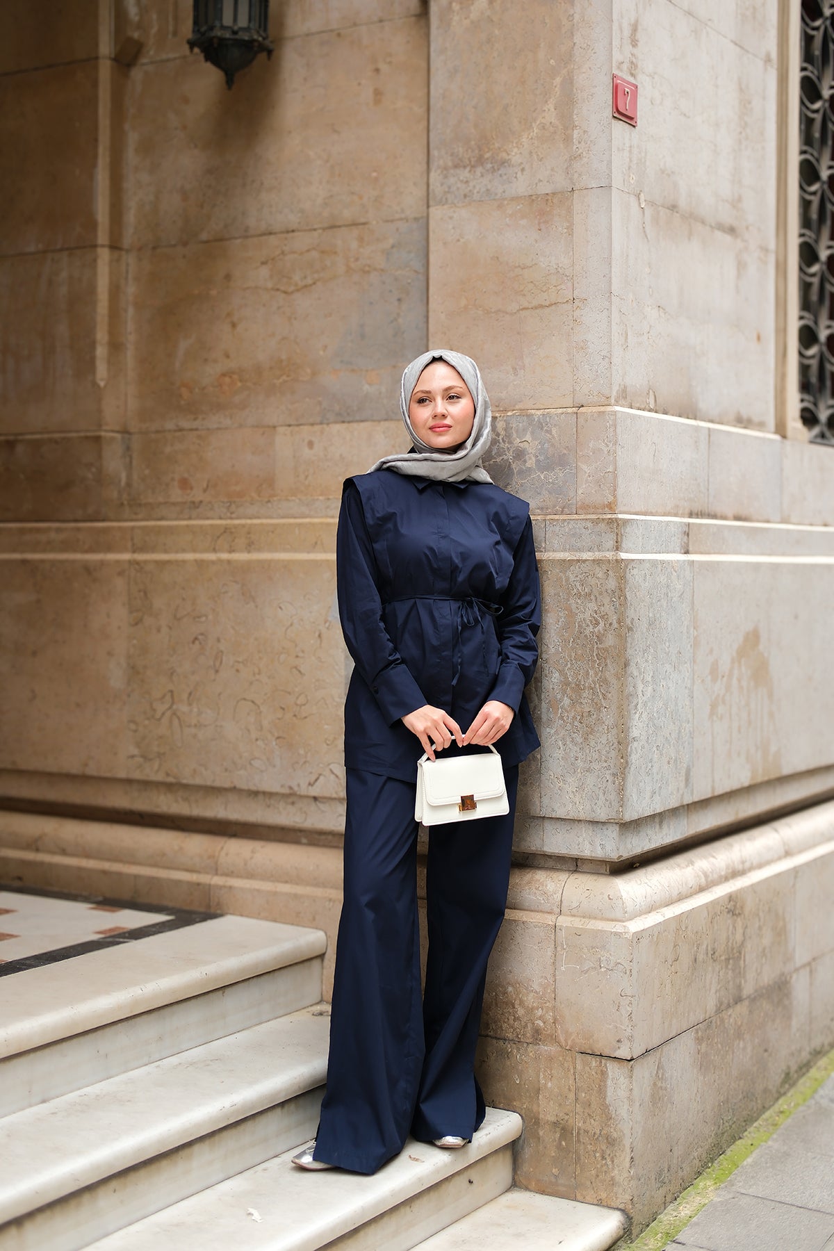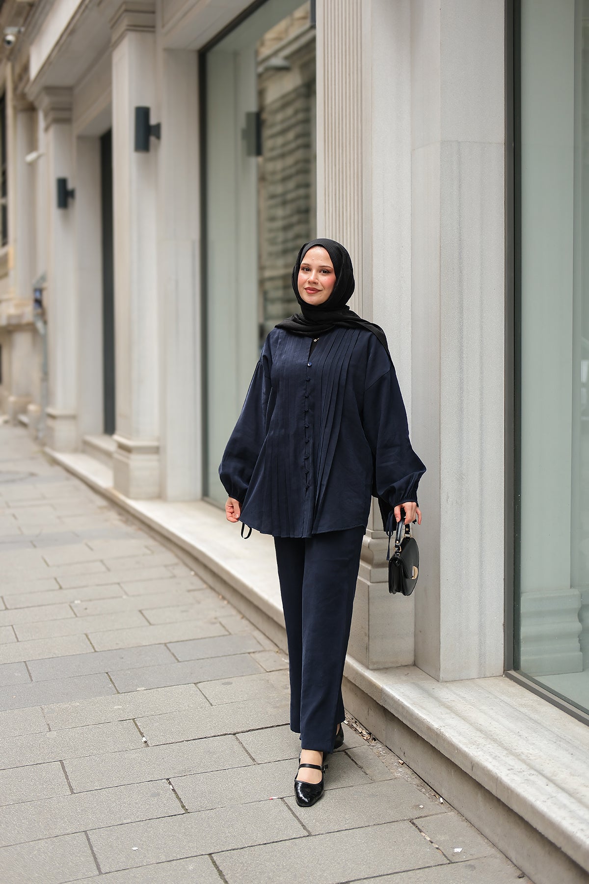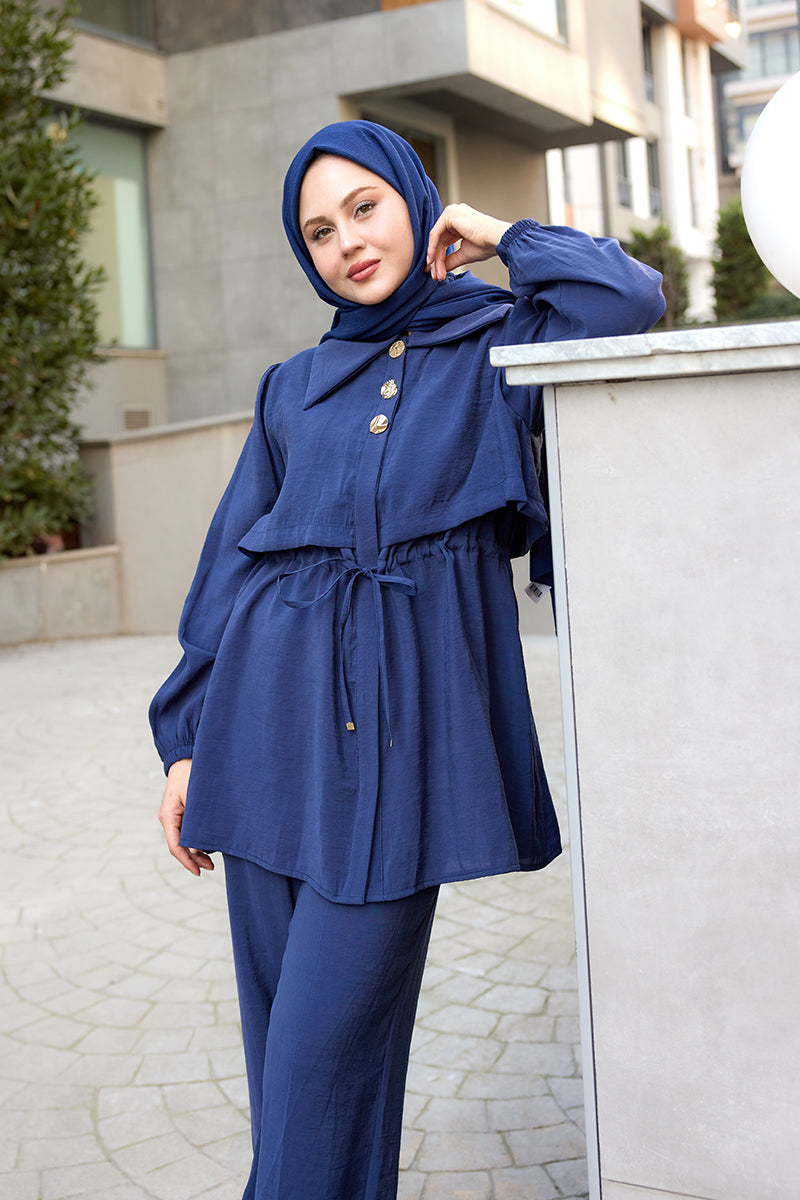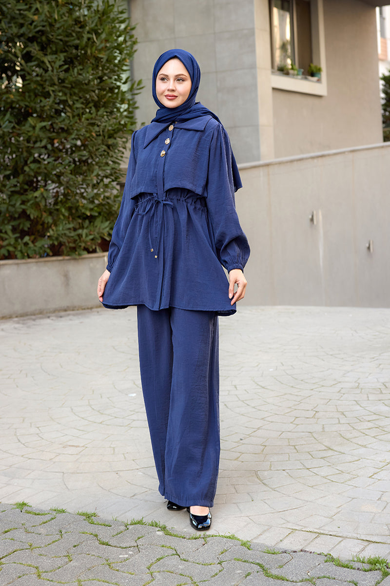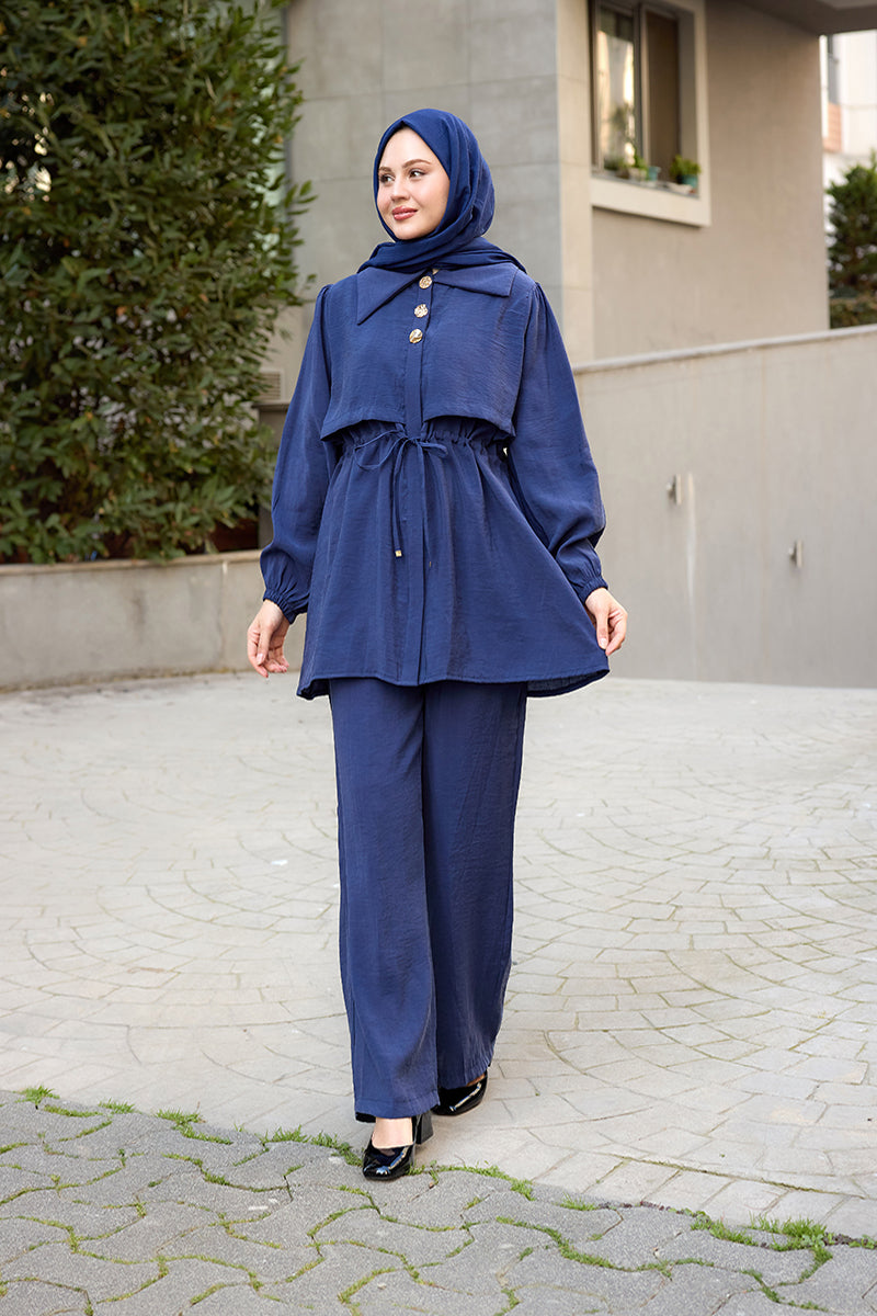 Elegant Set with External Padding Detail Navy Blue