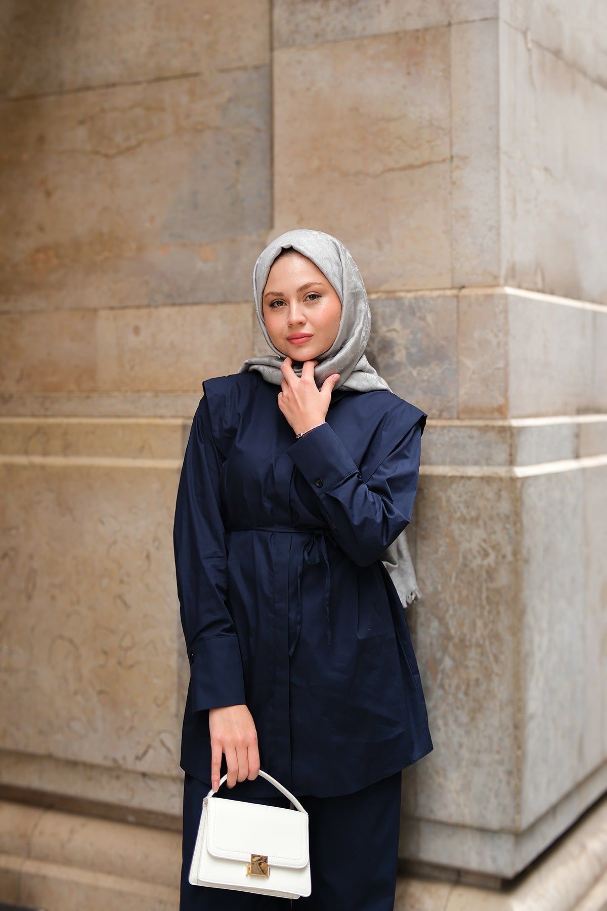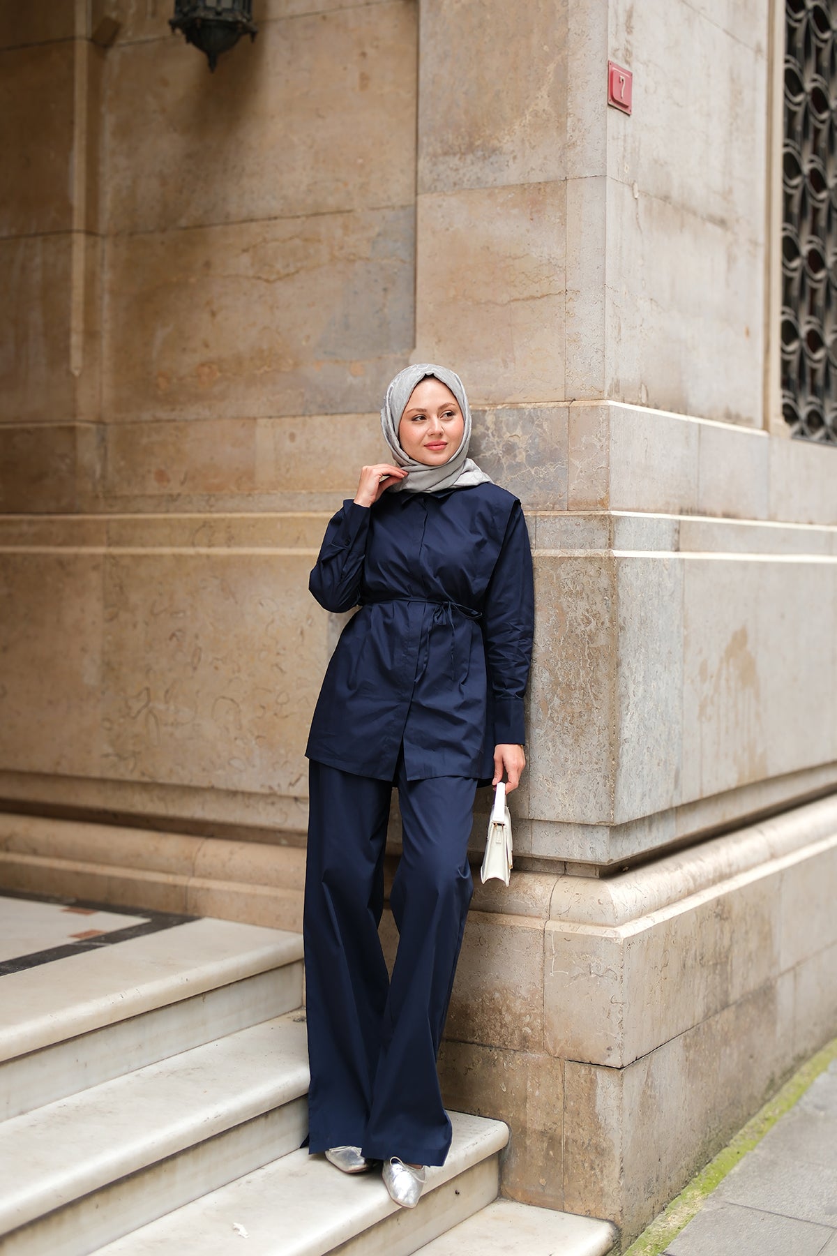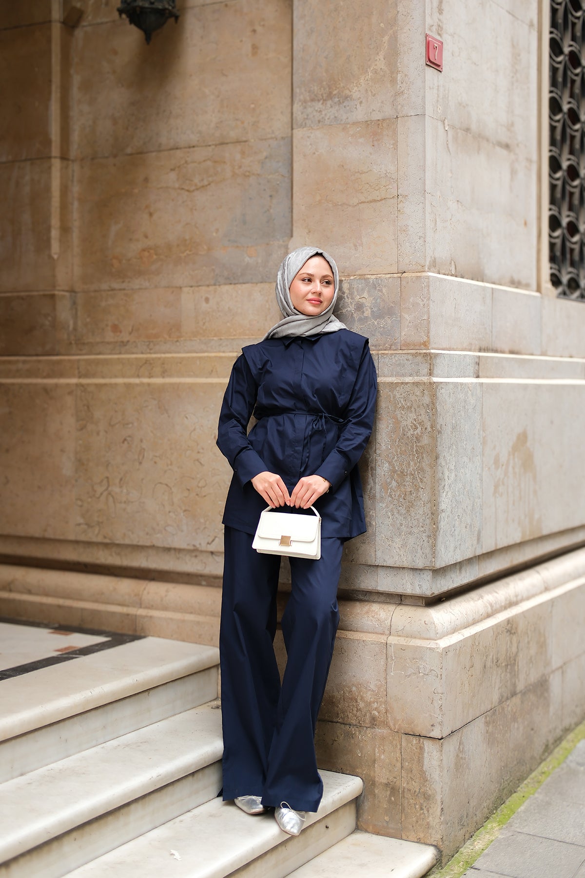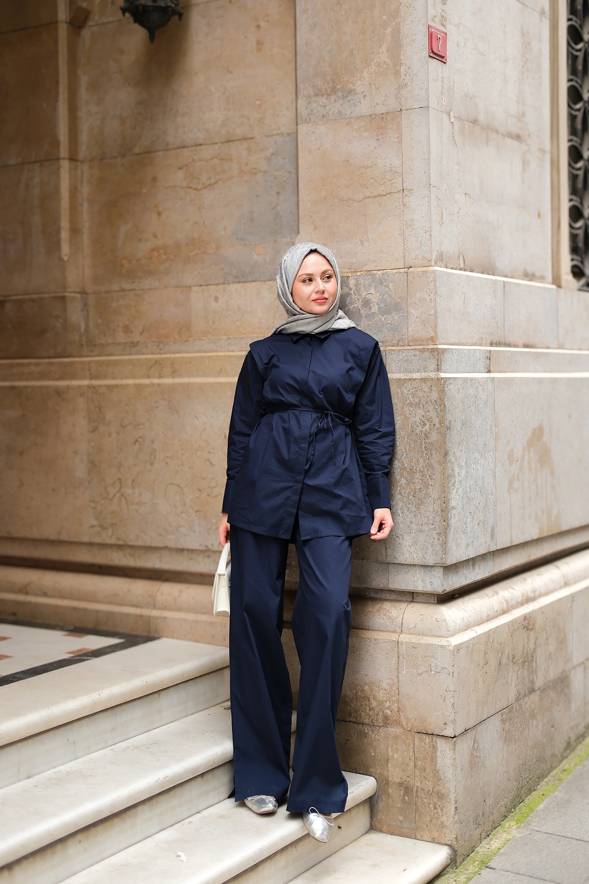 Elegant Set with External Padding Detail Navy Blue