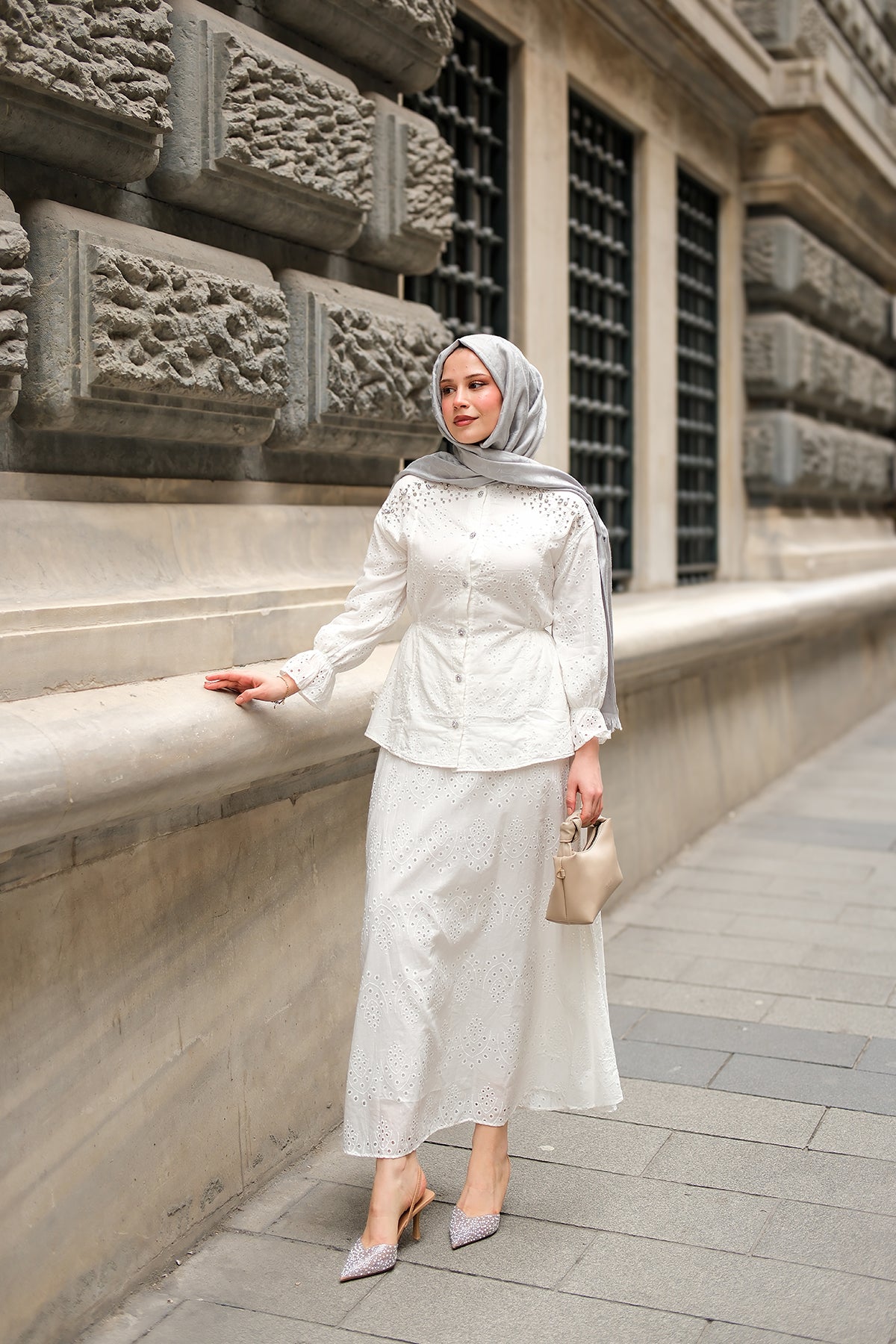 Twist Embroidered Broderie Set Cream