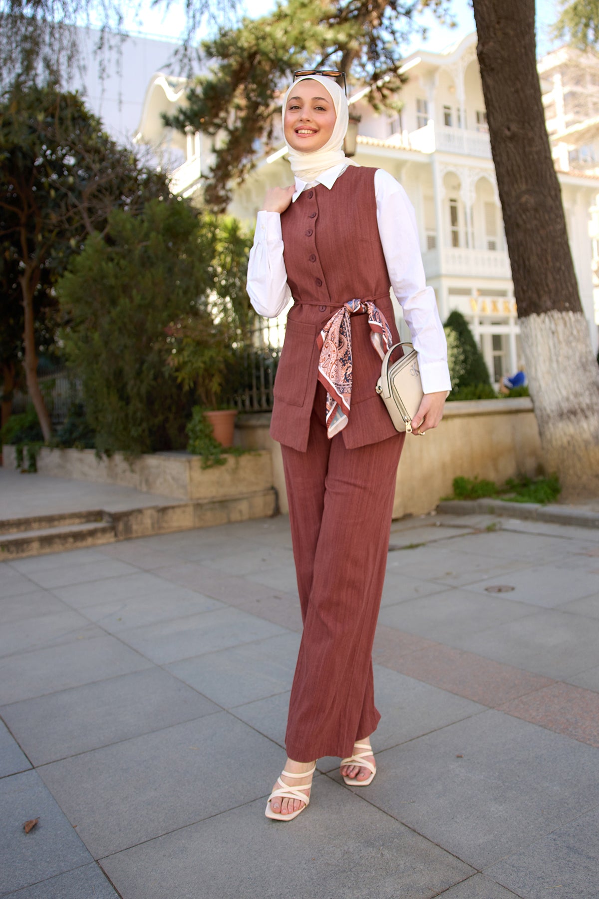 Linen Sleeveless Two-Piece Set Brown