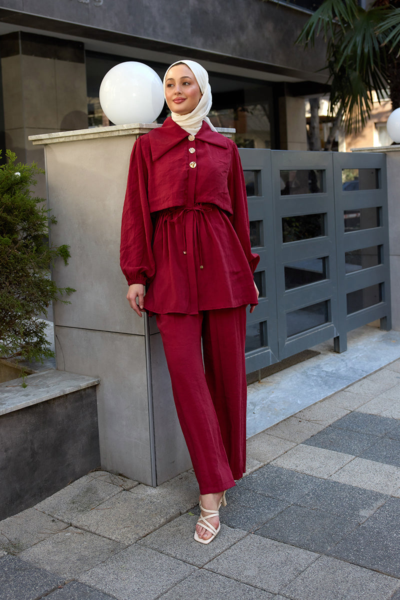 Outer-Shoulder-Pad Detail Elegant Suit - Burgundy