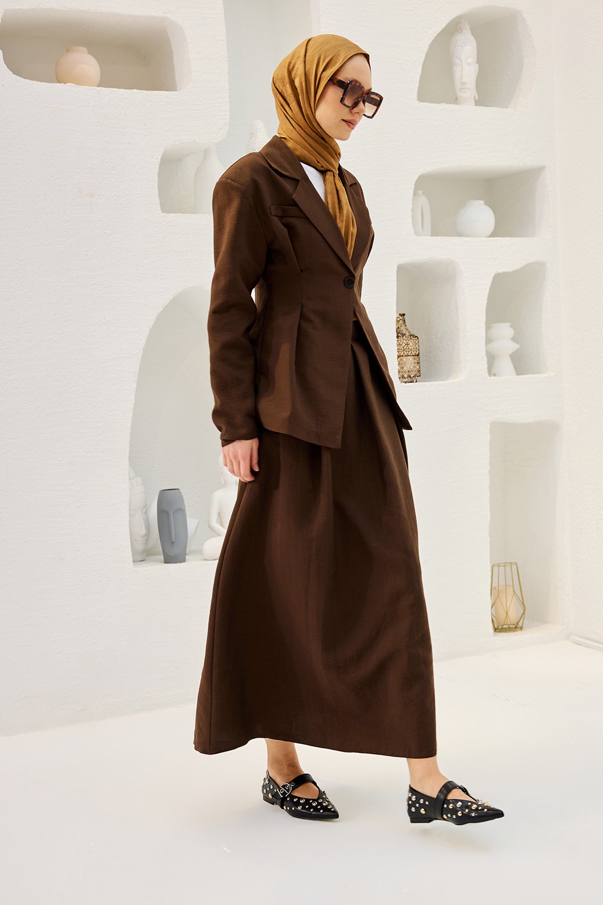 Brown Set with Hidden Pockets and Front Pleat Detail