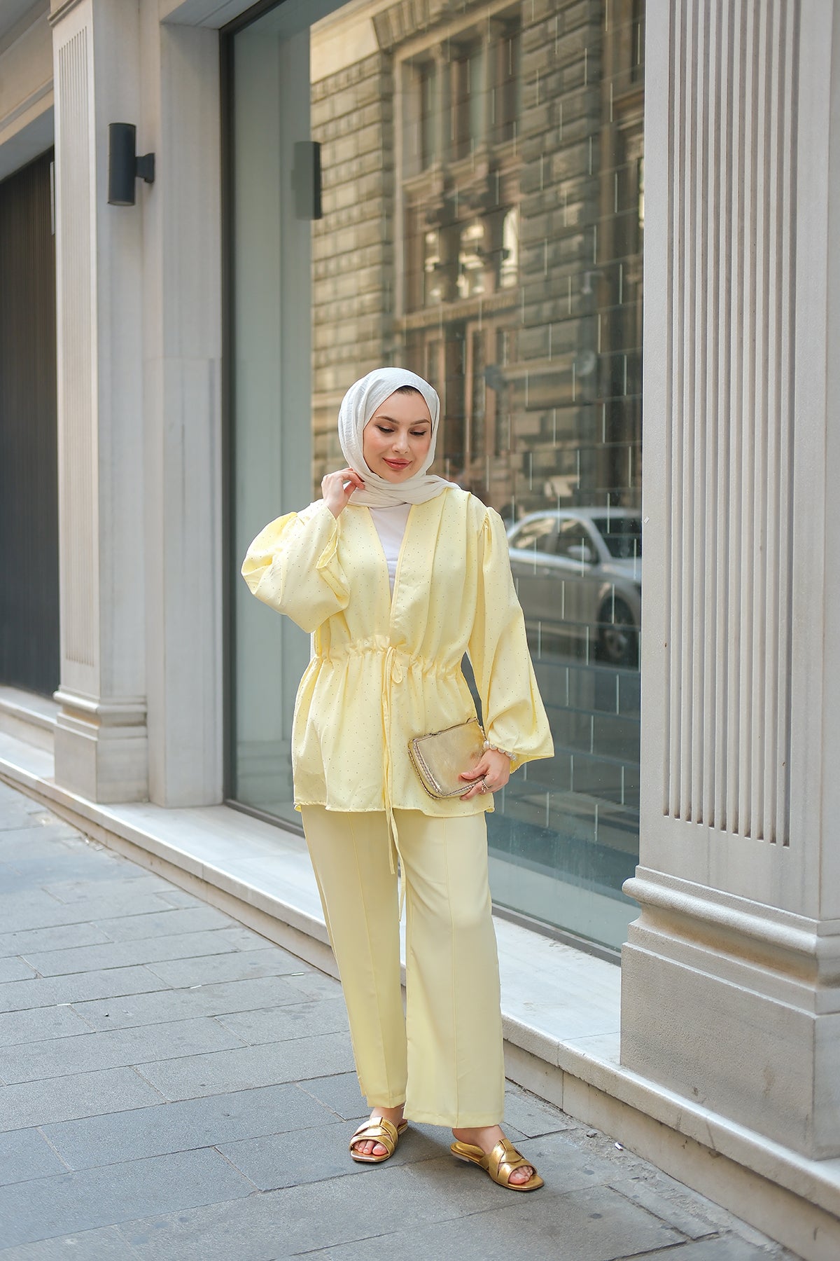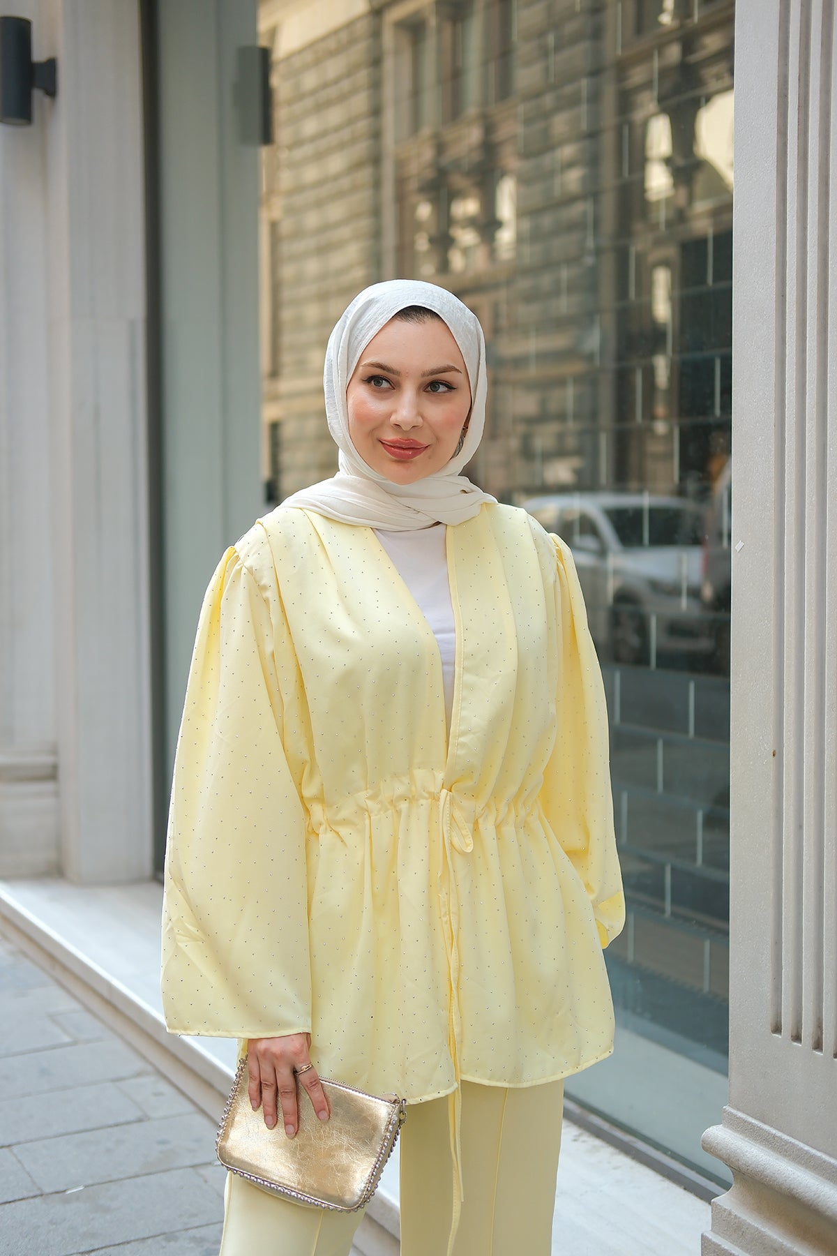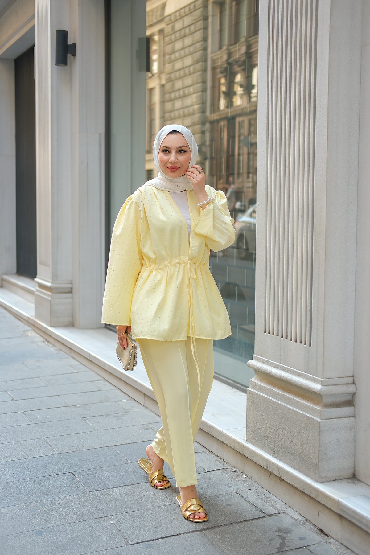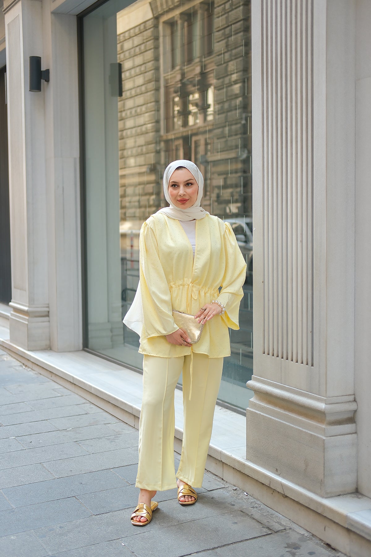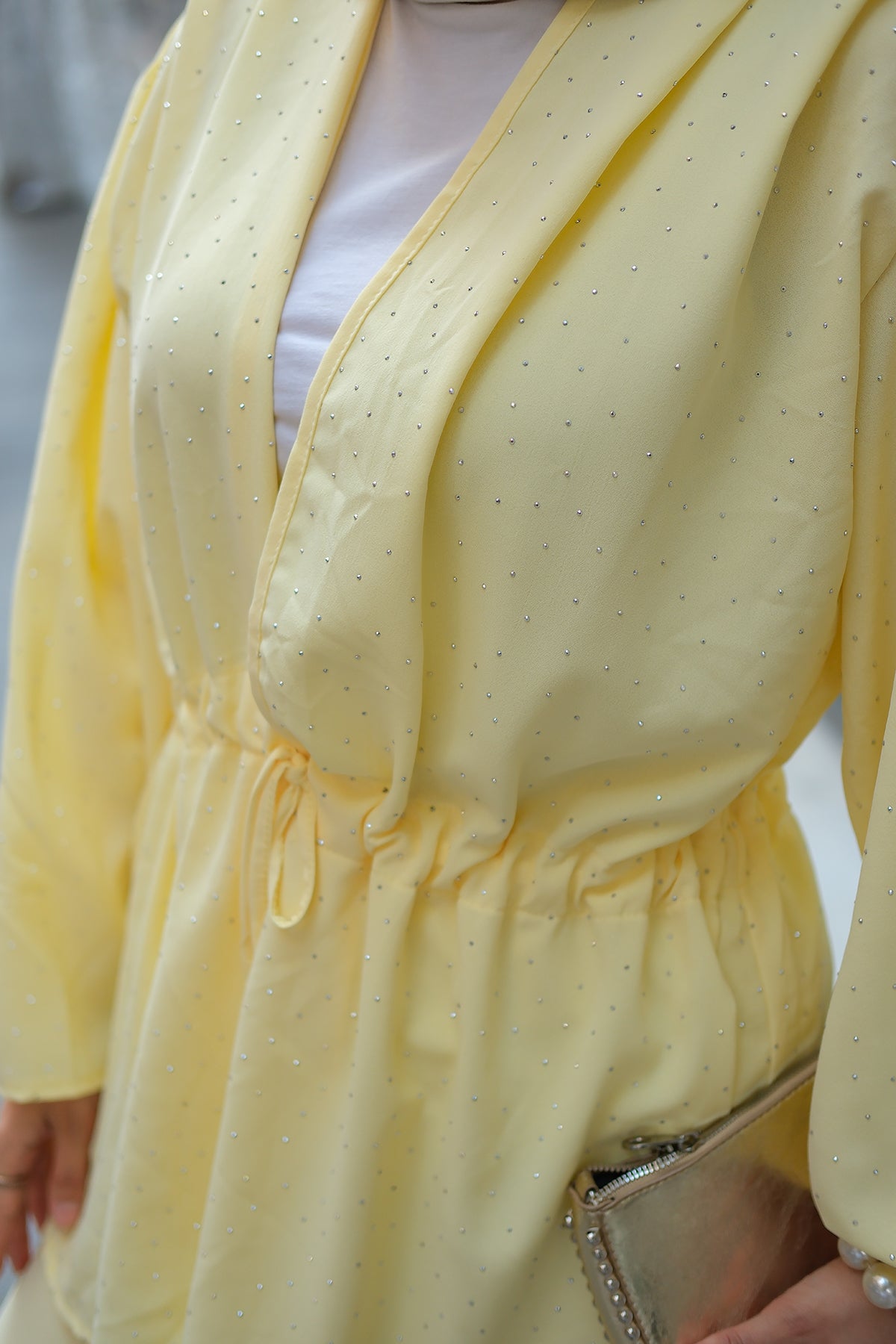 Front-Tie Beaded Two-Piece Set – Yellow