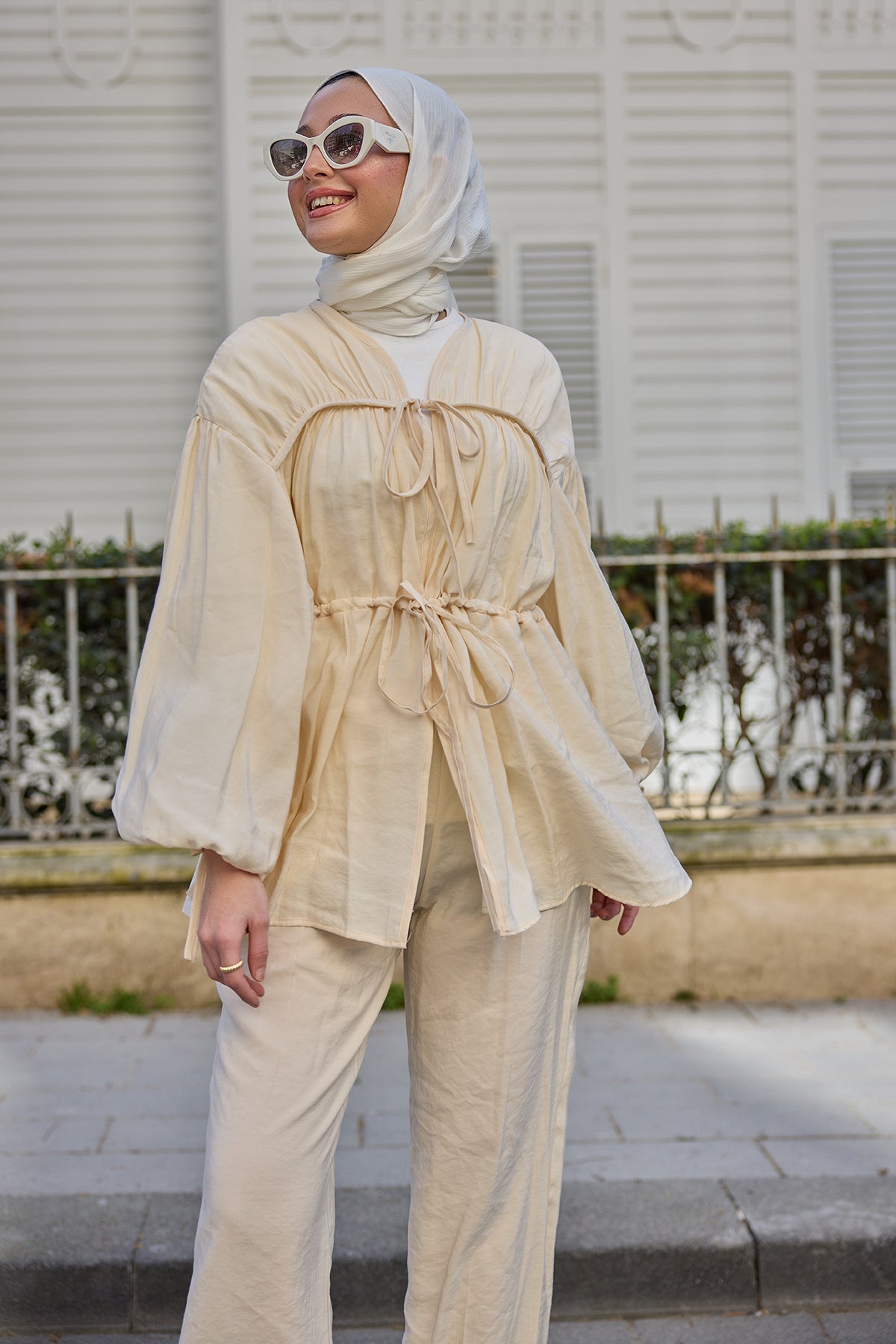 Gathered Cupra Tencel Suit Cream