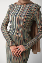 Glitter Stripe Pattern Skirted Set – Salmon