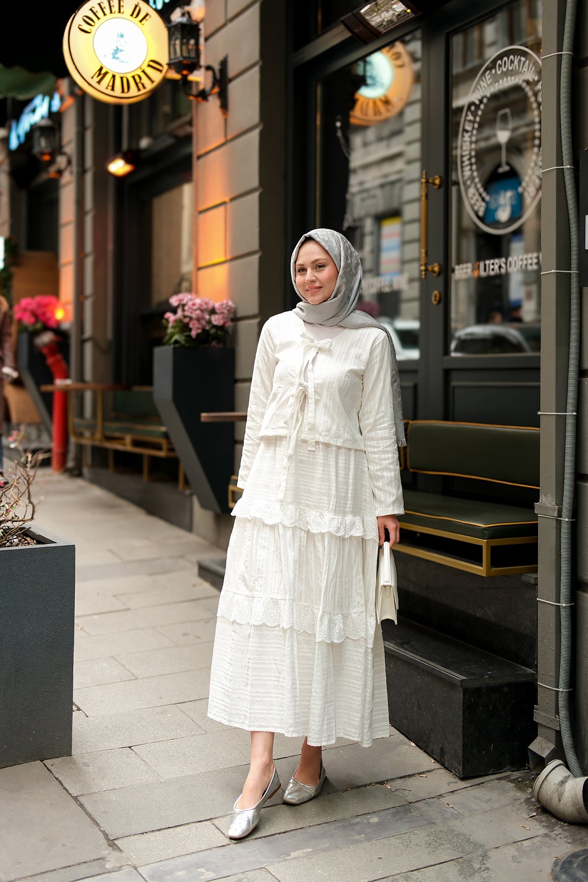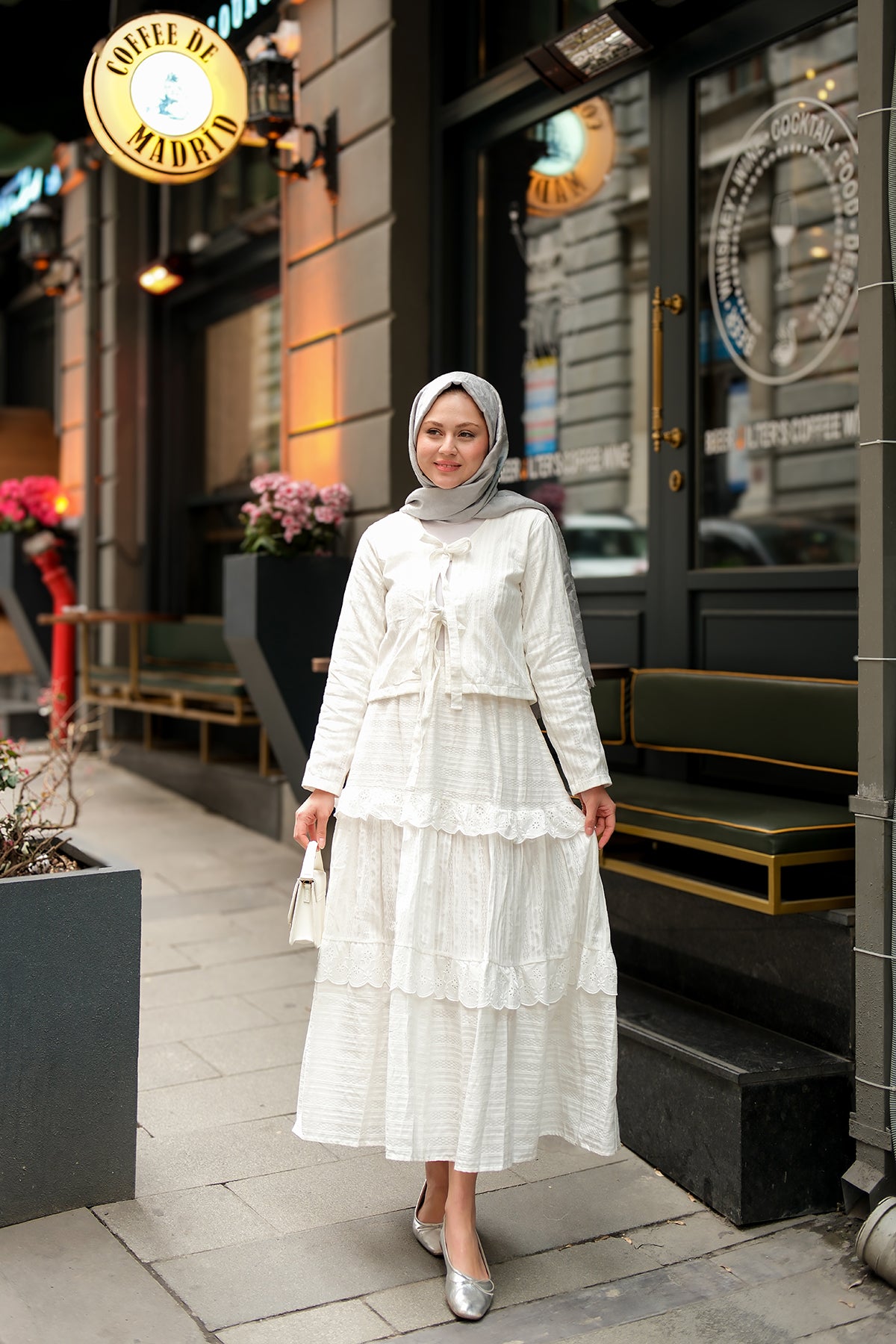 Ribbon Detail Front Two-Piece Set White