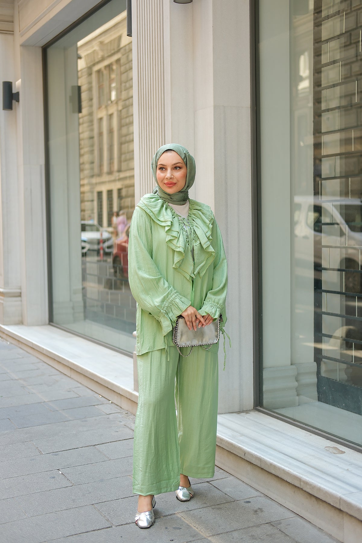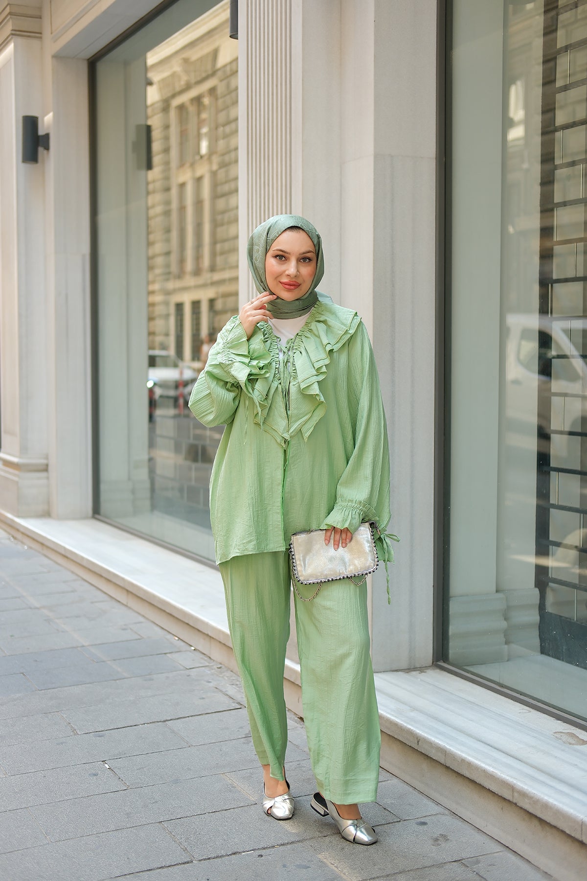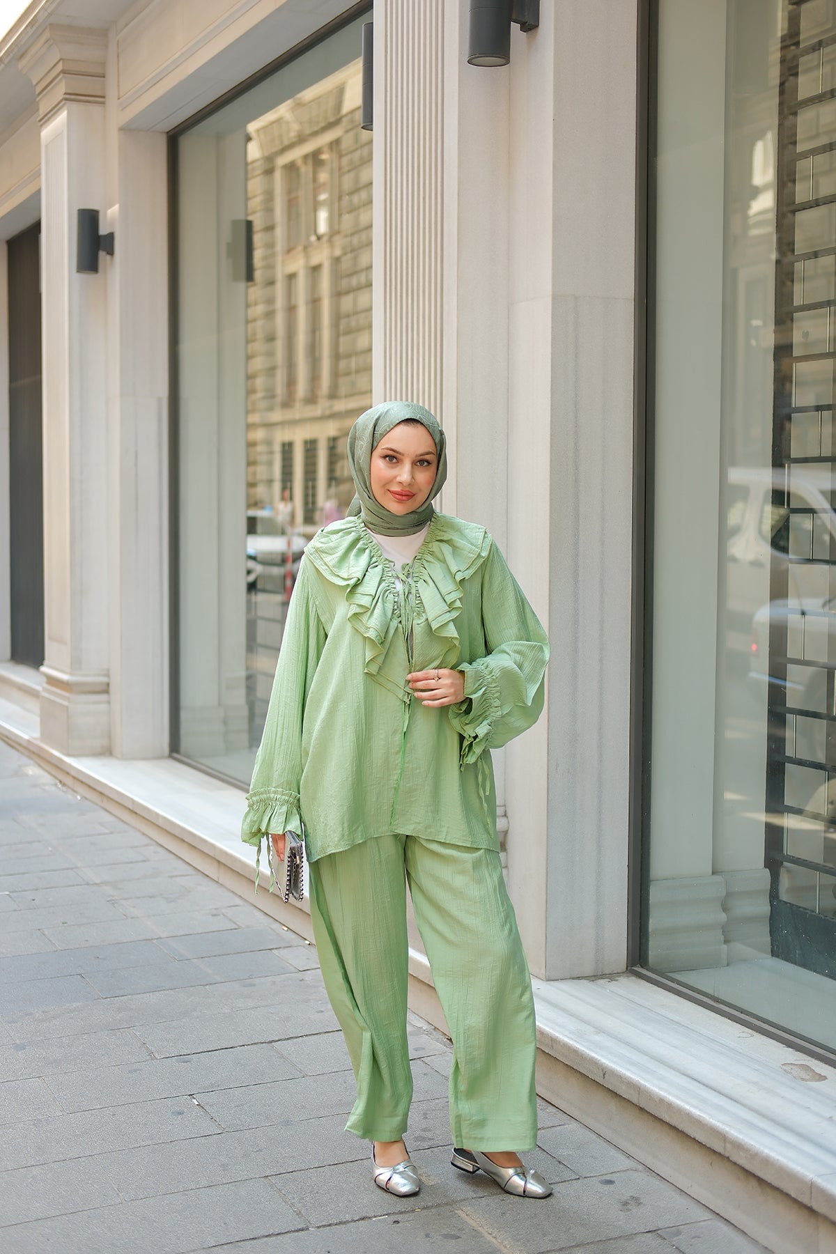 Ruffled Detail Two-Piece Set in Green