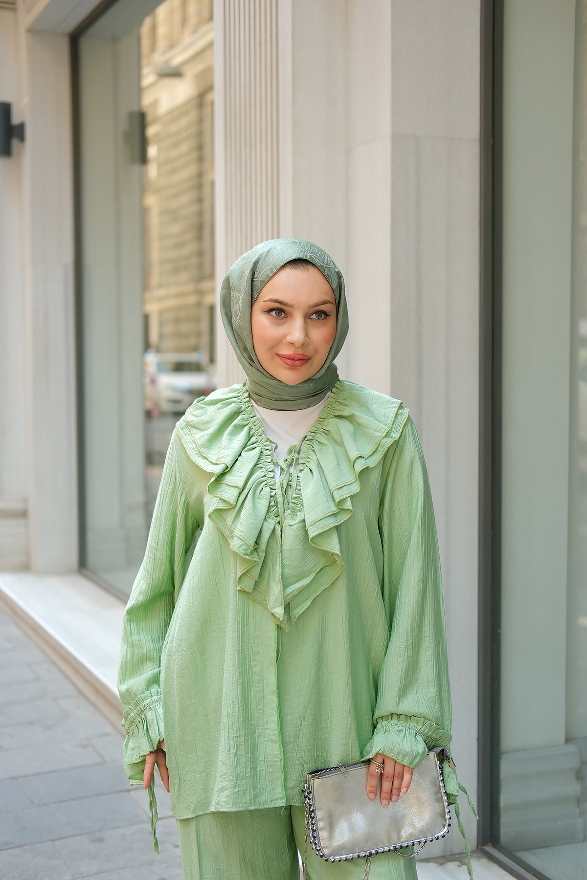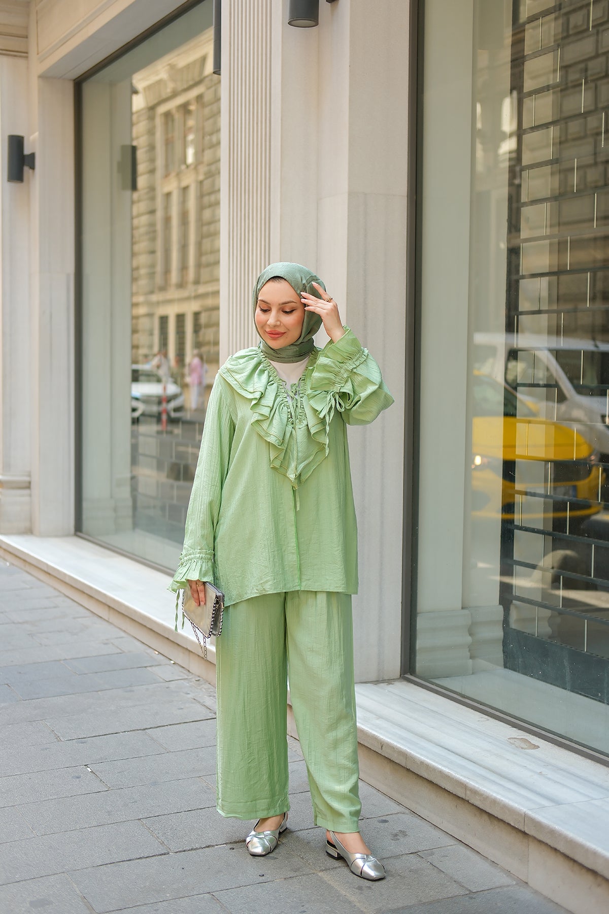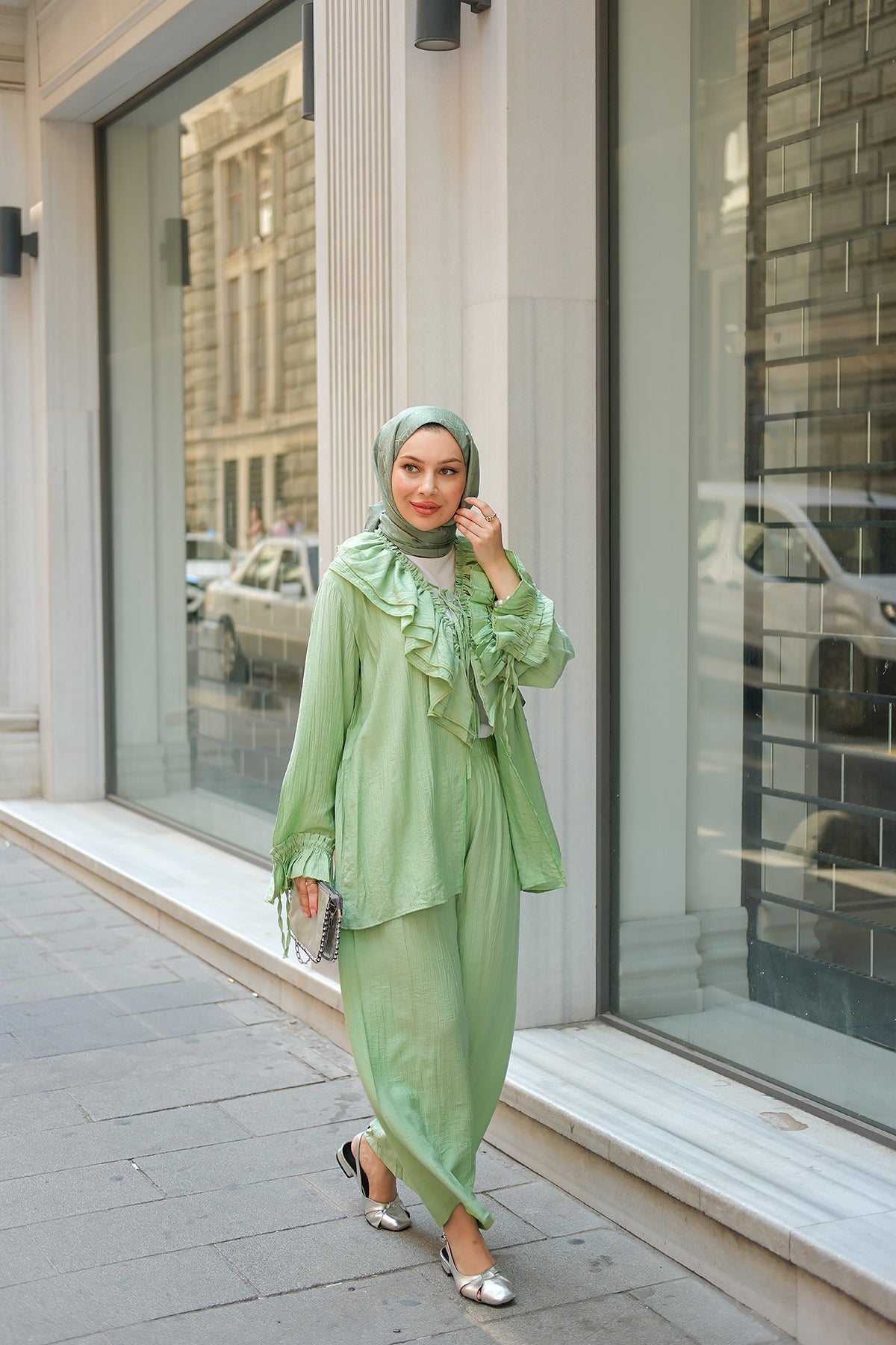 Ruffled Detail Two-Piece Set in Green