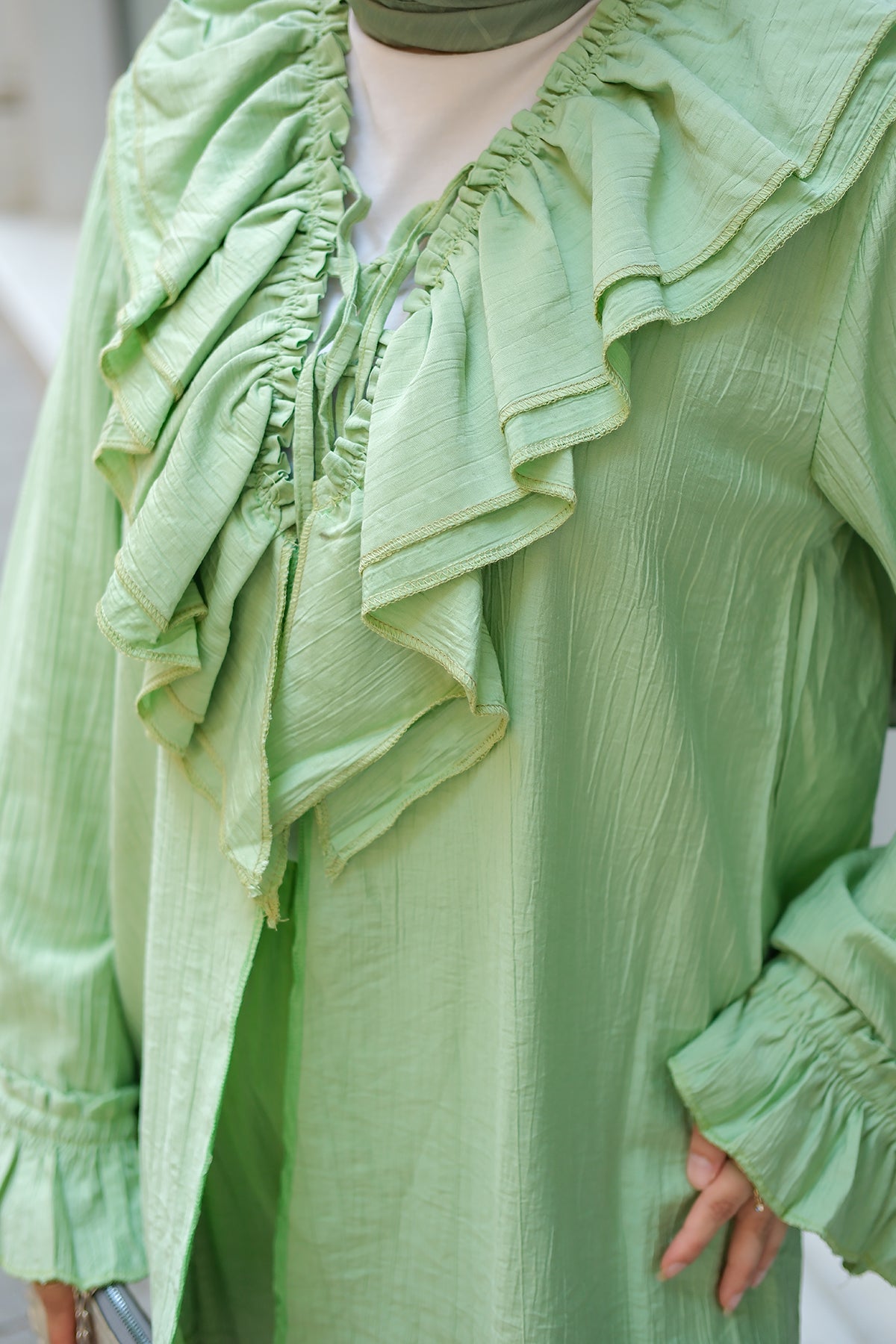 Fırfırlı V Yaka
