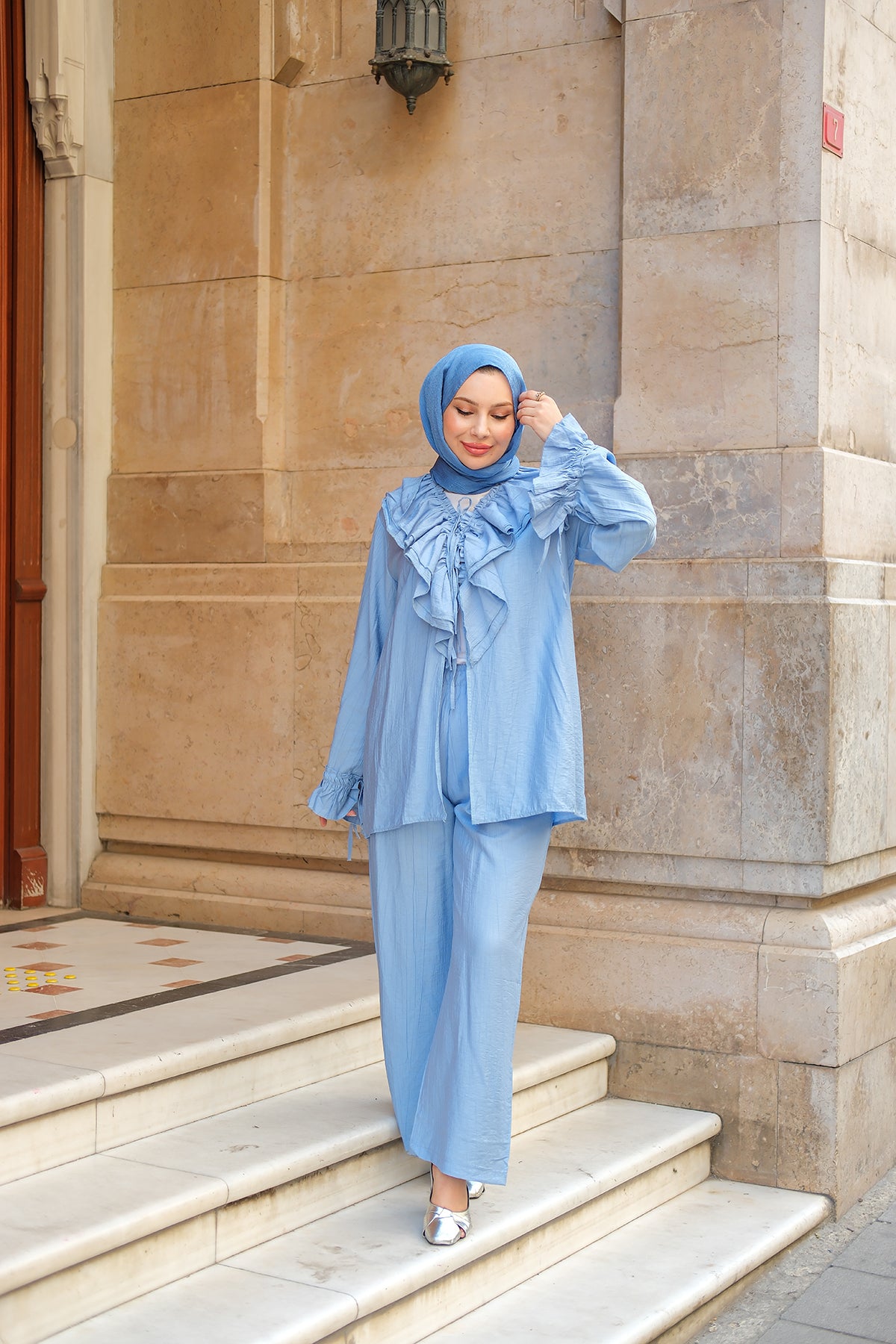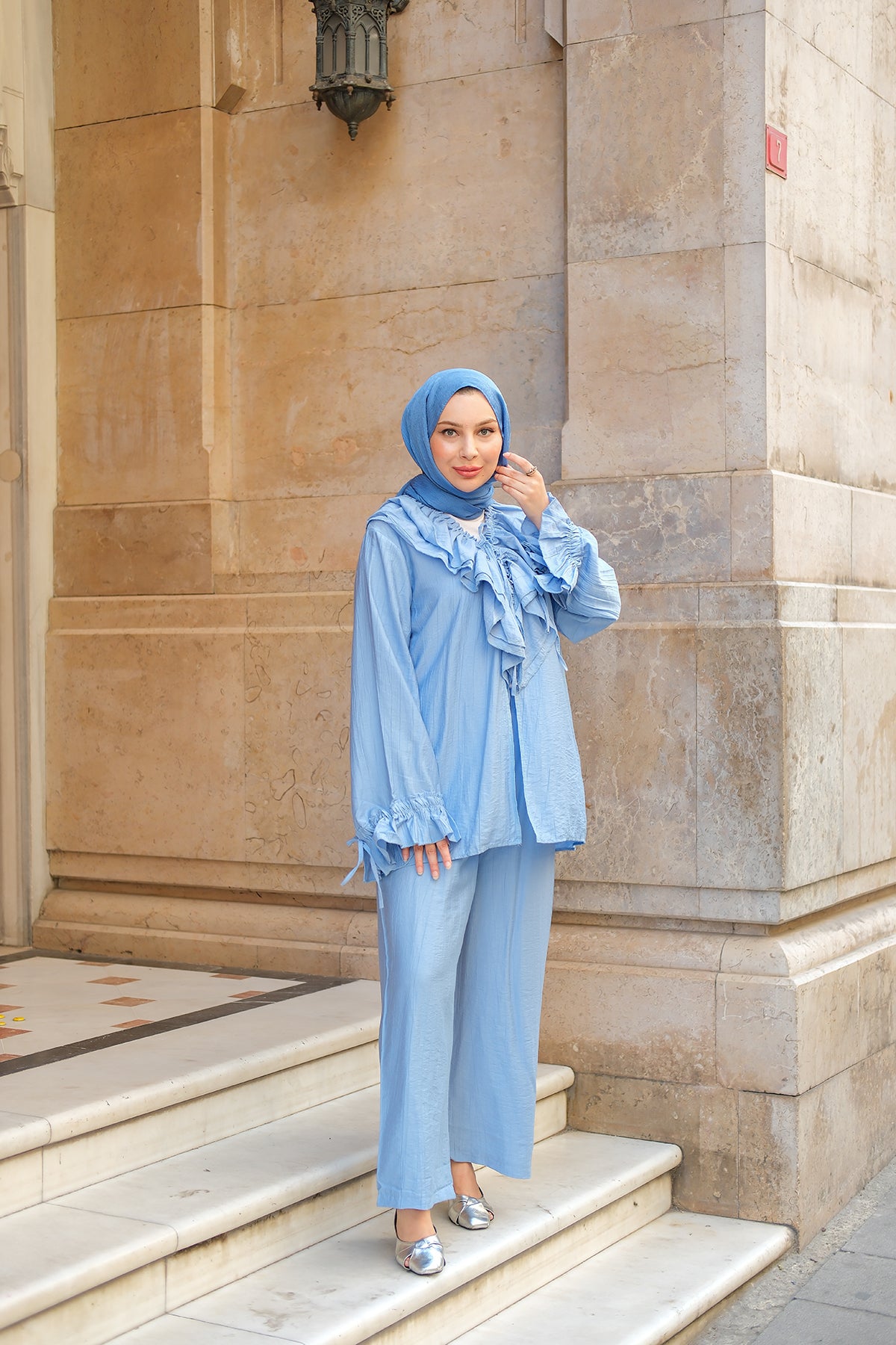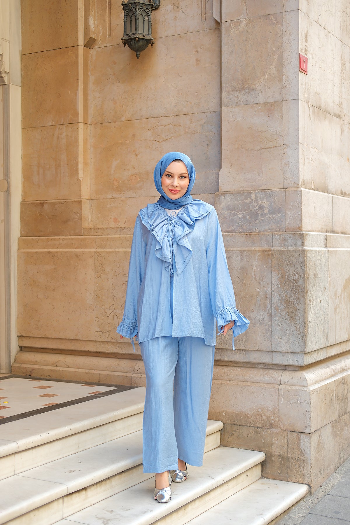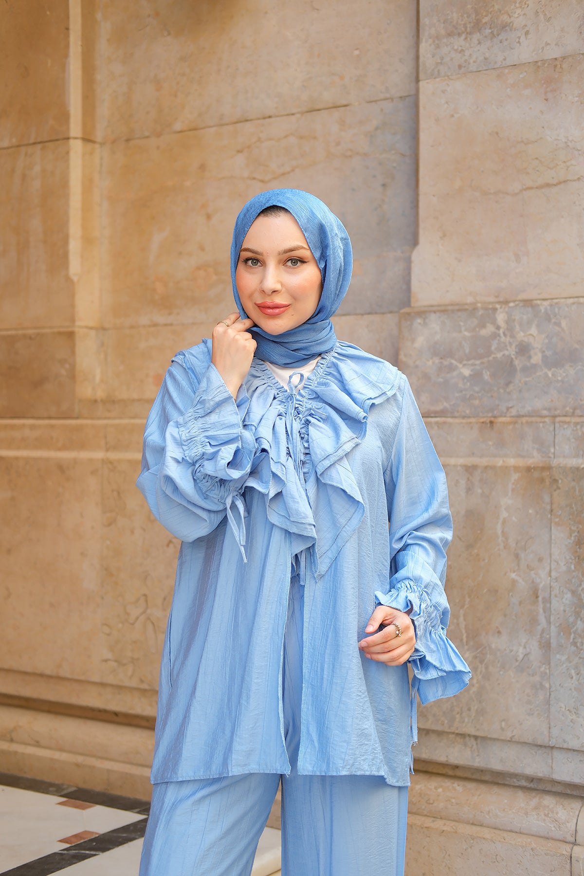 Ruffled Detail Two-Piece Set in Light Blue