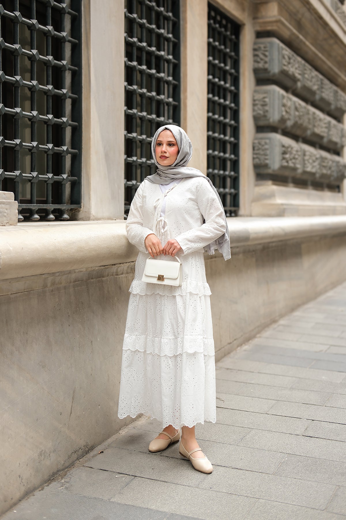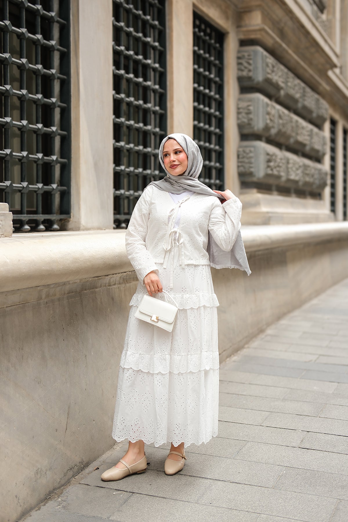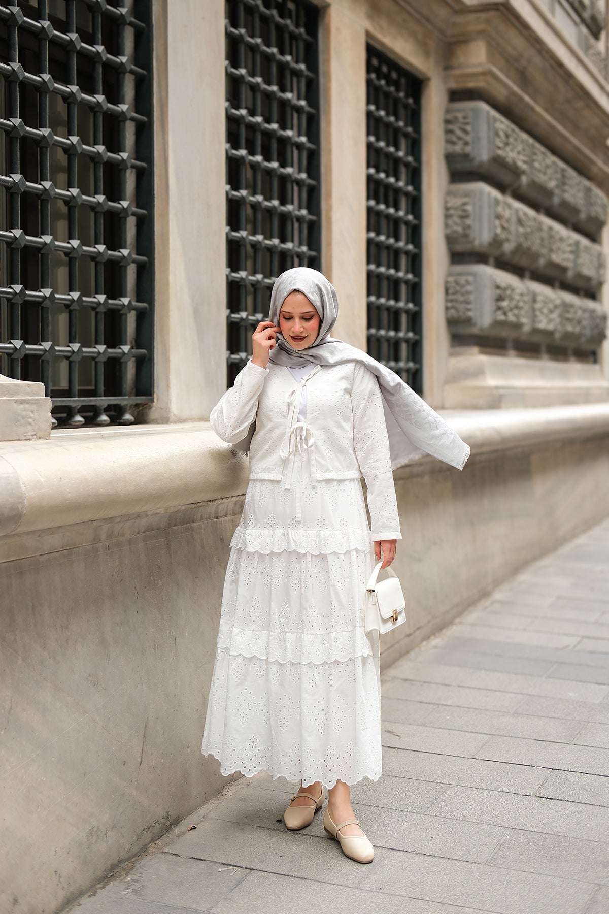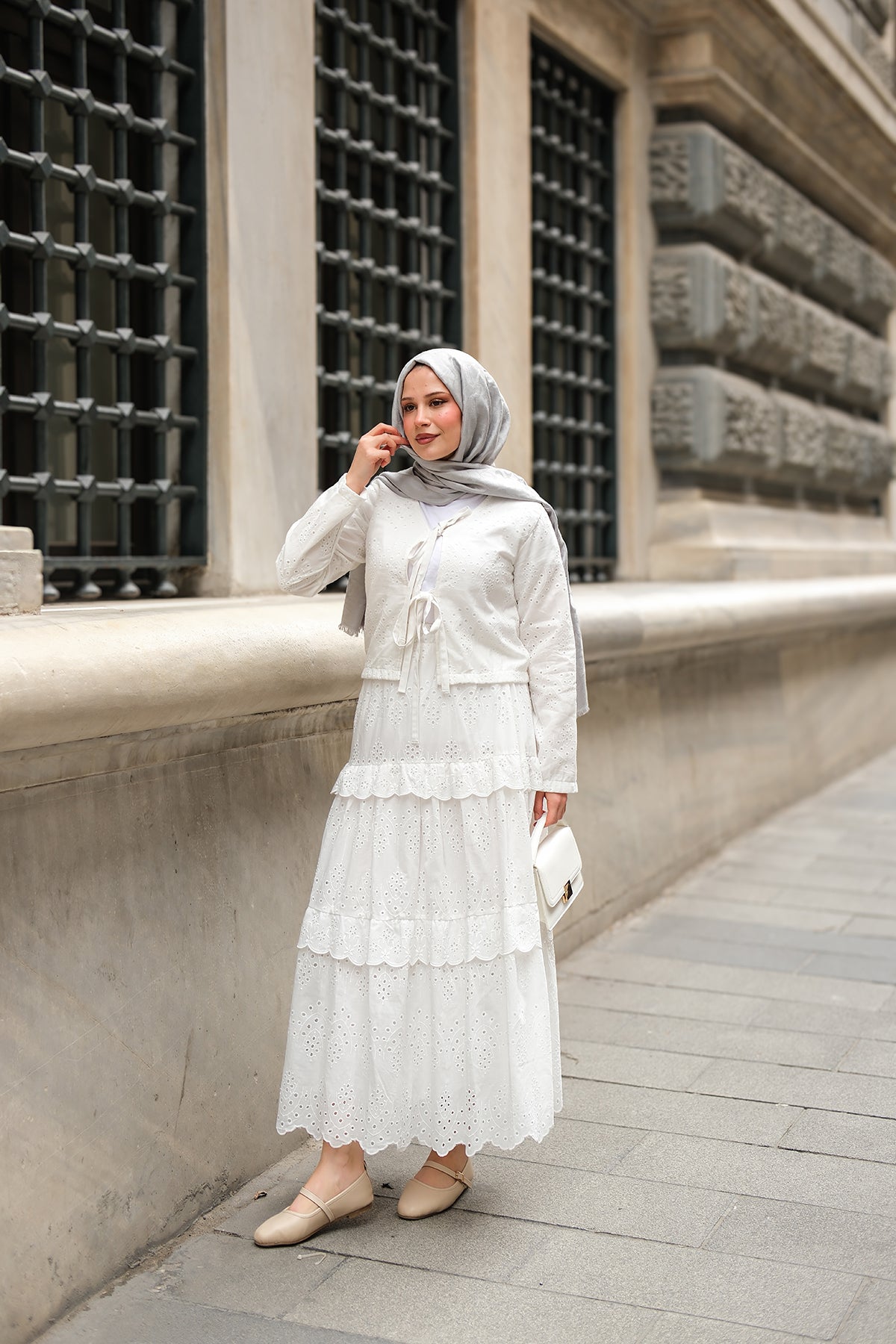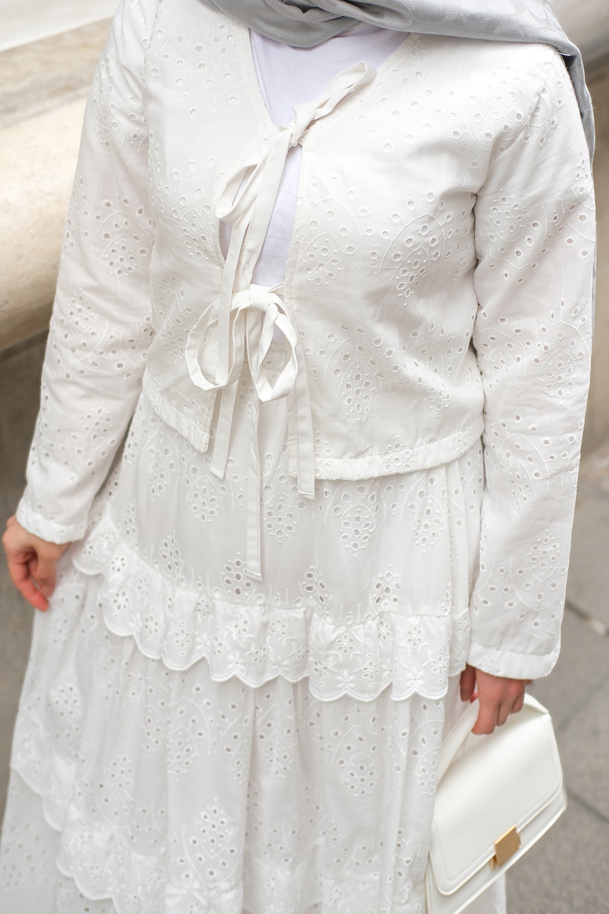 Set with Flounced Hem White