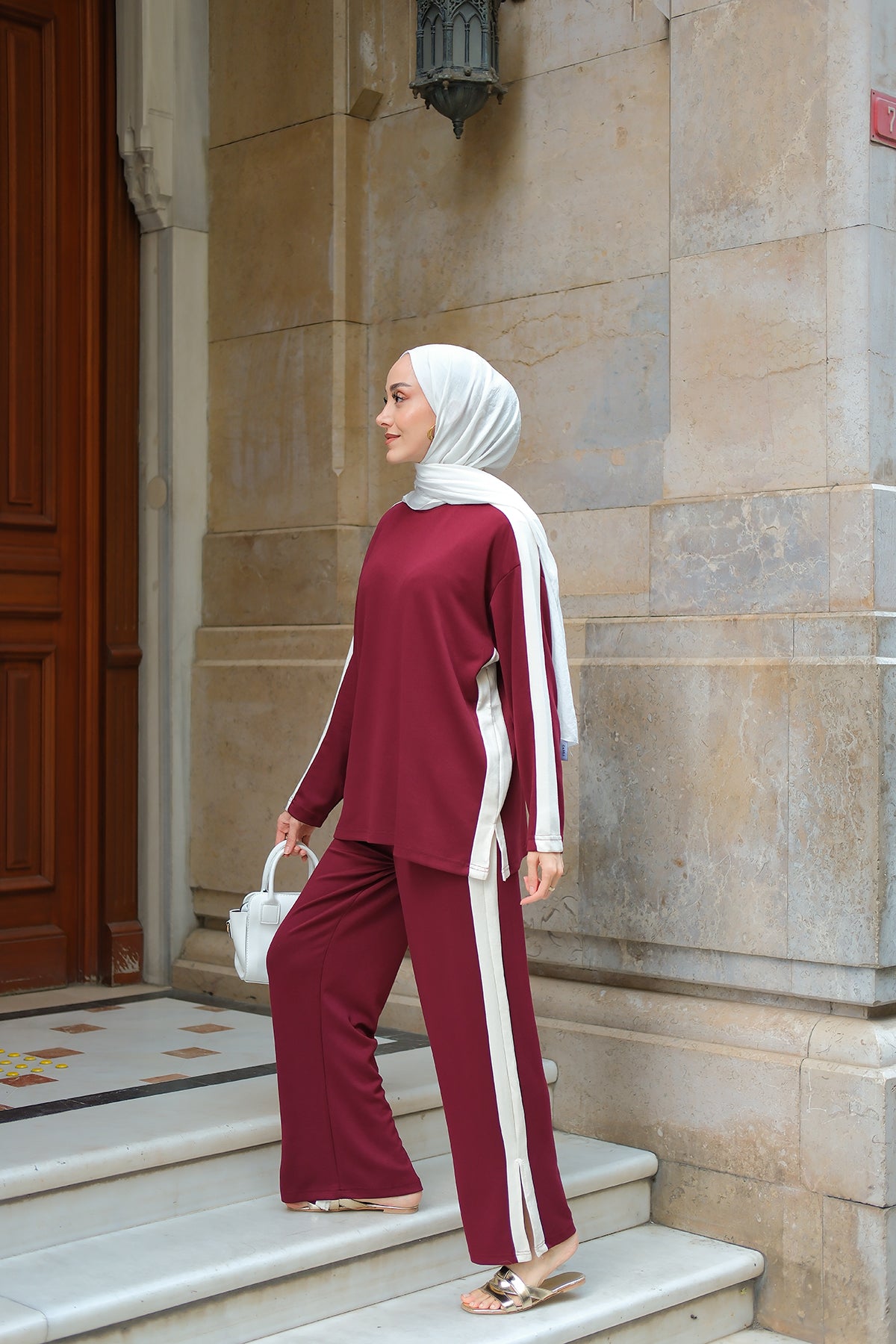 Side Stripe Detail Two-Piece Set - Burgundy