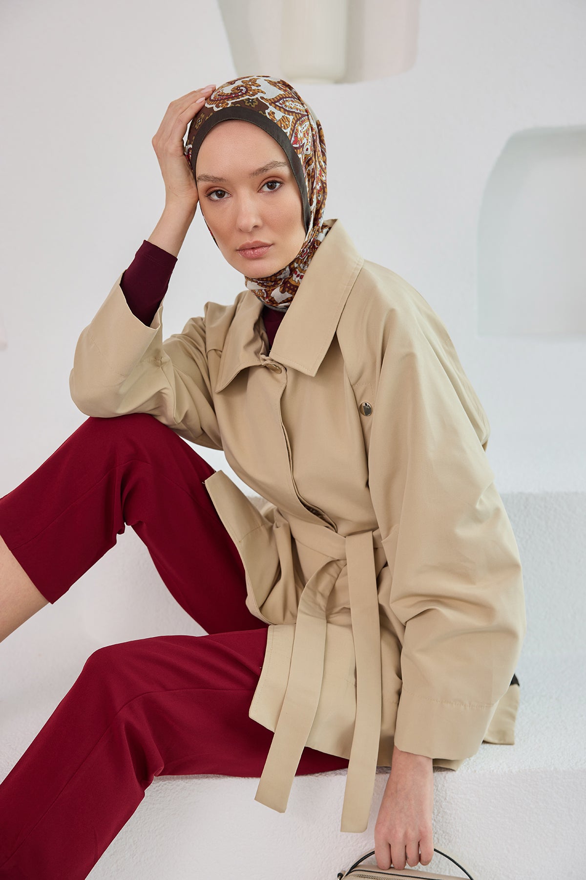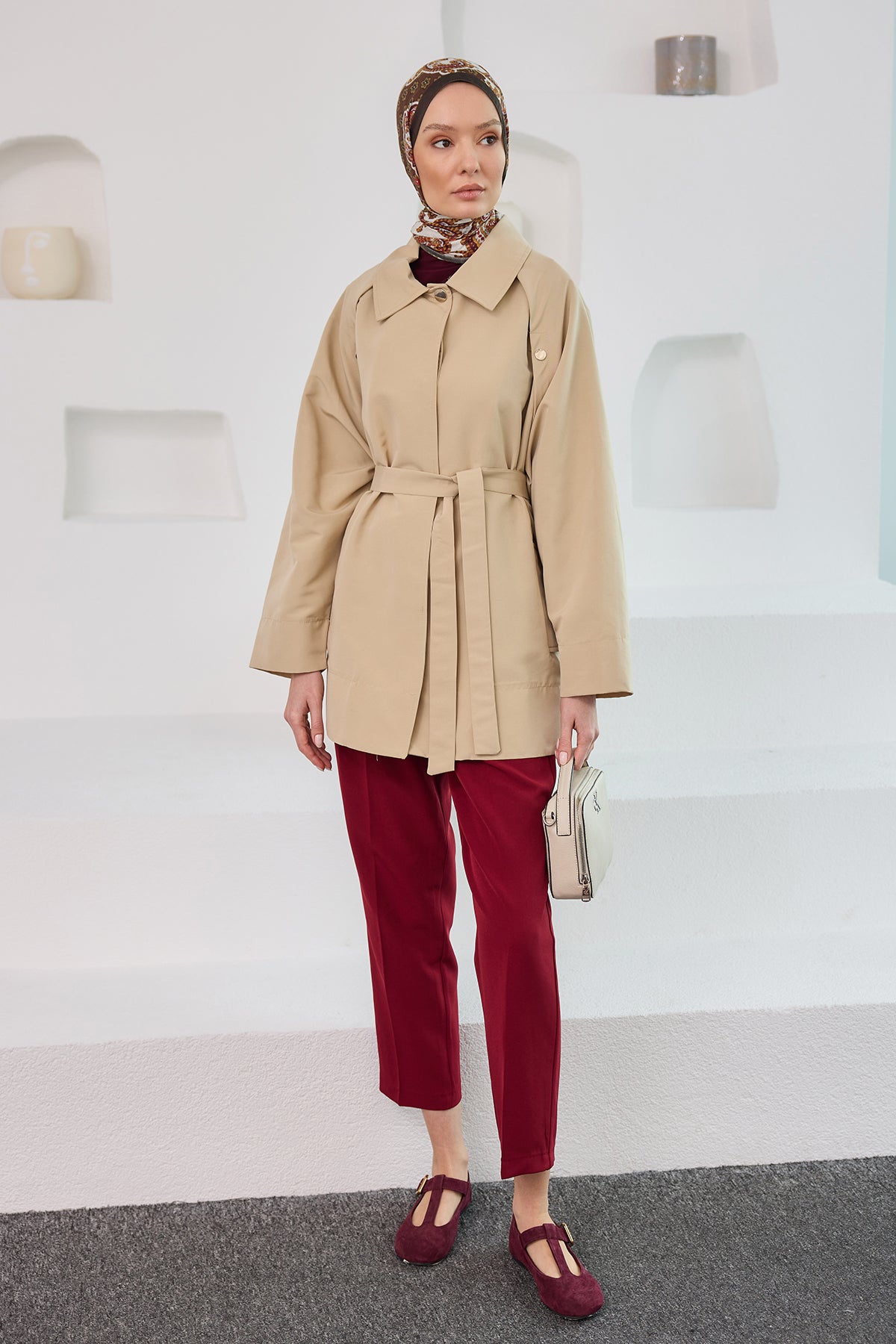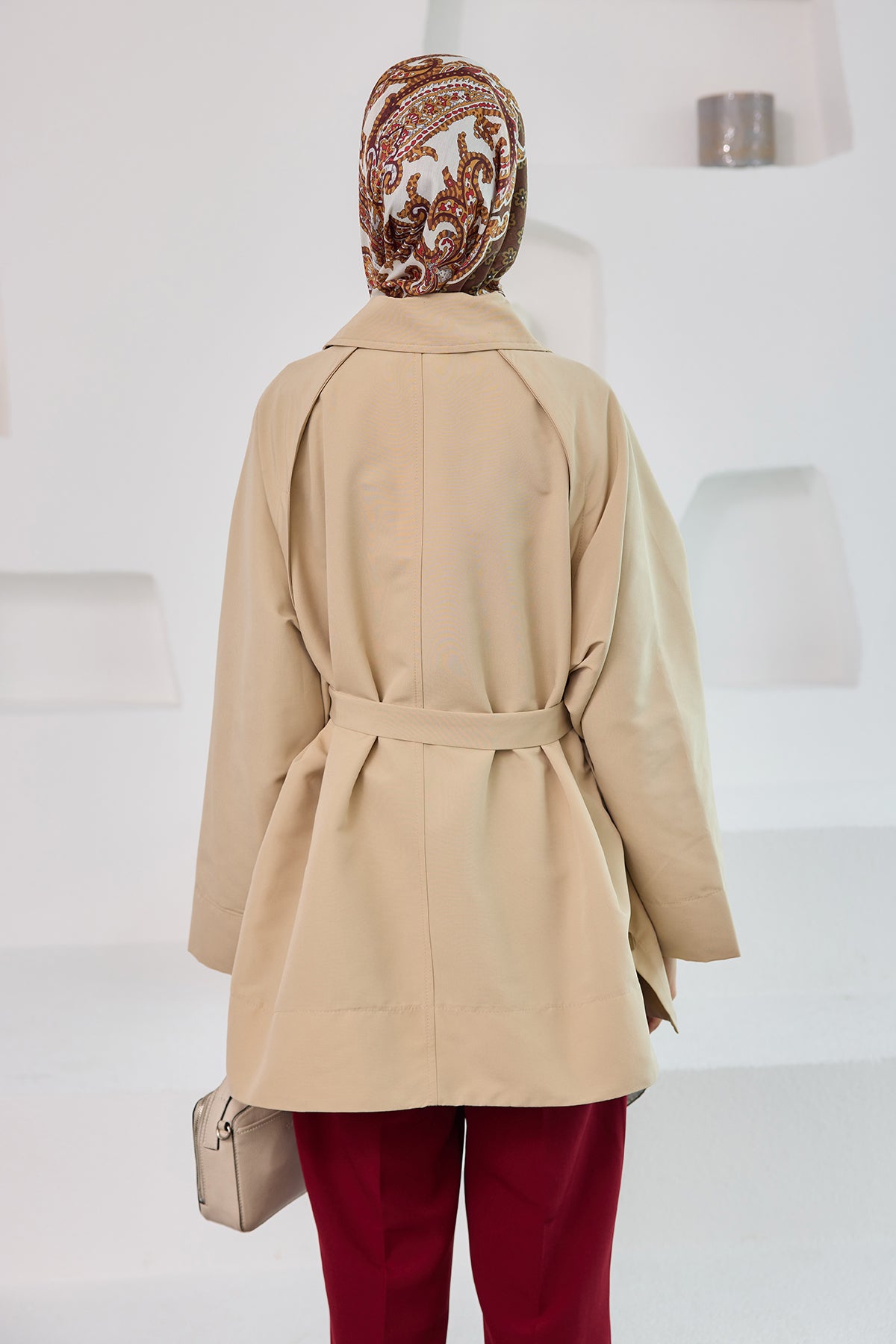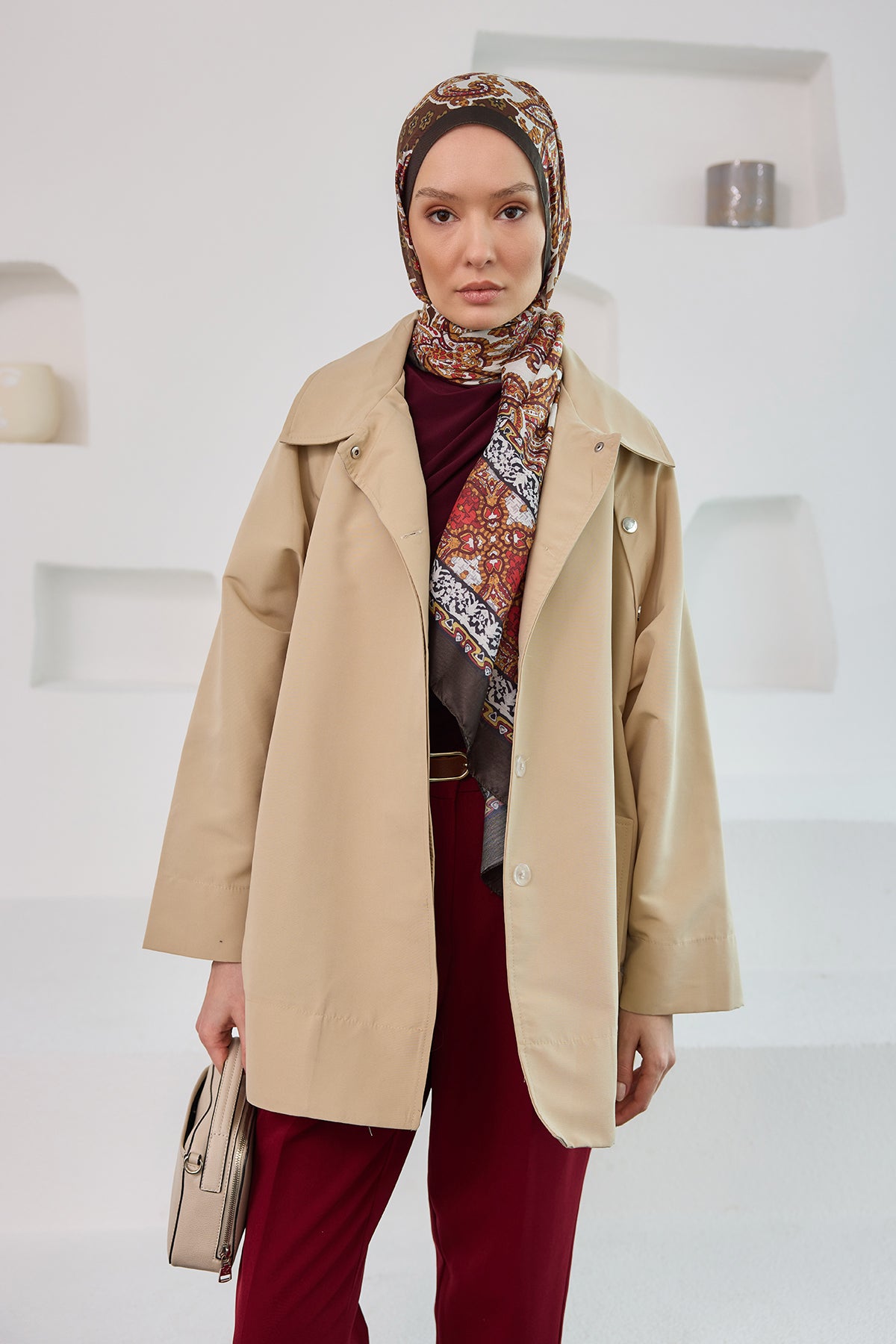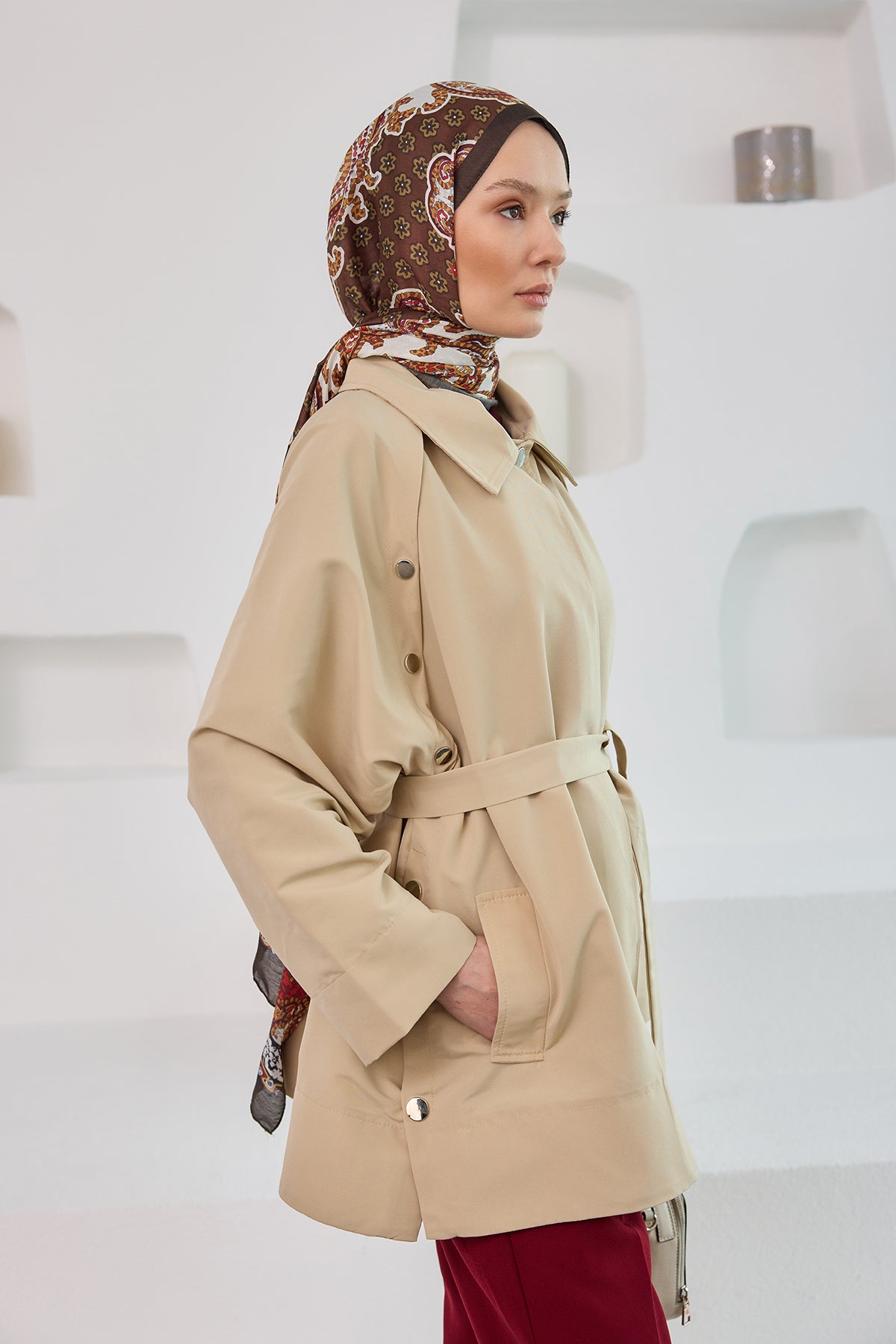 Sides Openable Snap Button Detail Short Trench Coat Cream