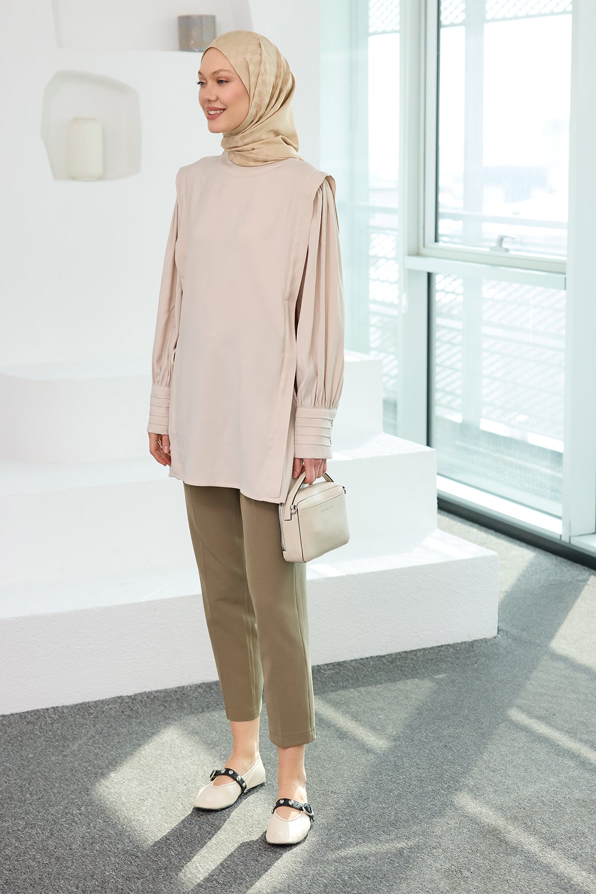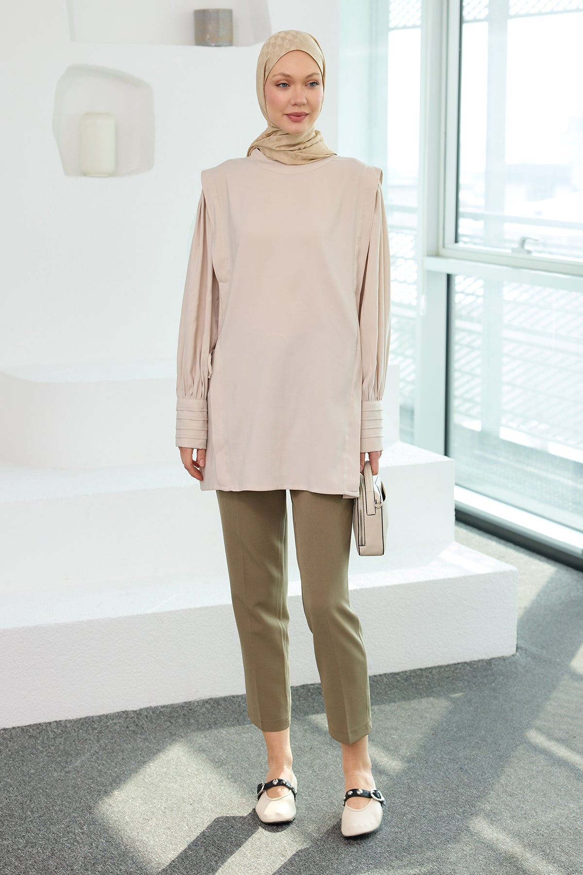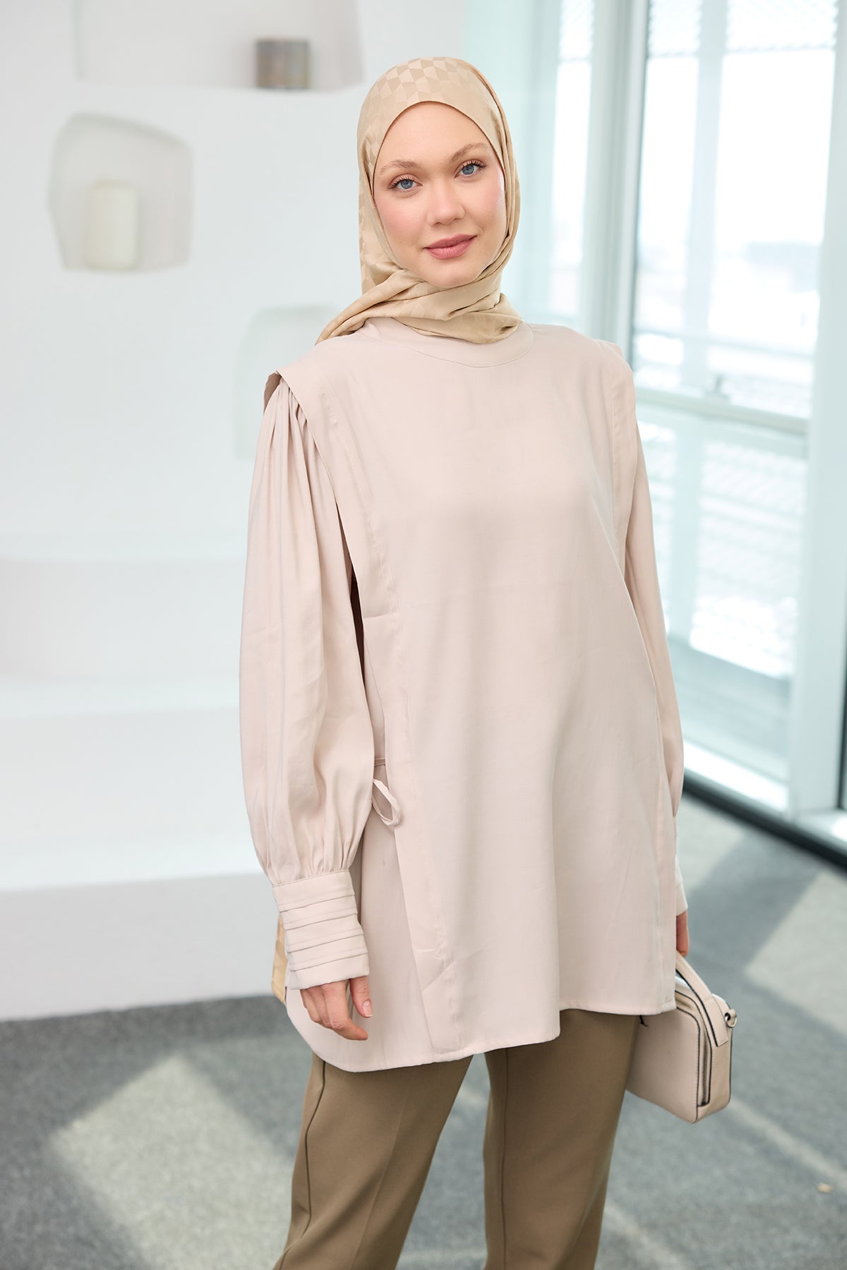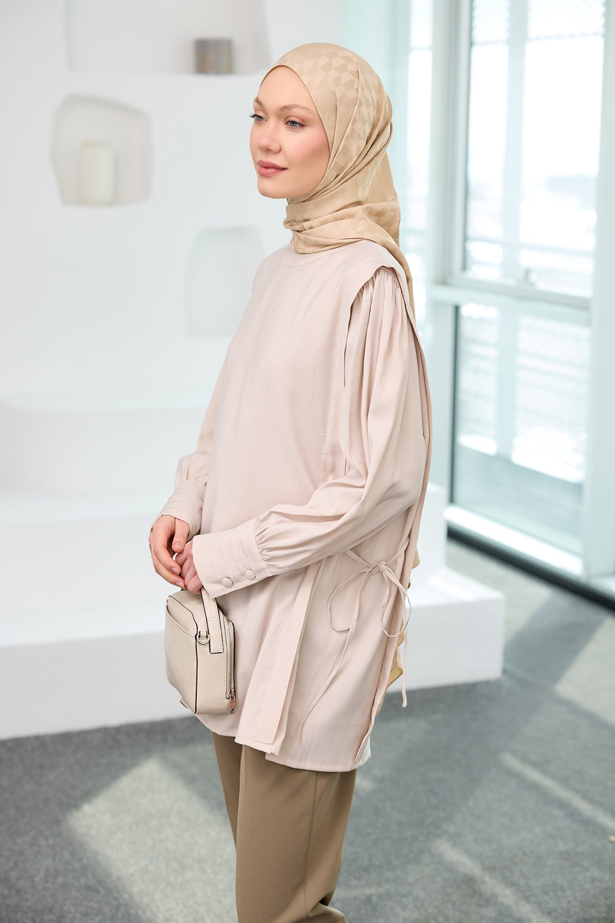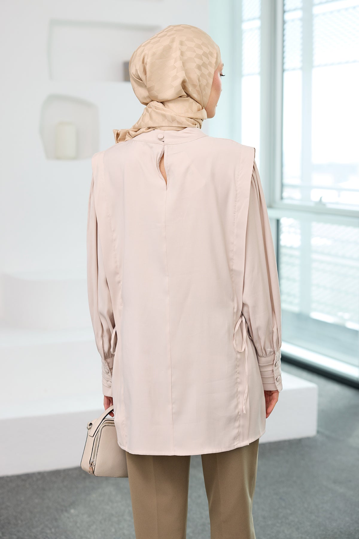 Cream Cupro Tencel Tunic with Piping Detail