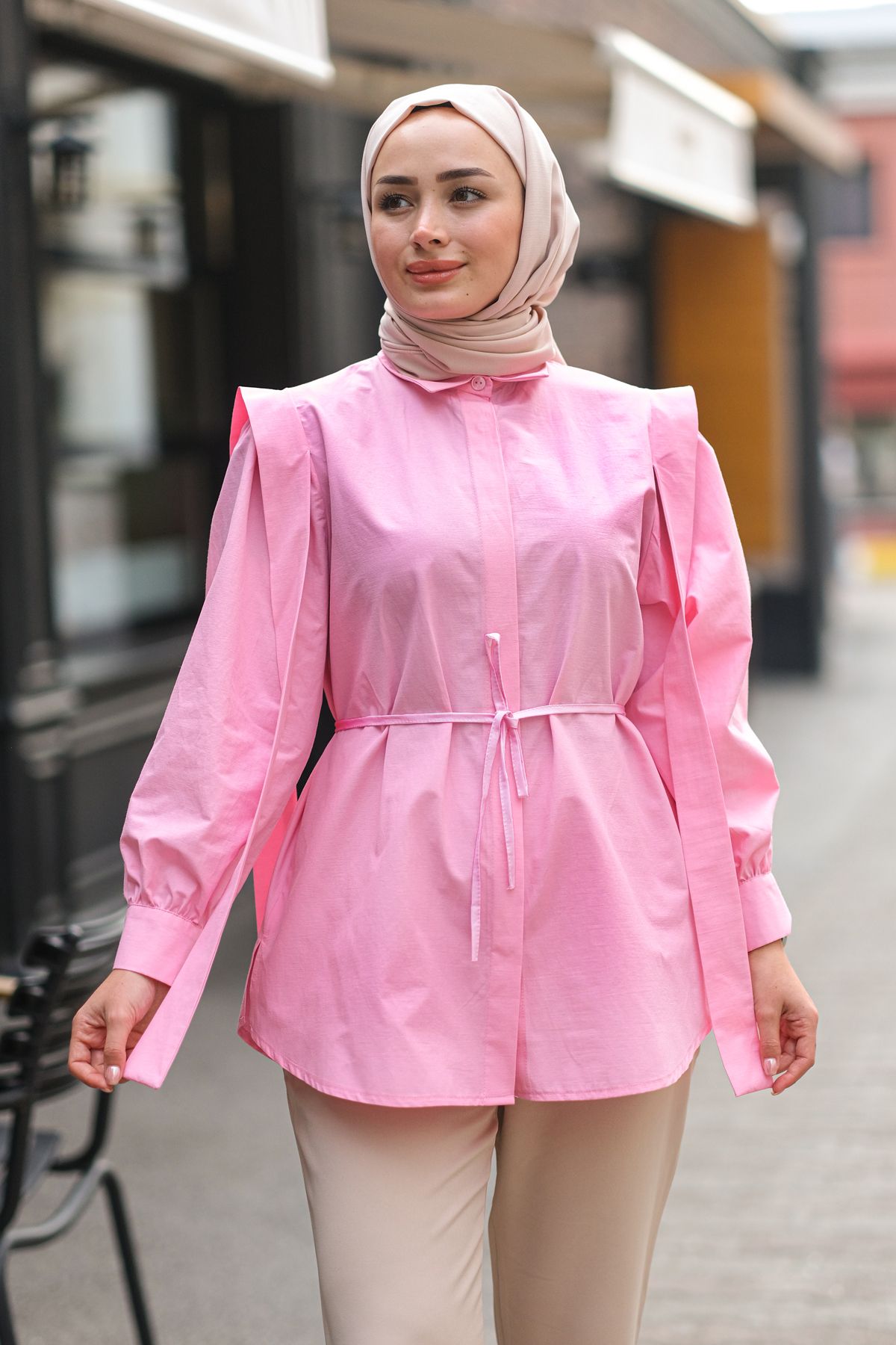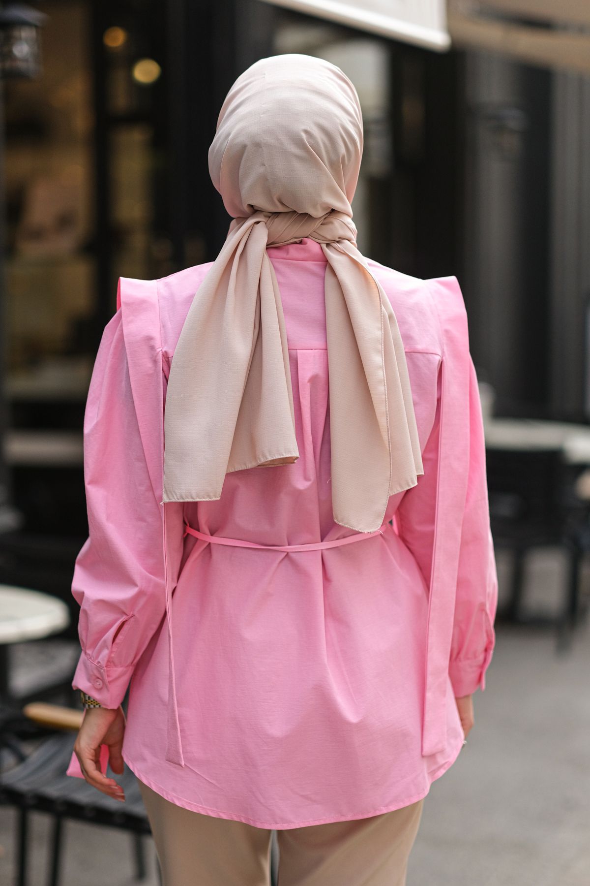Pleated Detailed Shirt with Hidden Button Front Pink