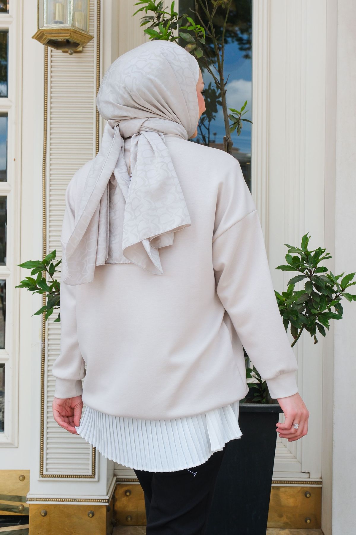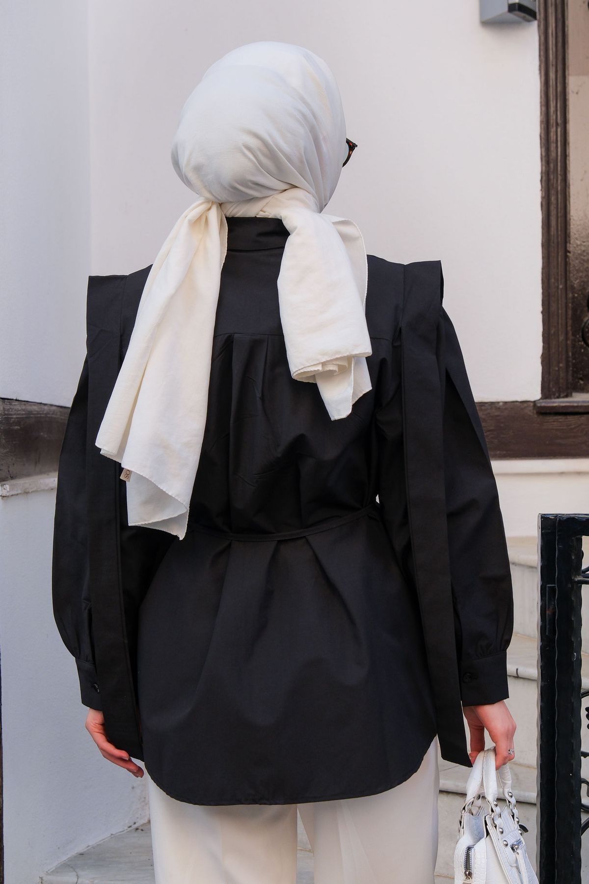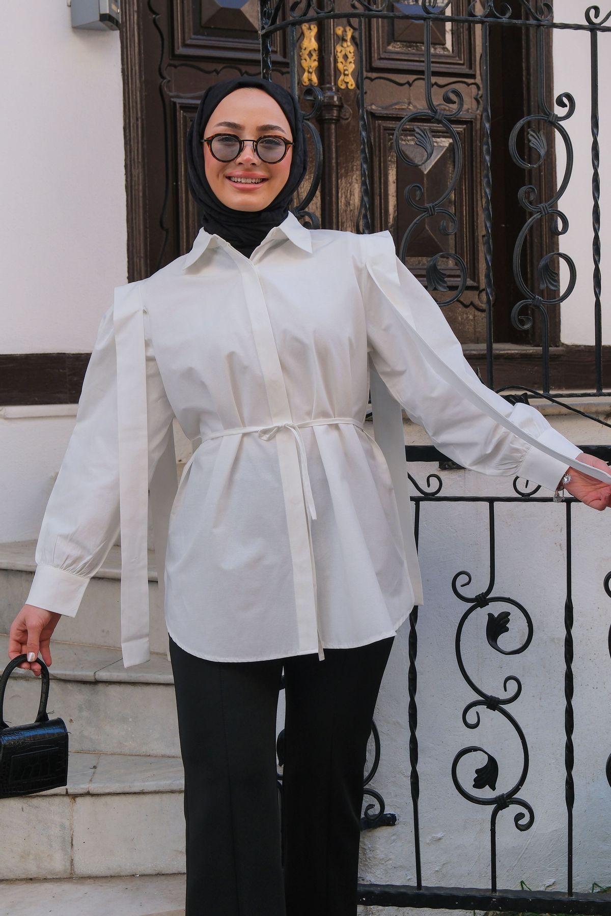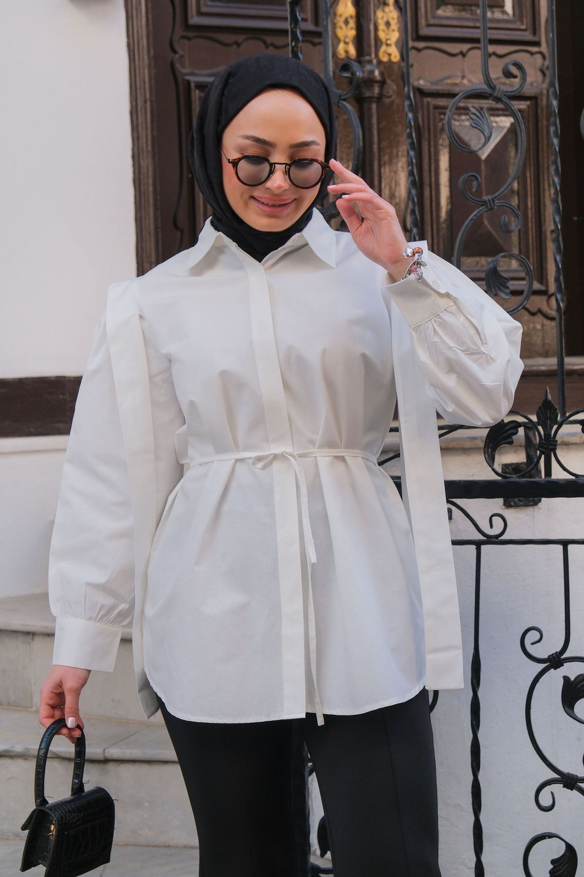 Pleated Detailed Shirt with Hidden Button Front Ecru
