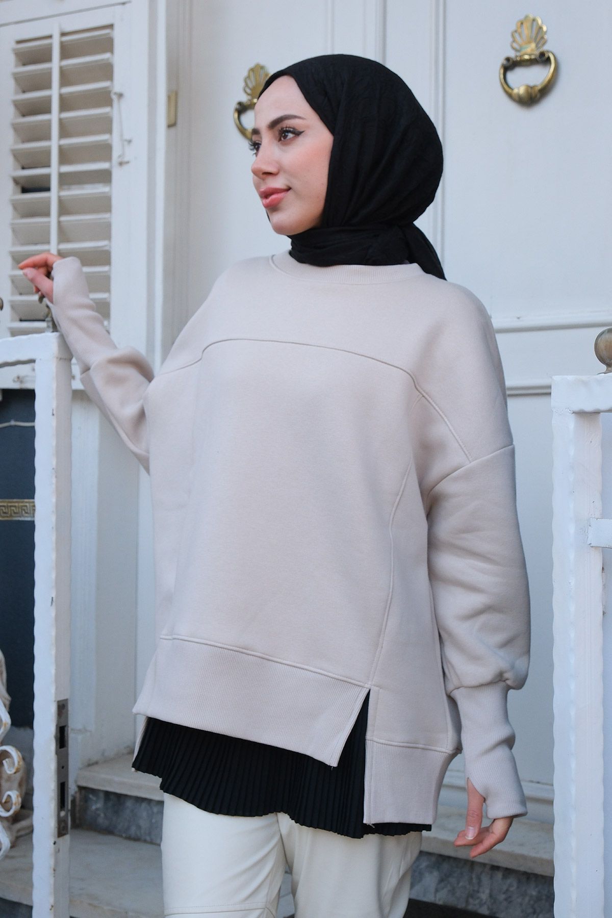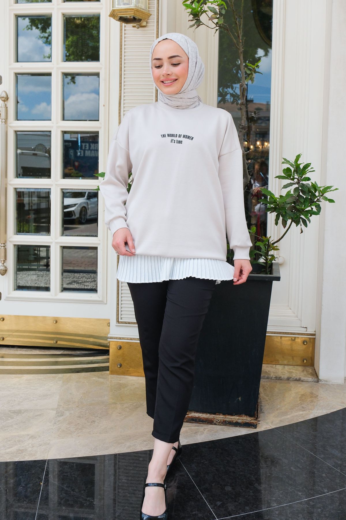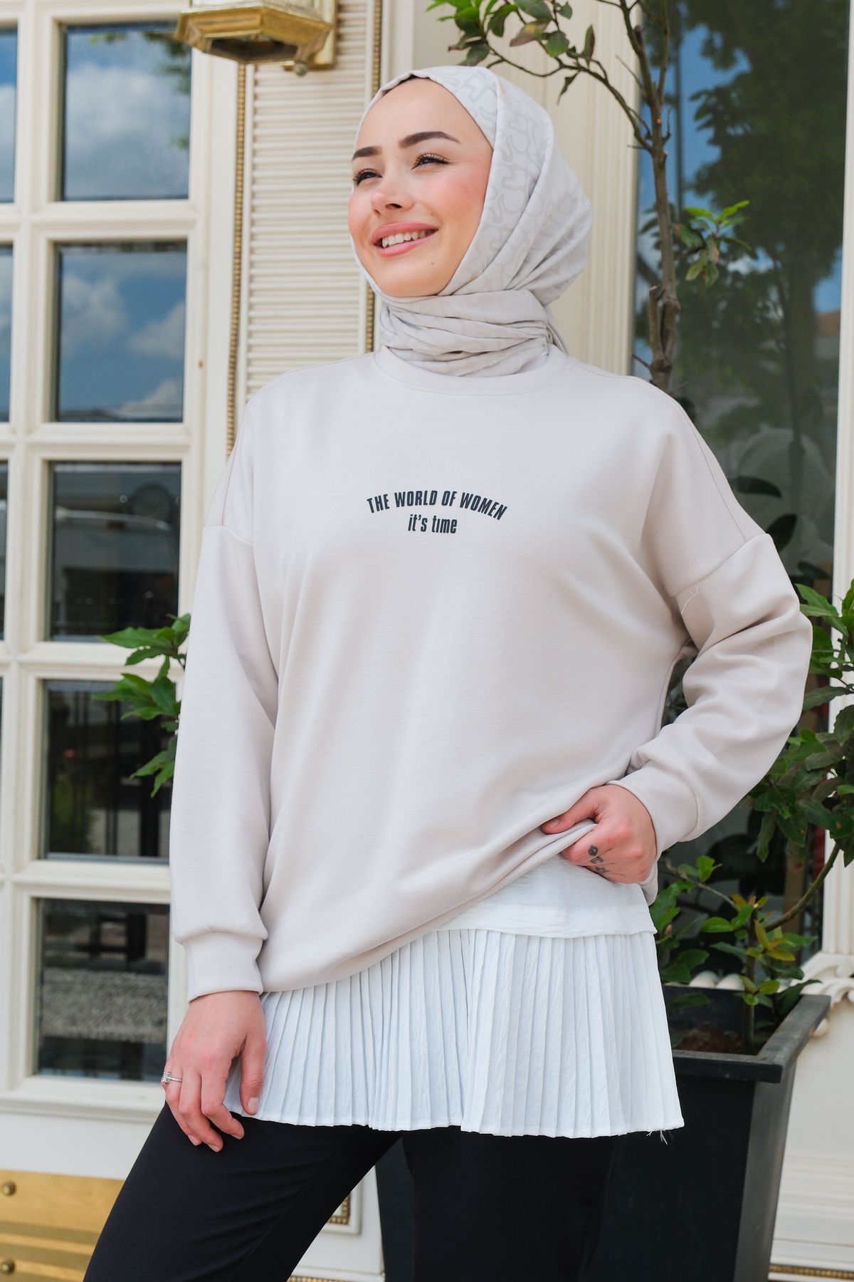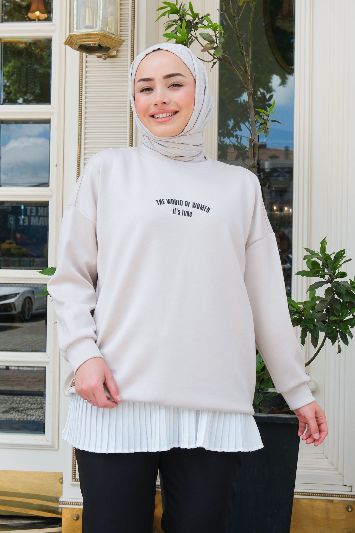 Pleated Detailed Shirt with Hidden Button Front Ecru