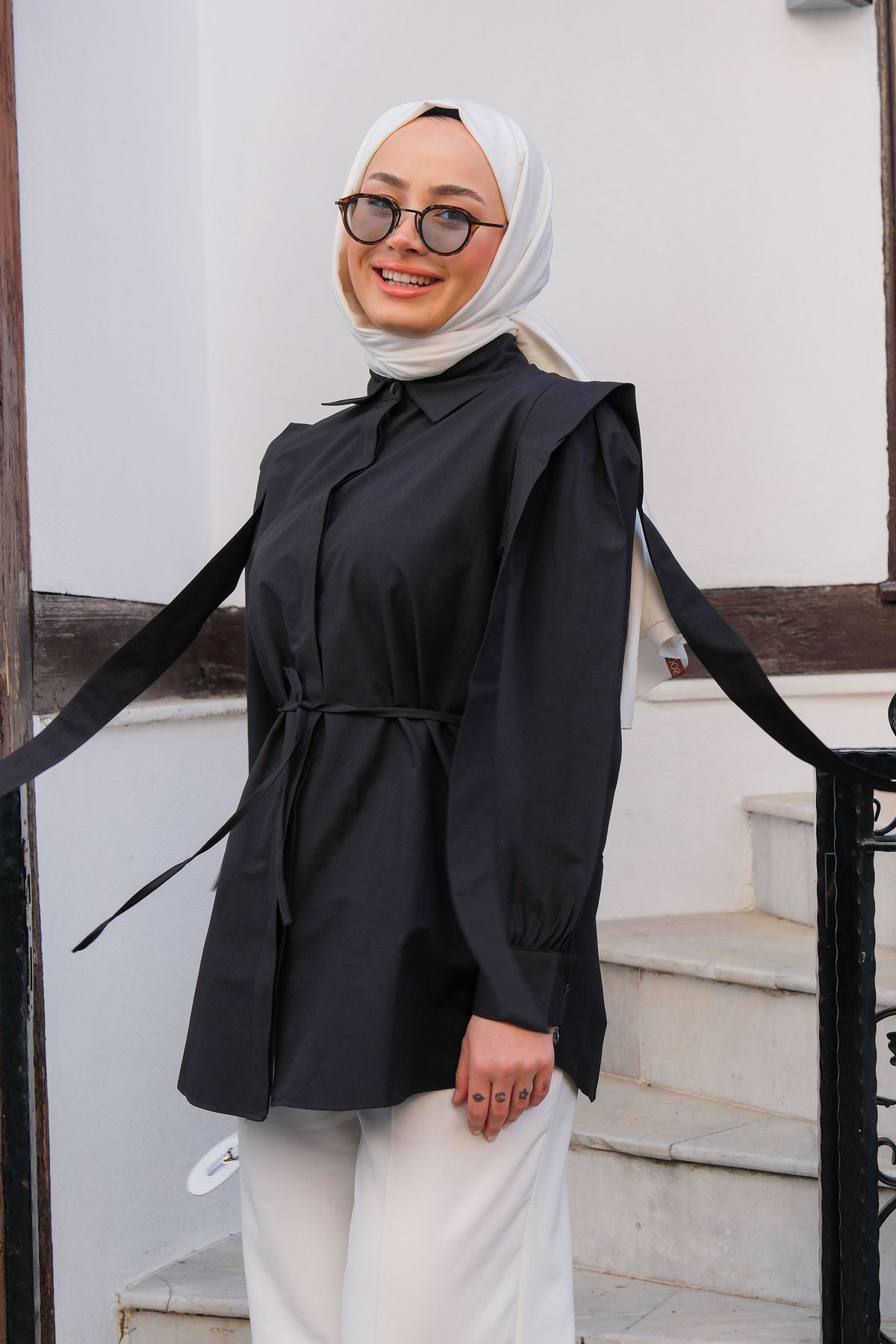 Pleated Detailed Shirt with Hidden Button Front Oil Green