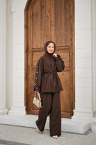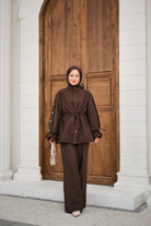 Adjustable Waist Cupro Two-Piece Set - Brown