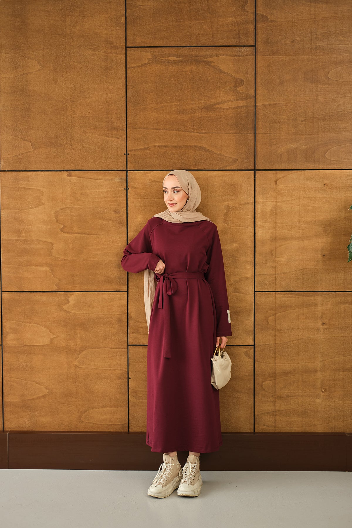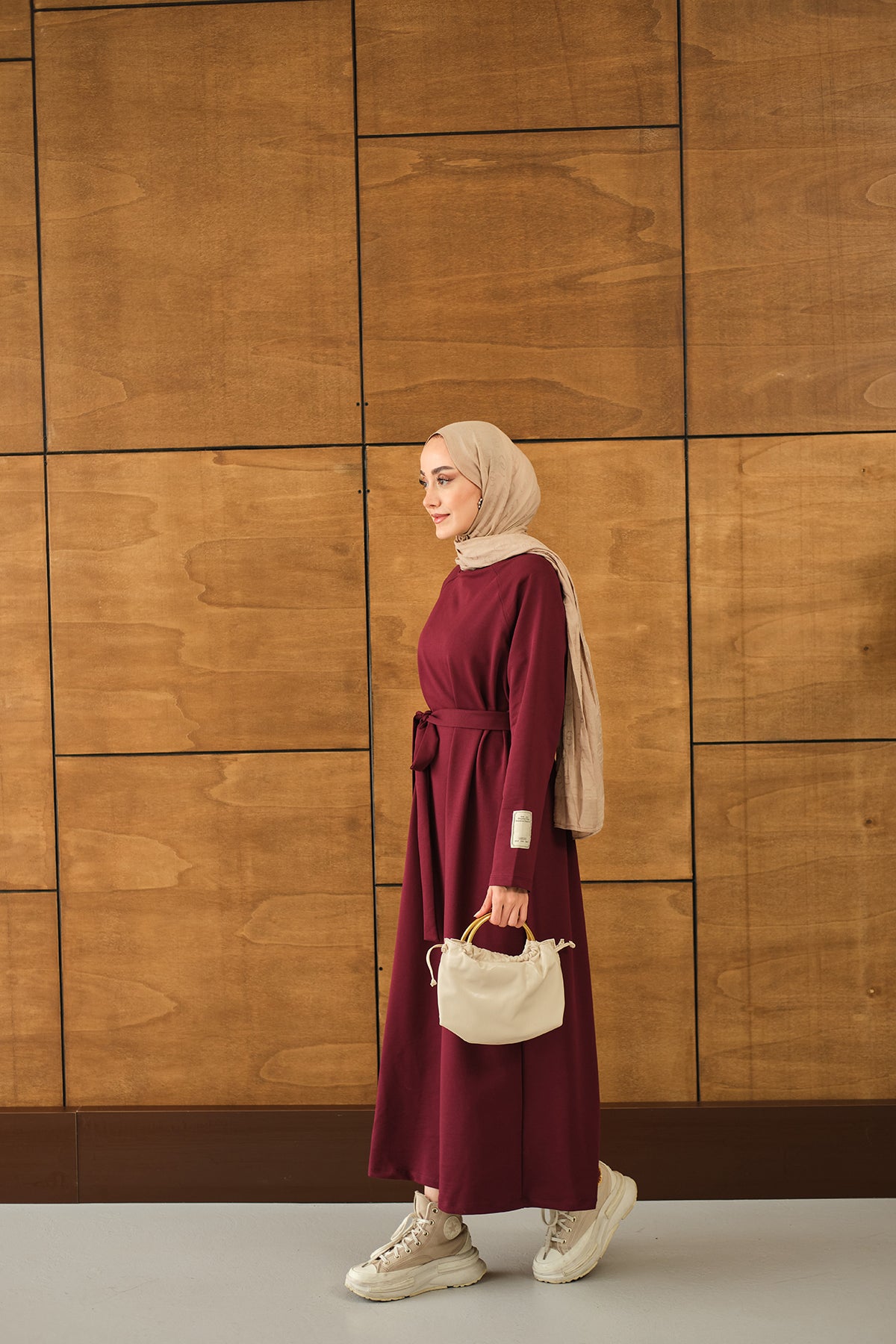 Arma Detay Elbise Bordo