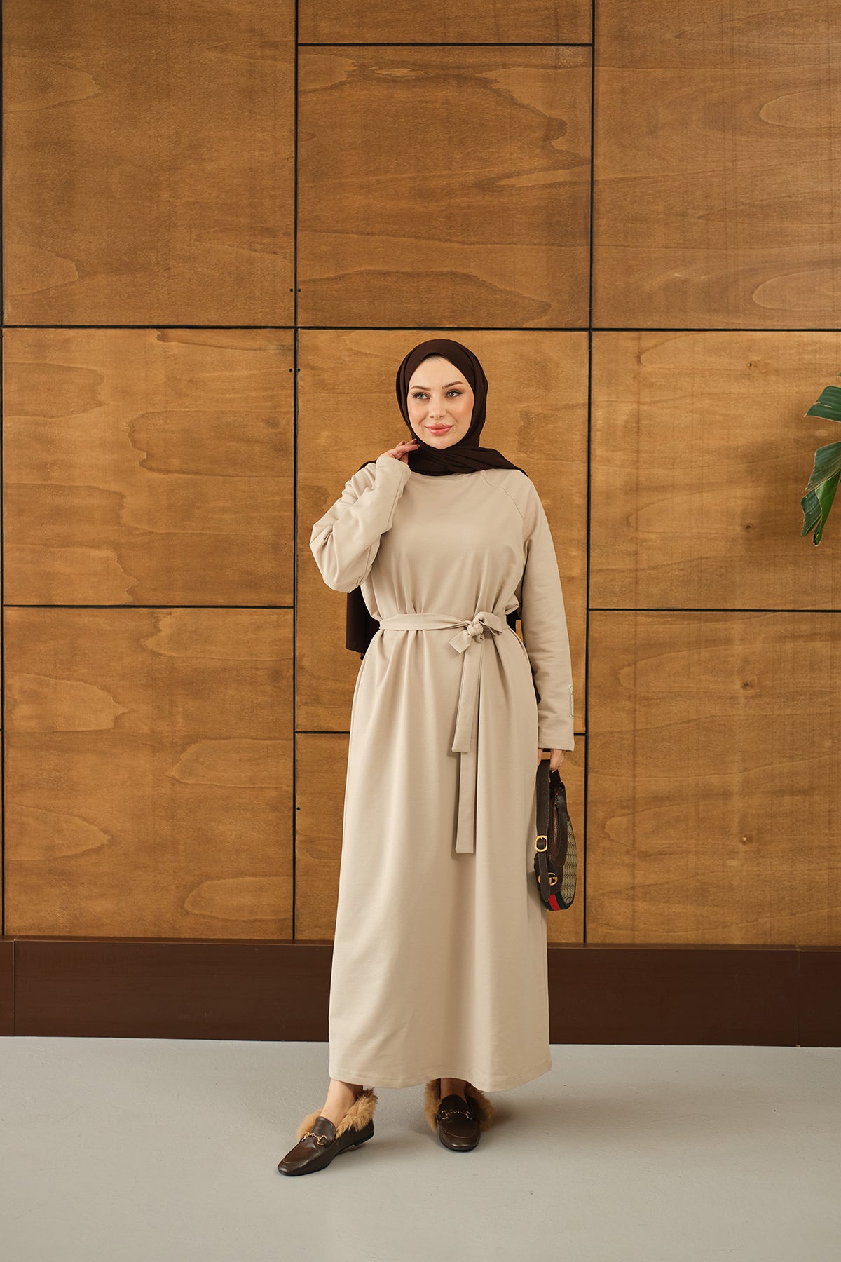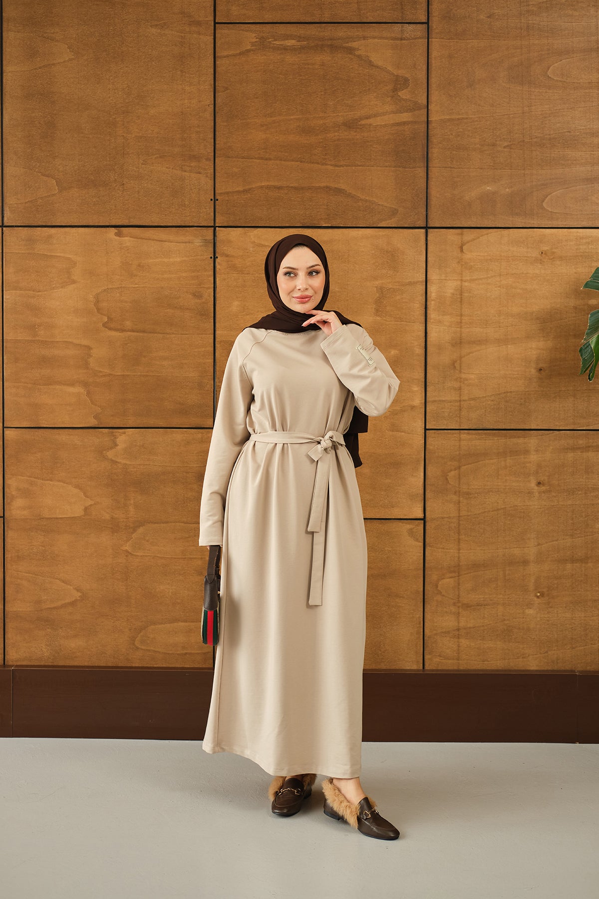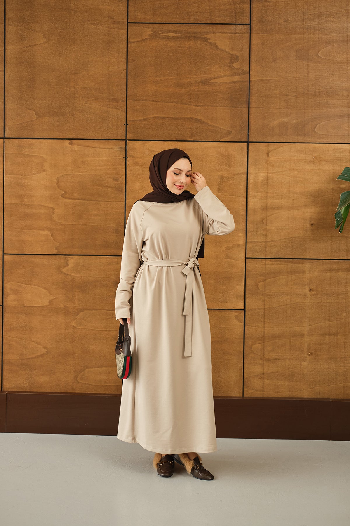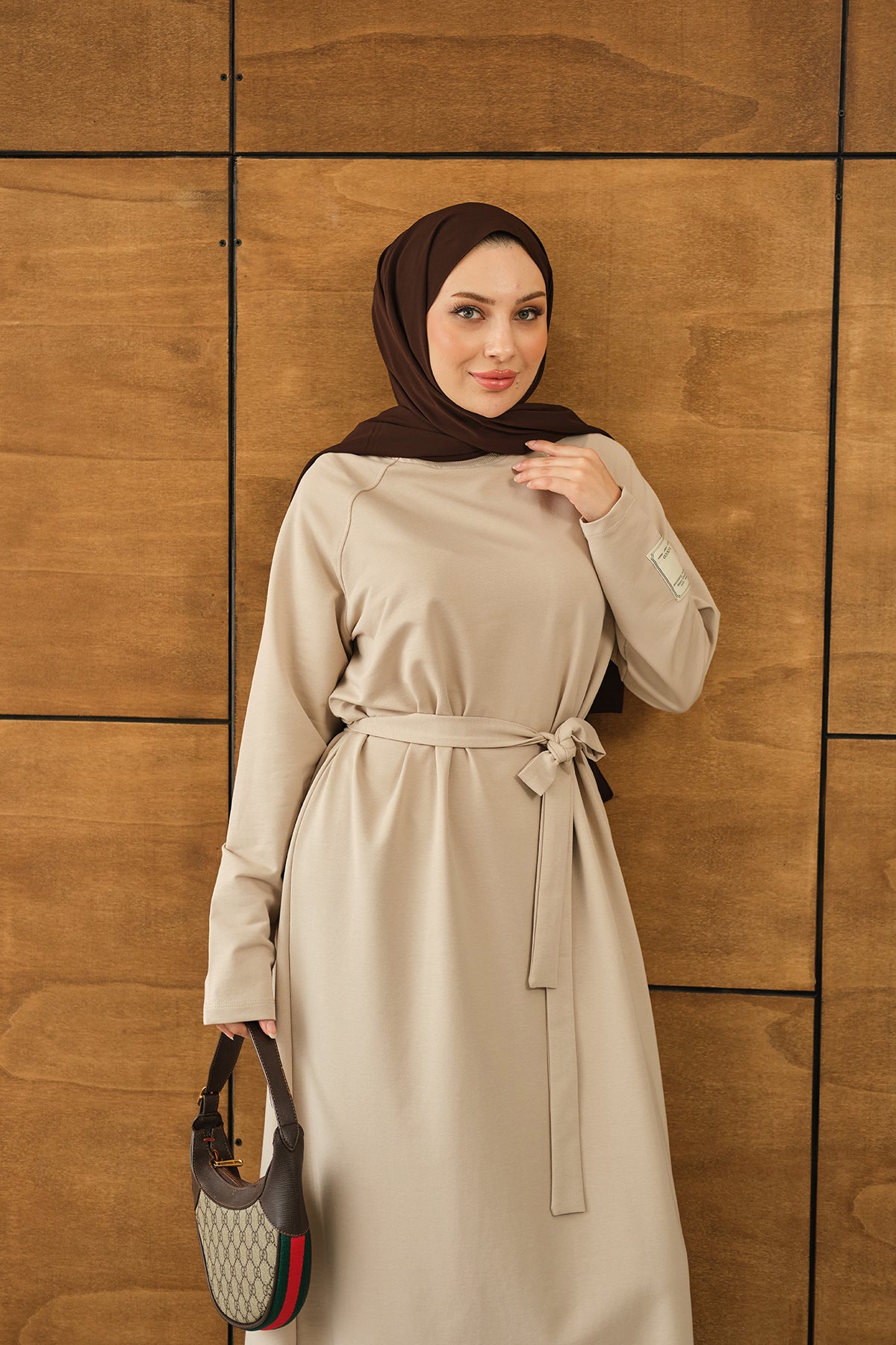Arma Detay Elbise Krem